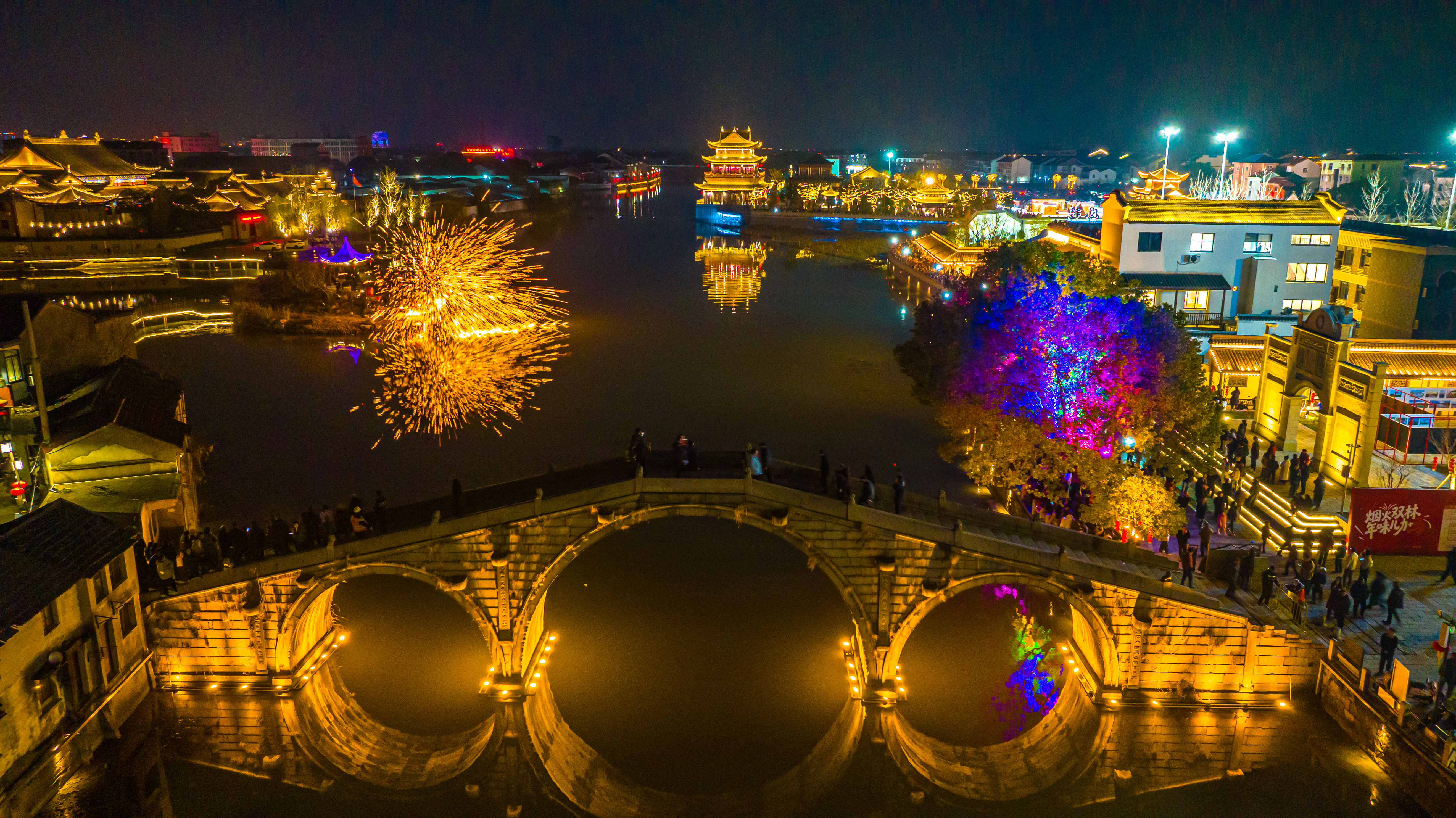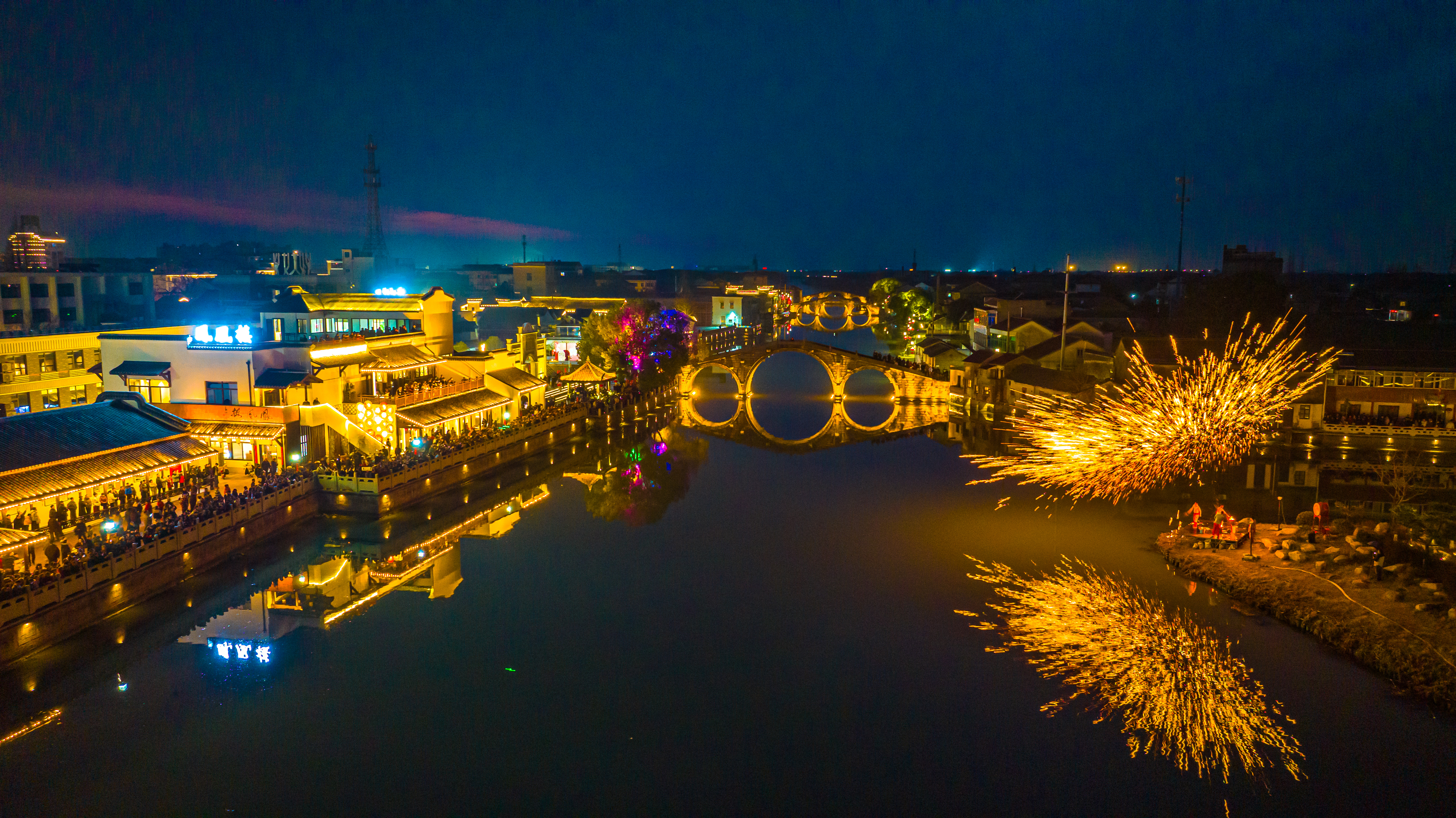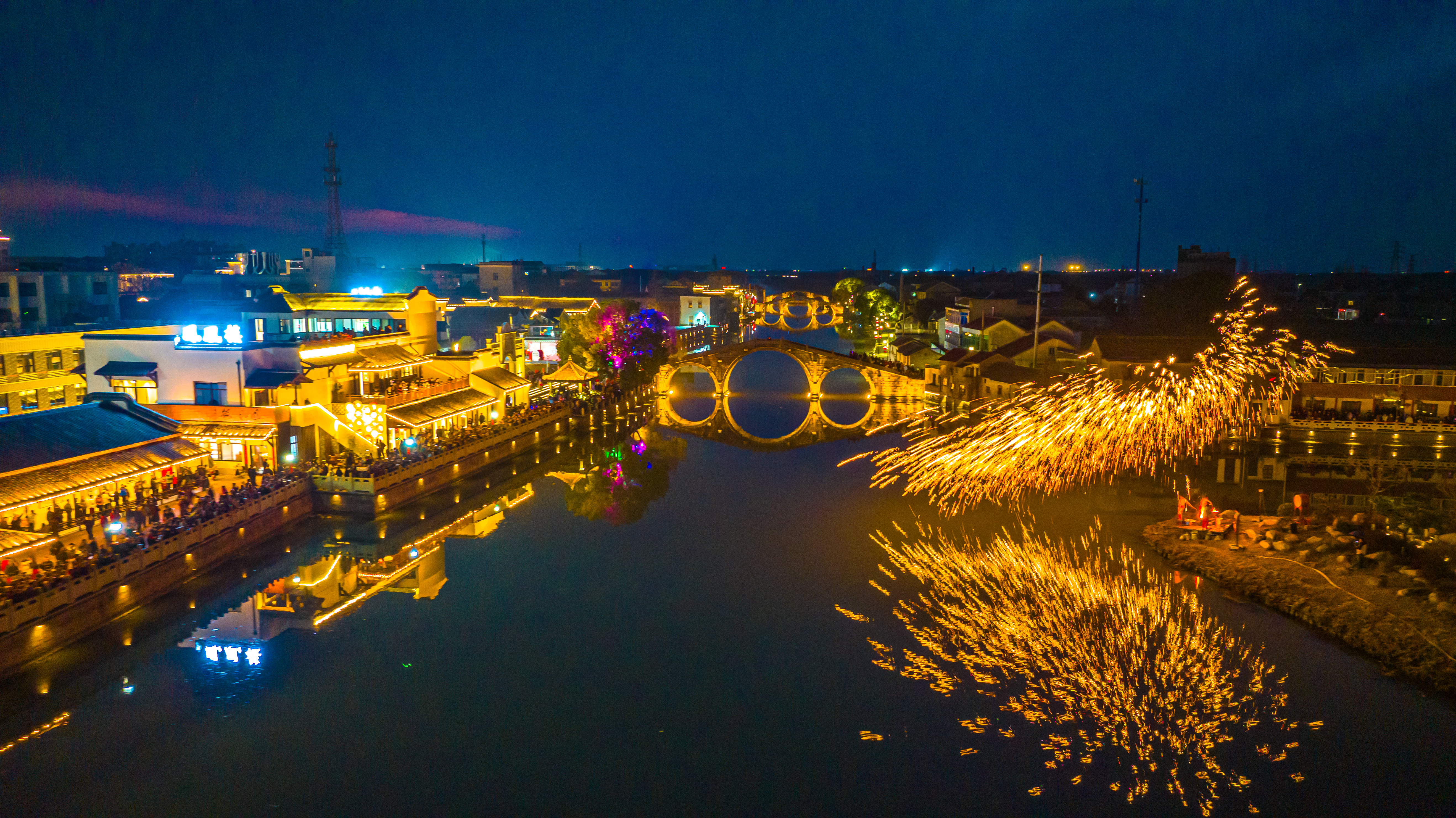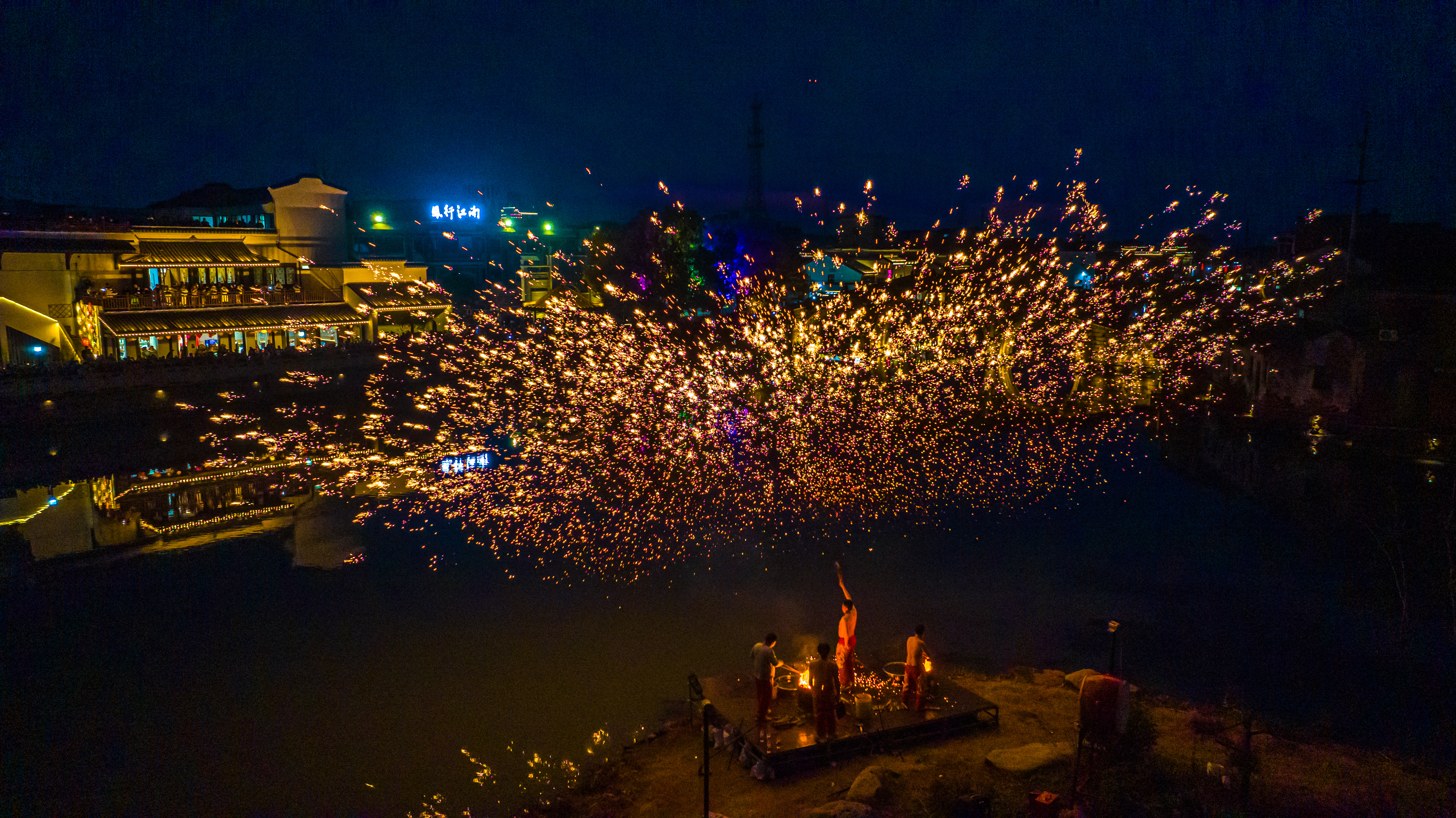 浙江湖州:非遗打铁花点亮古镇夜空 2026年2月18日,年初二,位于浙江省湖州市南浔区双林古镇一场震撼人心的非遗打铁花表演在分水墩精彩上演,铁花飞溅、星光四溢,与古镇夜景相得益彰,吸引了来自全国各地的游客驻足观赏,现场气氛热烈,掌声不断。