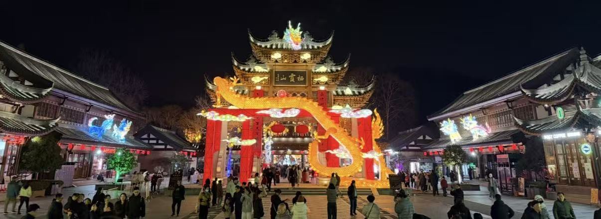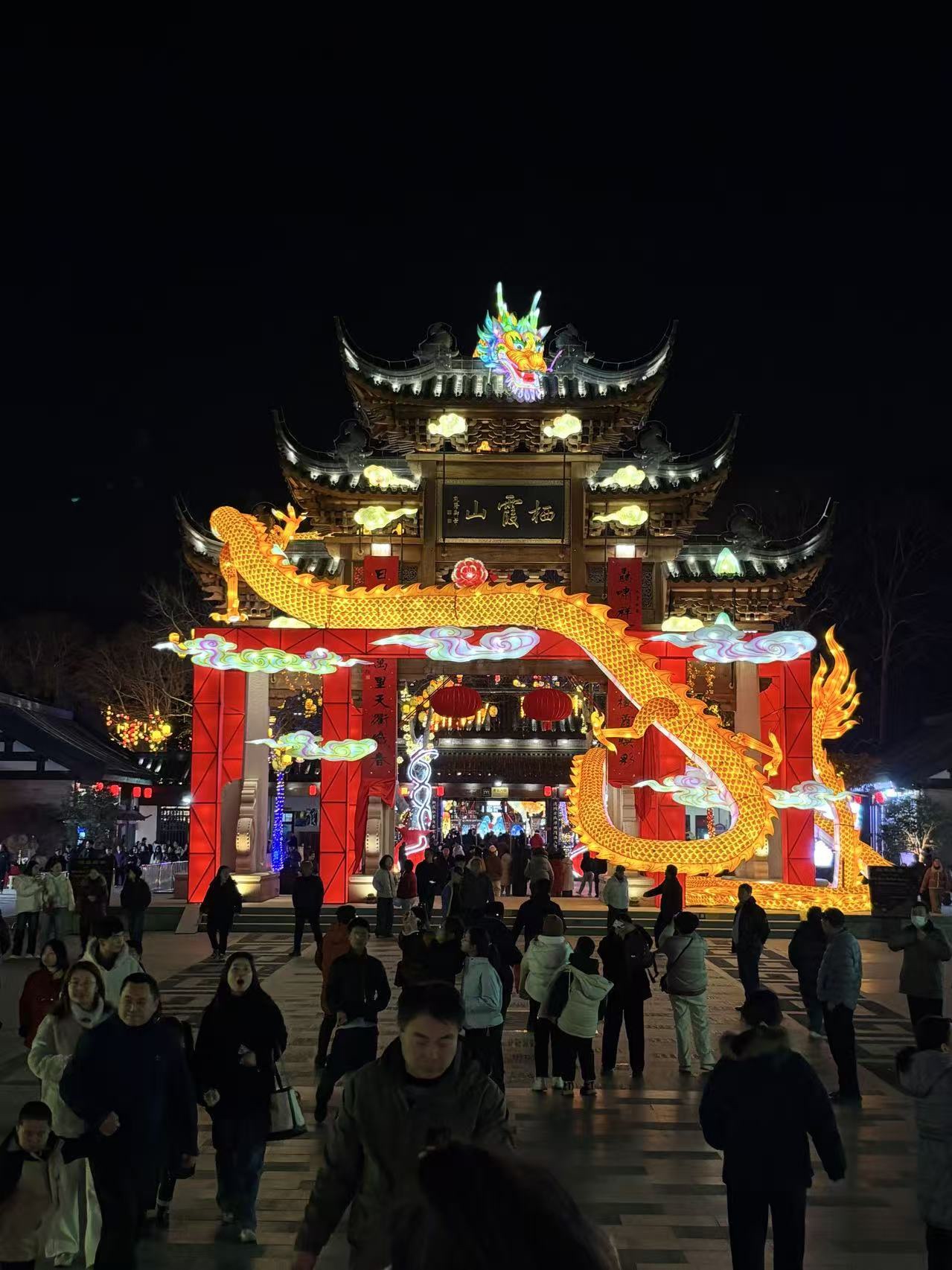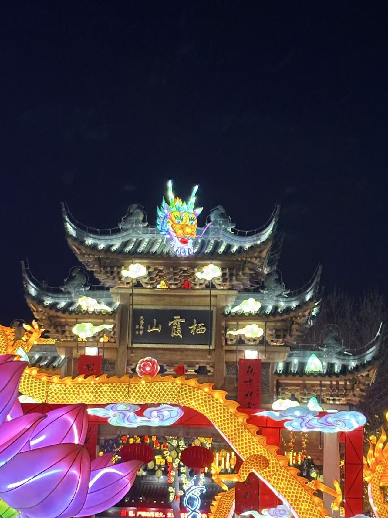 南京栖霞山今年春节首次举办灯会,名山、古寺、清水,在灯彩的照耀下,展现不一般的氛围。