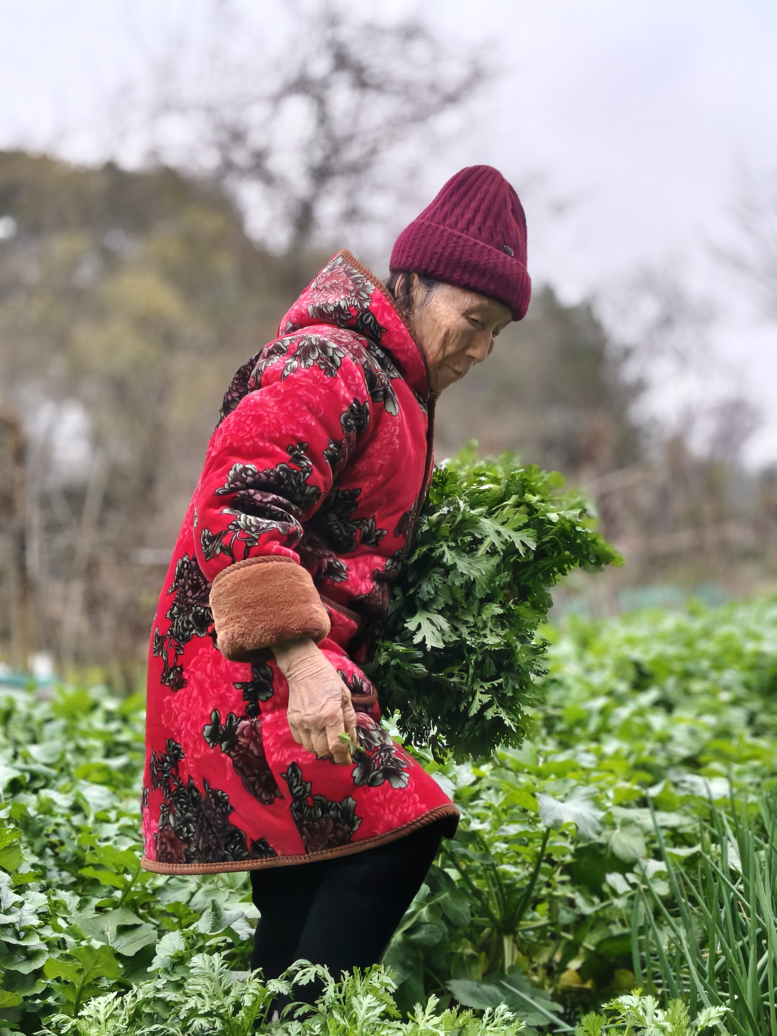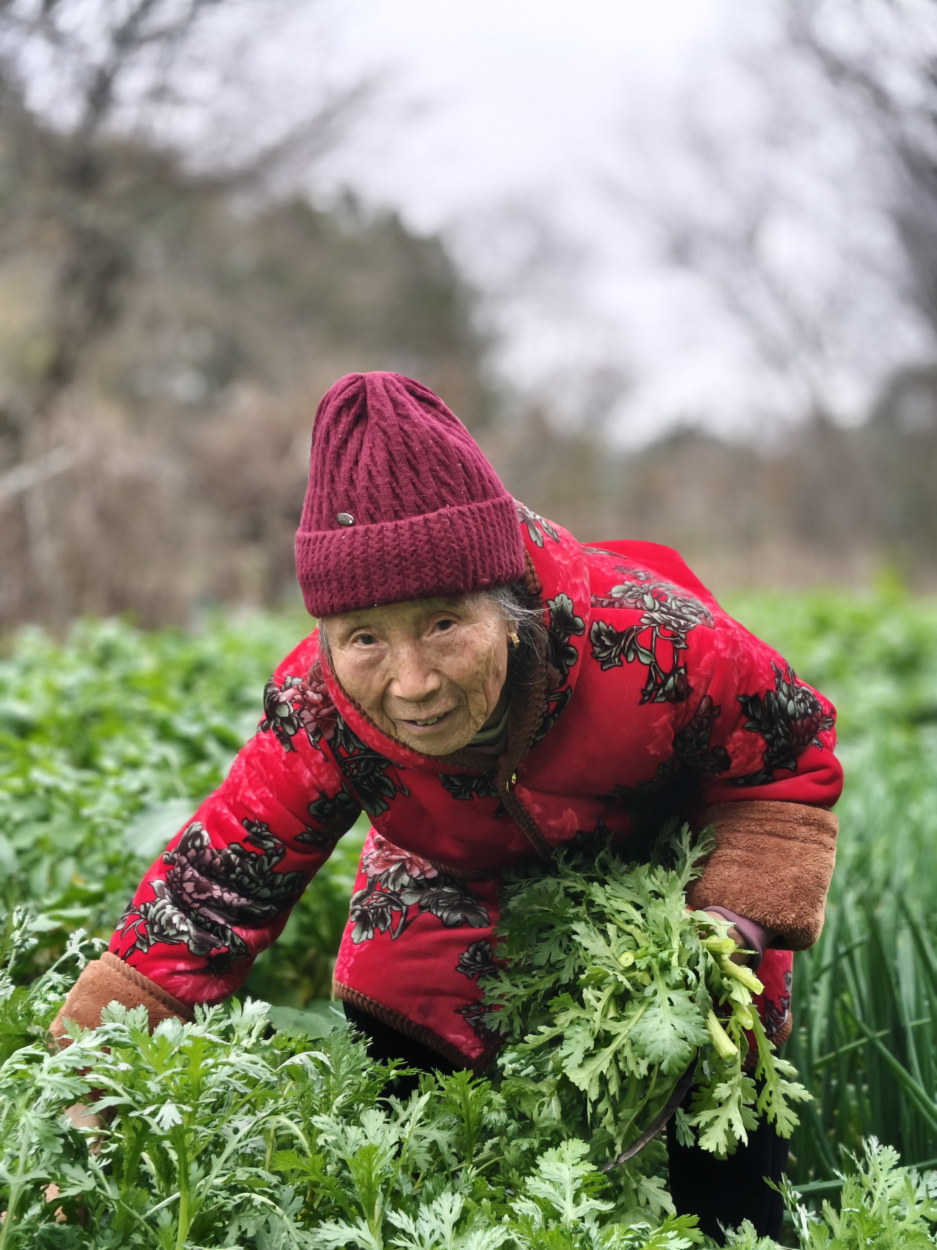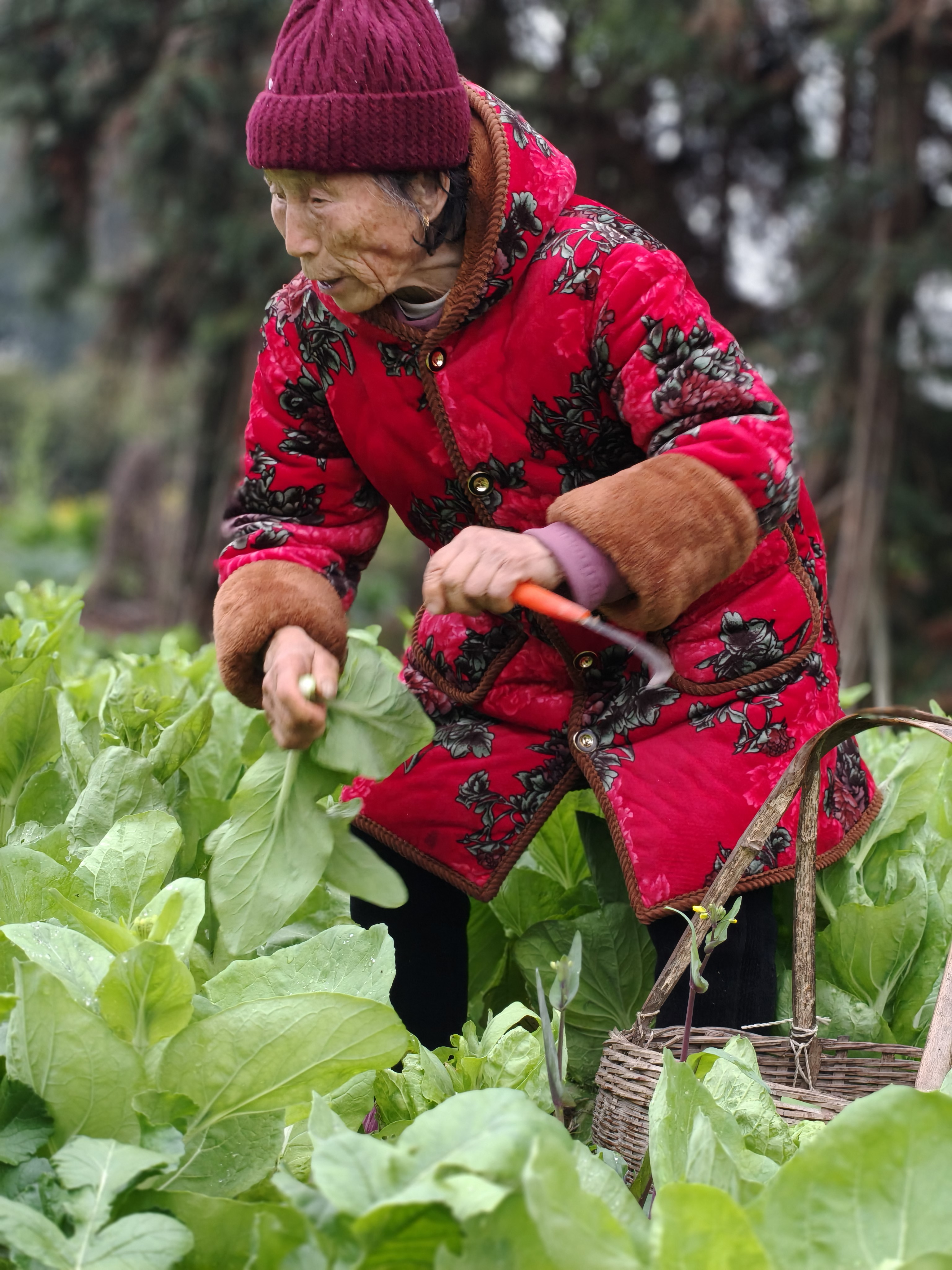 《菜园里的年味》 86岁丈母娘带我去菜园,这才是过年最珍贵的礼物! 正月初二,给86岁的丈母娘拜年,她拉着我去菜园。老人穿着喜庆的红外套,在绿油油的菜畦间穿梭,动作利落得不像86岁。她弯腰拔起带着泥土的白萝卜,又掐下鲜嫩的蒜苗和茼蒿,往竹篮里塞,笑着说:“自家种的菜,健康,多带点回去。” 满篮的翠绿,是她的勤劳结果;沉甸甸的心意,是藏不住的疼爱。提着这篮菜回家,心里装的是最暖的年味。 寻常日子里,最浓的年味,不过是长辈安康,有人牵挂。