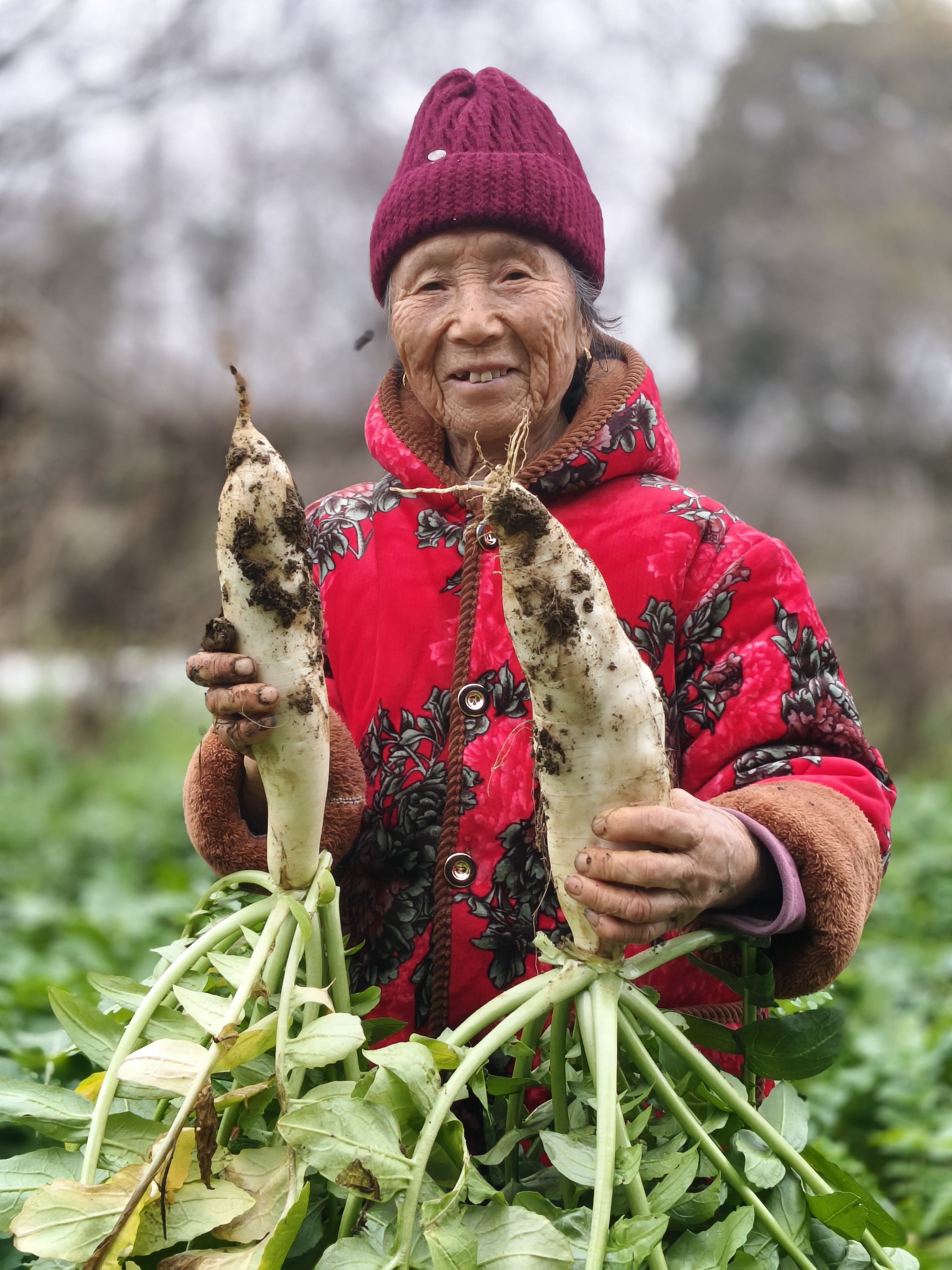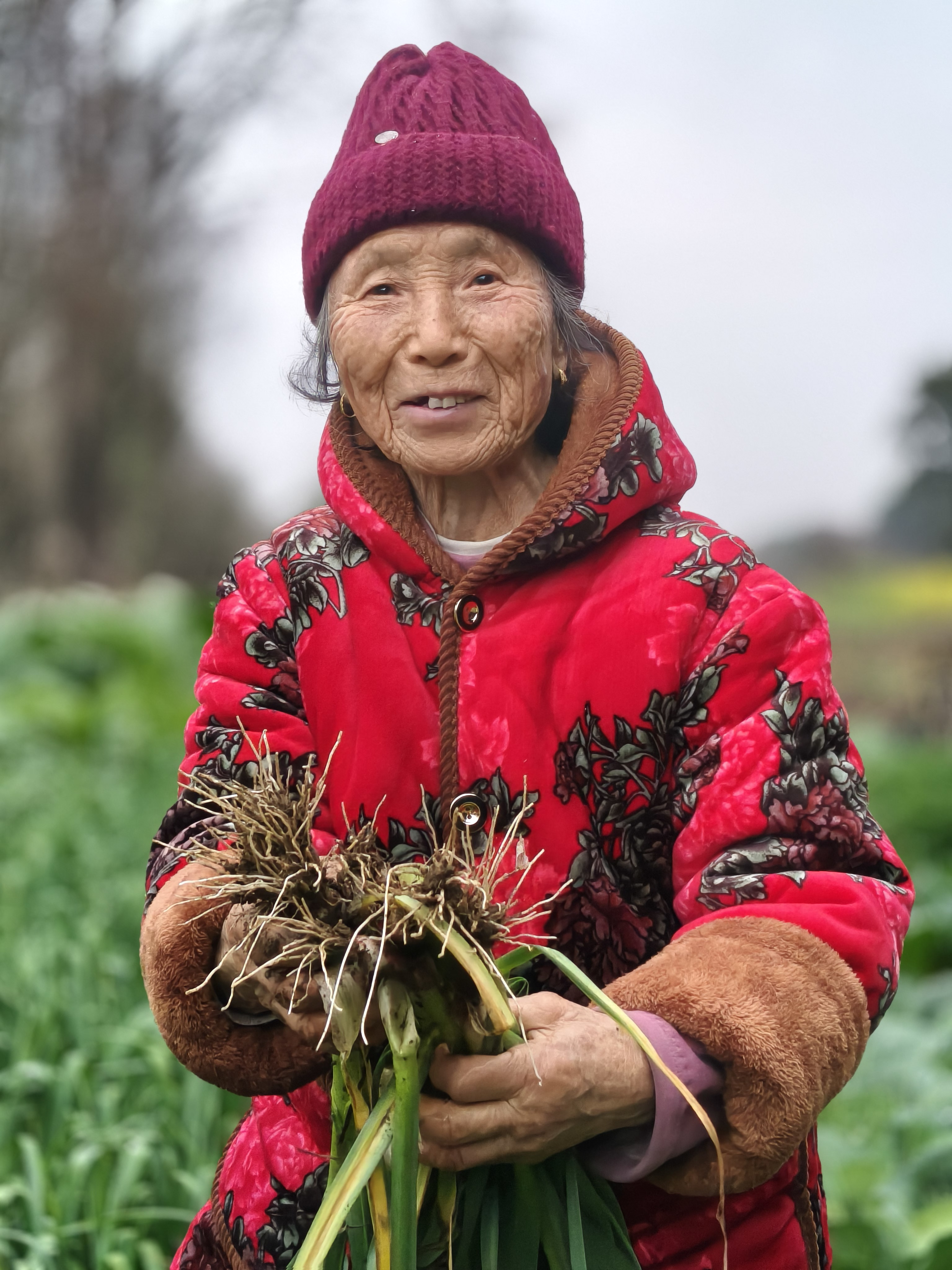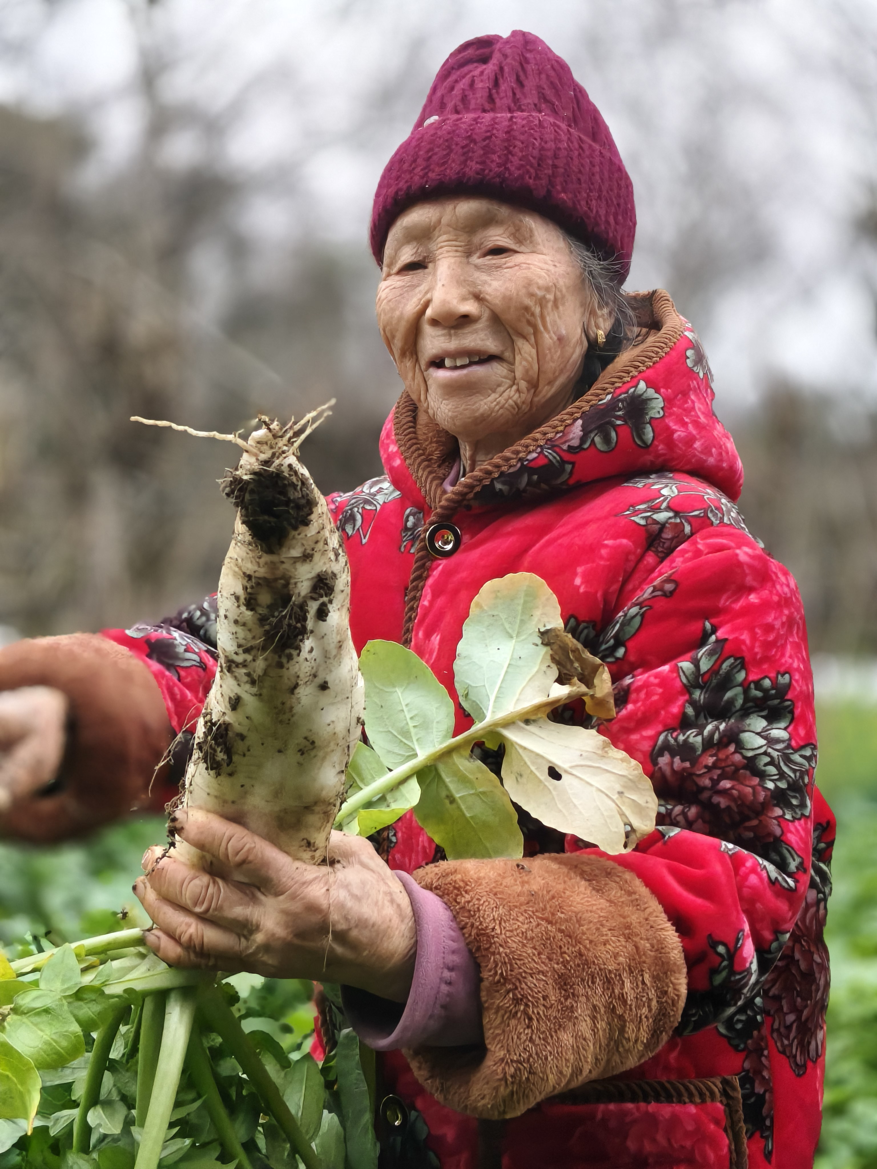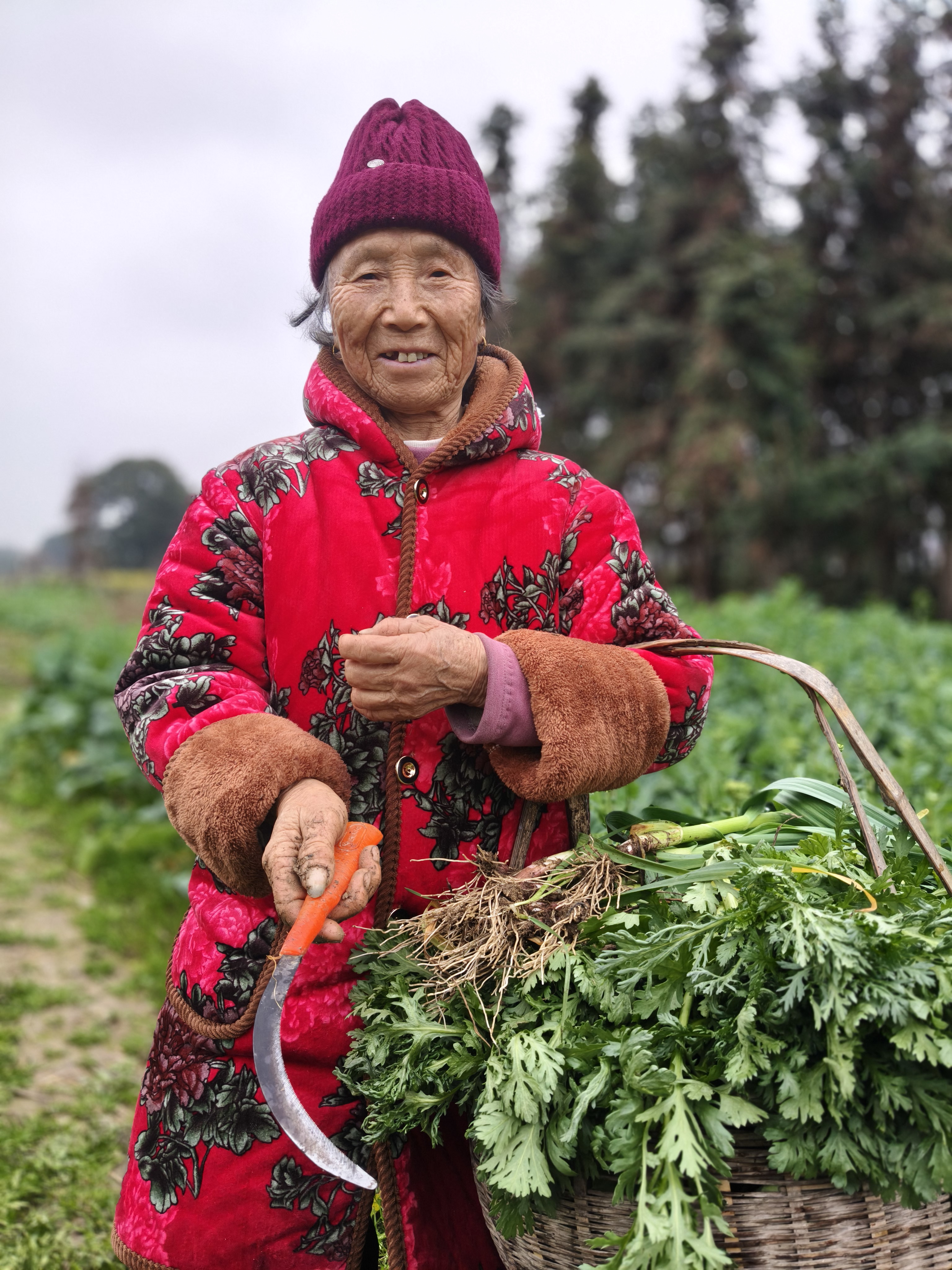 《菜园里的年味》 86岁丈母娘带我去菜园,这才是过年最珍贵的礼物! 正月初二,给86岁的丈母娘拜年,她拉着我去菜园。老人穿着喜庆的红外套,在绿油油的菜畦间穿梭,动作利落得不像86岁。她弯腰拔起带着泥土的白萝卜,又掐下鲜嫩的蒜苗和茼蒿,往竹篮里塞,笑着说:“自家种的菜,健康,多带点回去。” 满篮的翠绿,是她的勤劳结果;沉甸甸的心意,是藏不住的疼爱。提着这篮菜回家,心里装的是最暖的年味。 寻常日子里,最浓的年味,不过是长辈安康,有人牵挂。