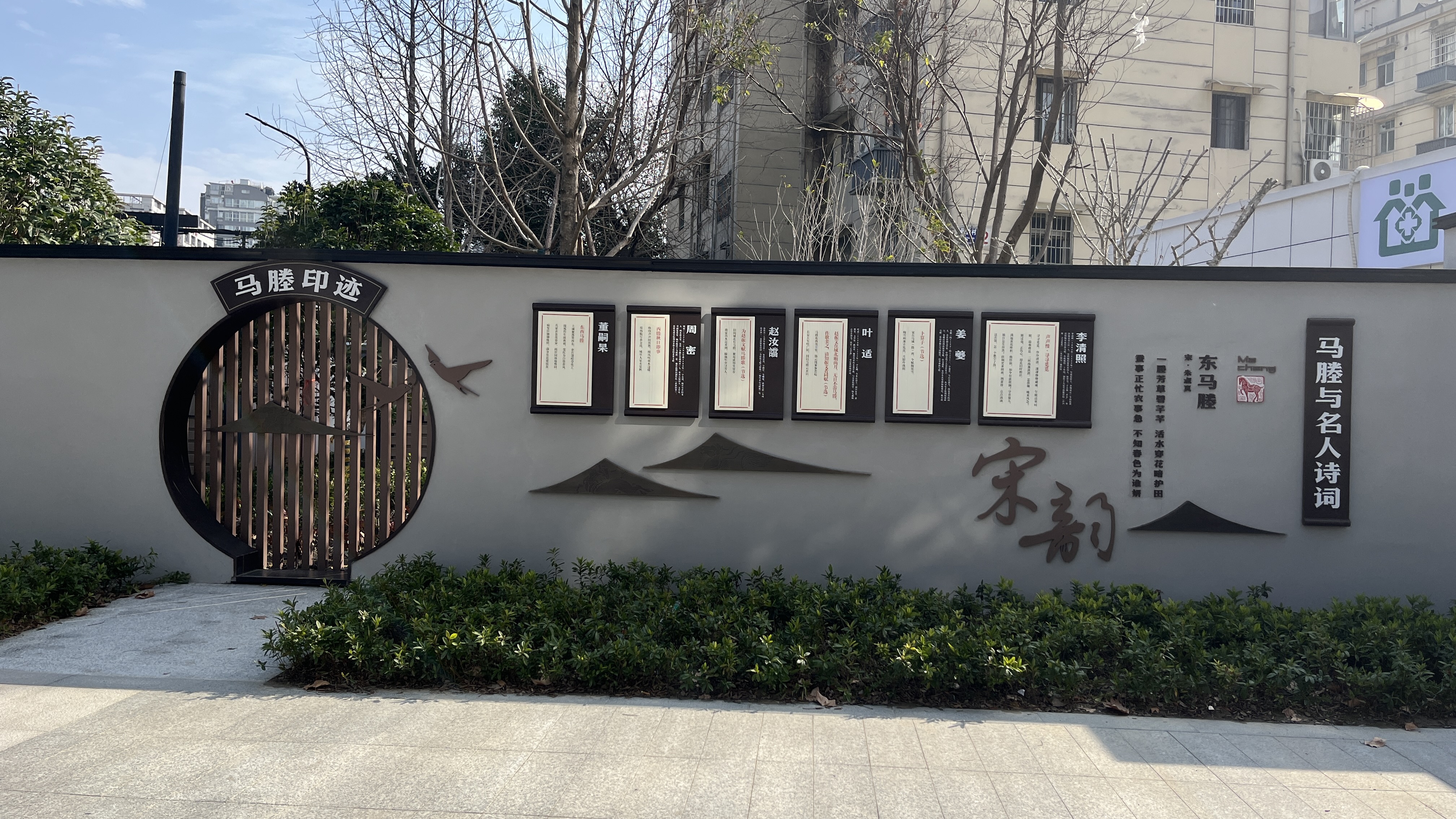 马年走一走带马字的地标,首选马塍路。说起来,这两年,马塍路我已经完完整整地走过好几次,每一次都会有新发现。比如今日新发现的马塍公园便是,在马塍雅苑边的公园虽然不大,但人文气息浓郁,可以了解一下马塍路的历史,也可以读一读椅子边的古诗。