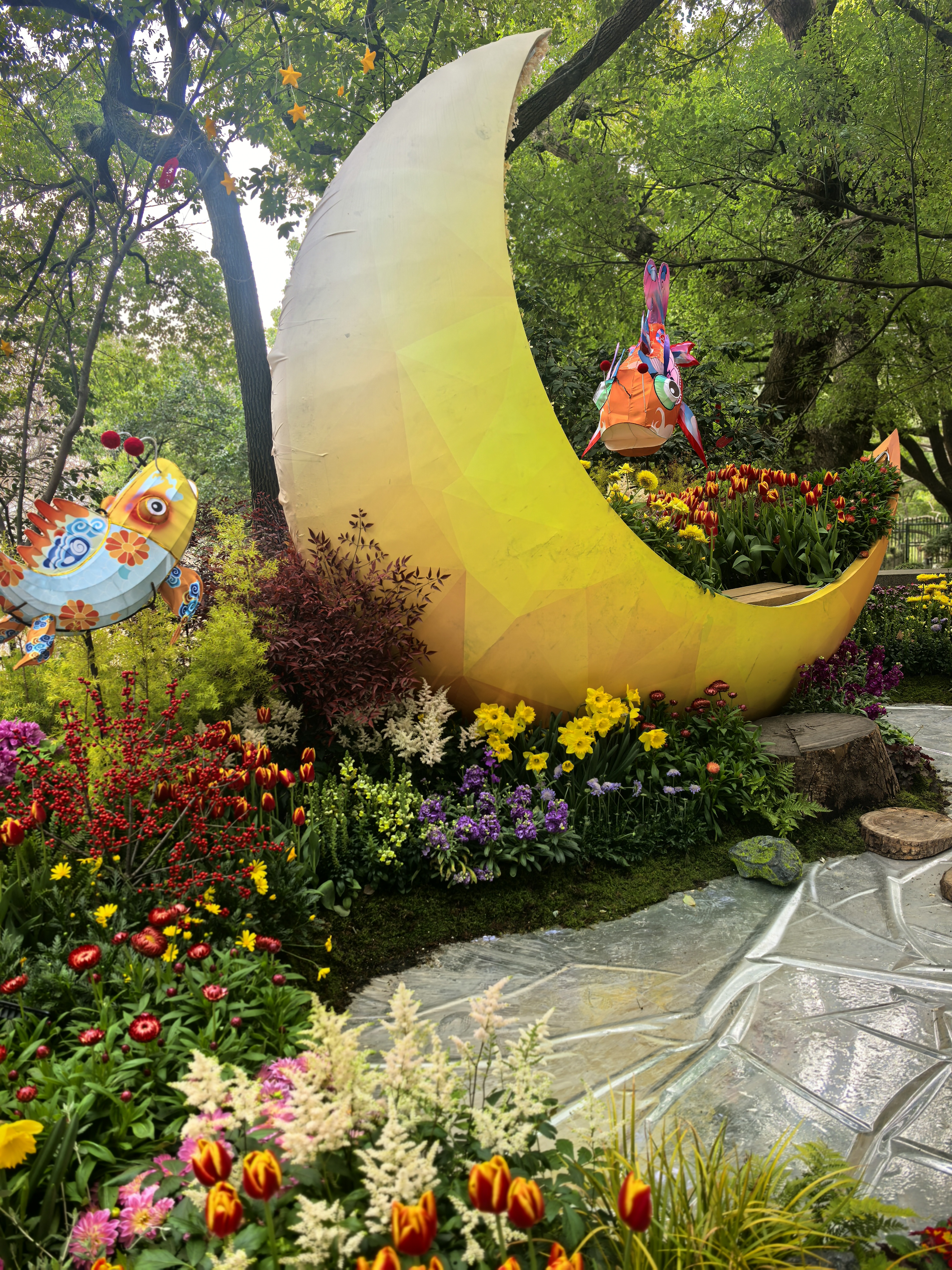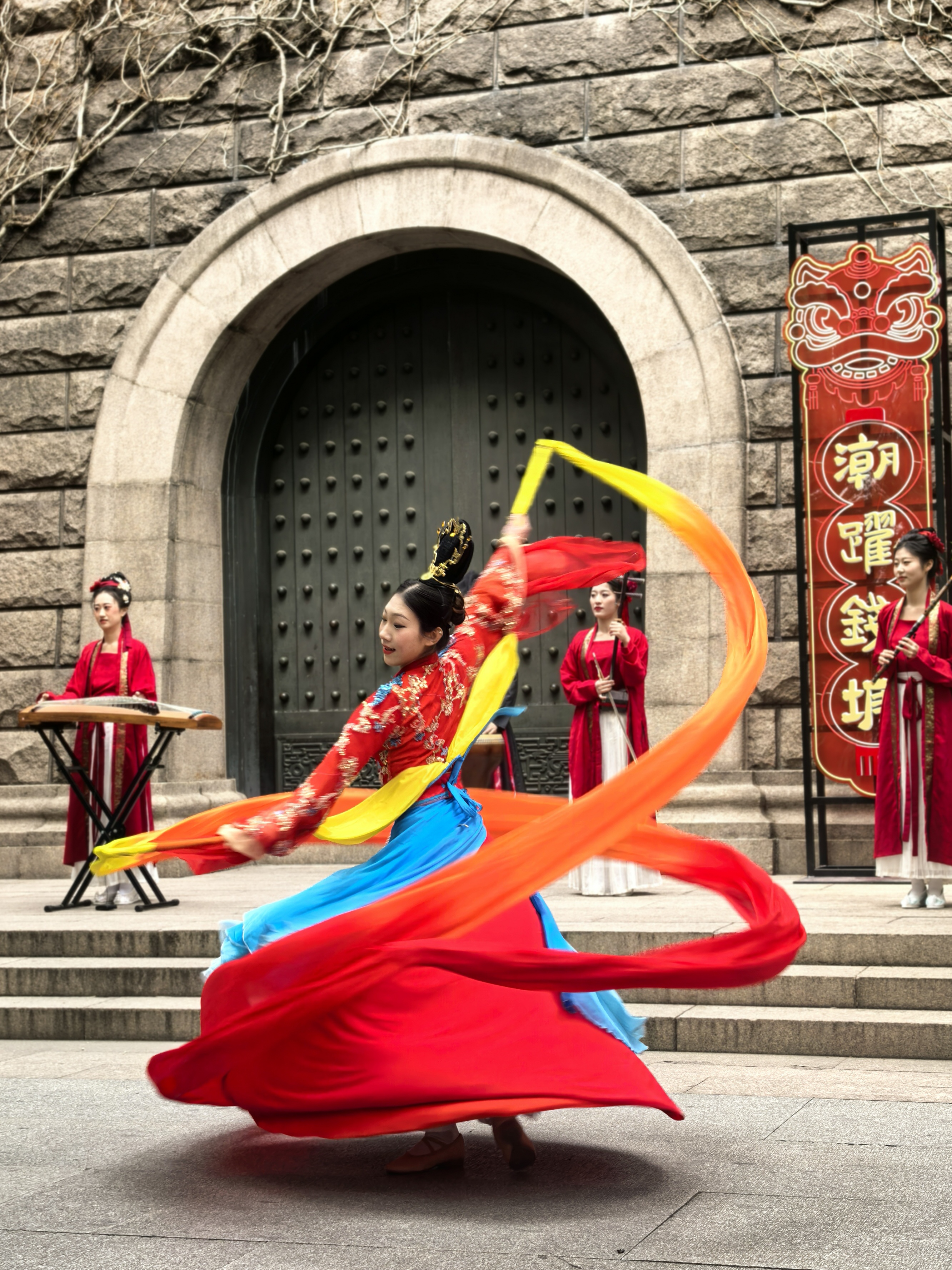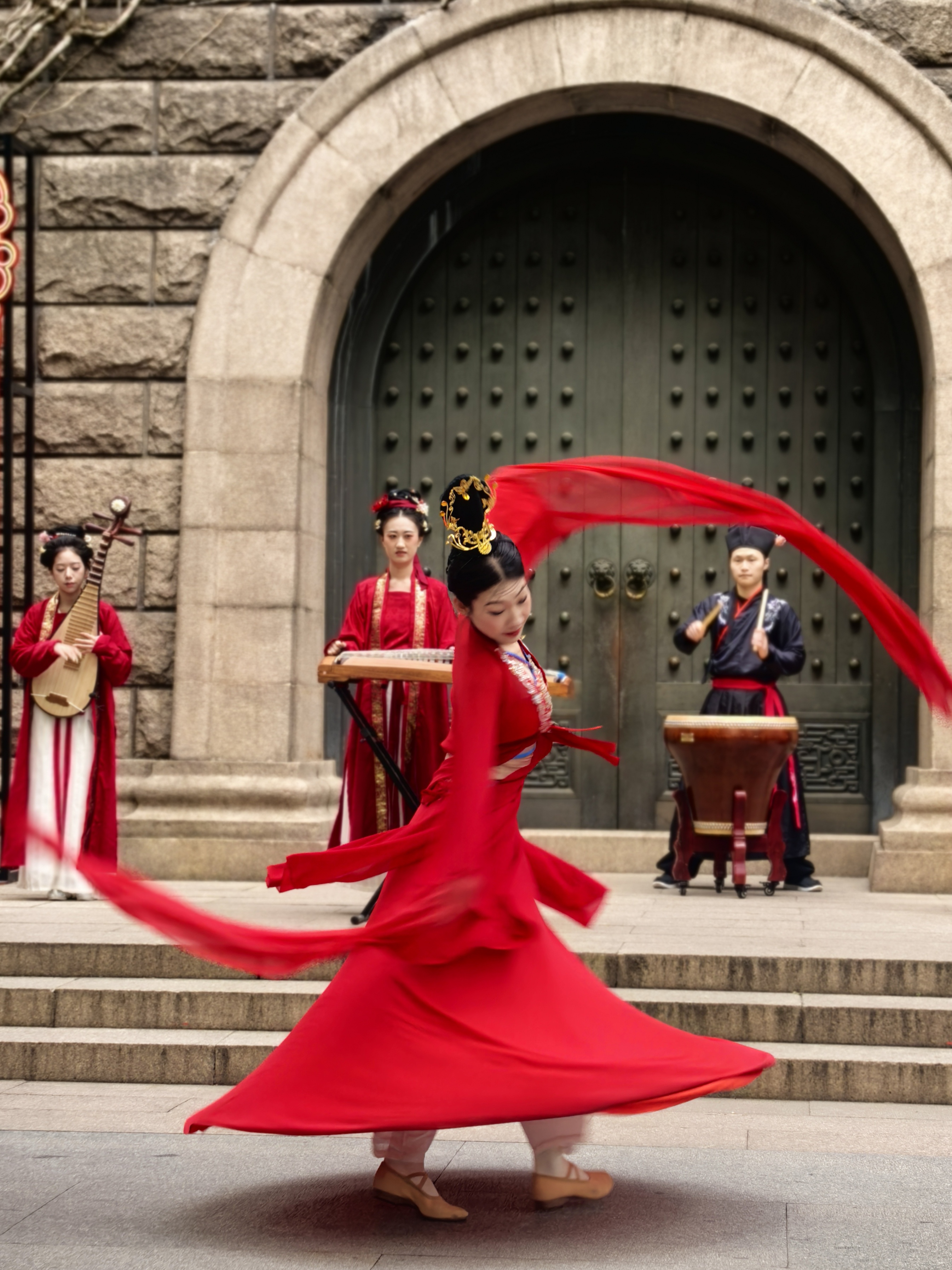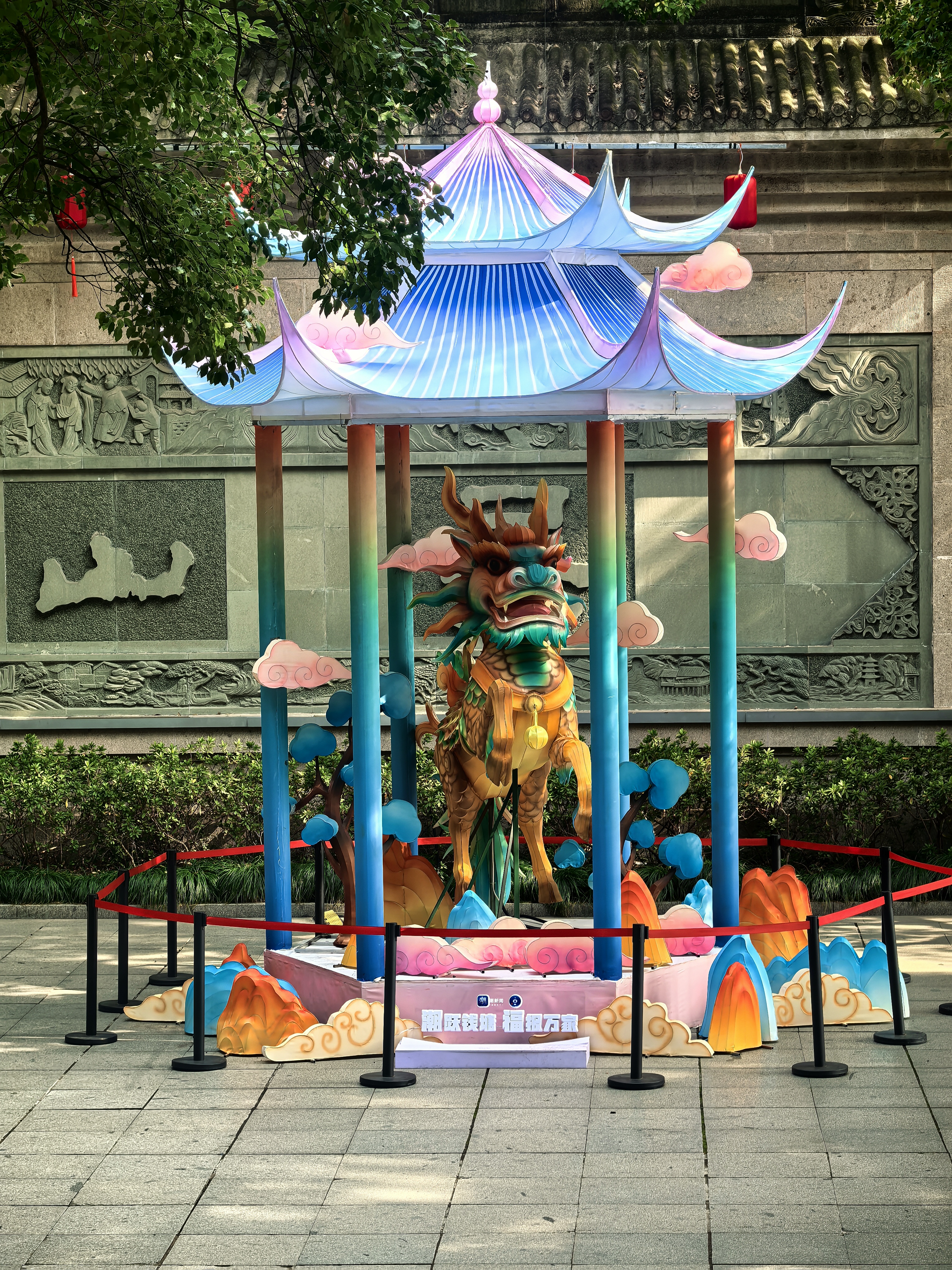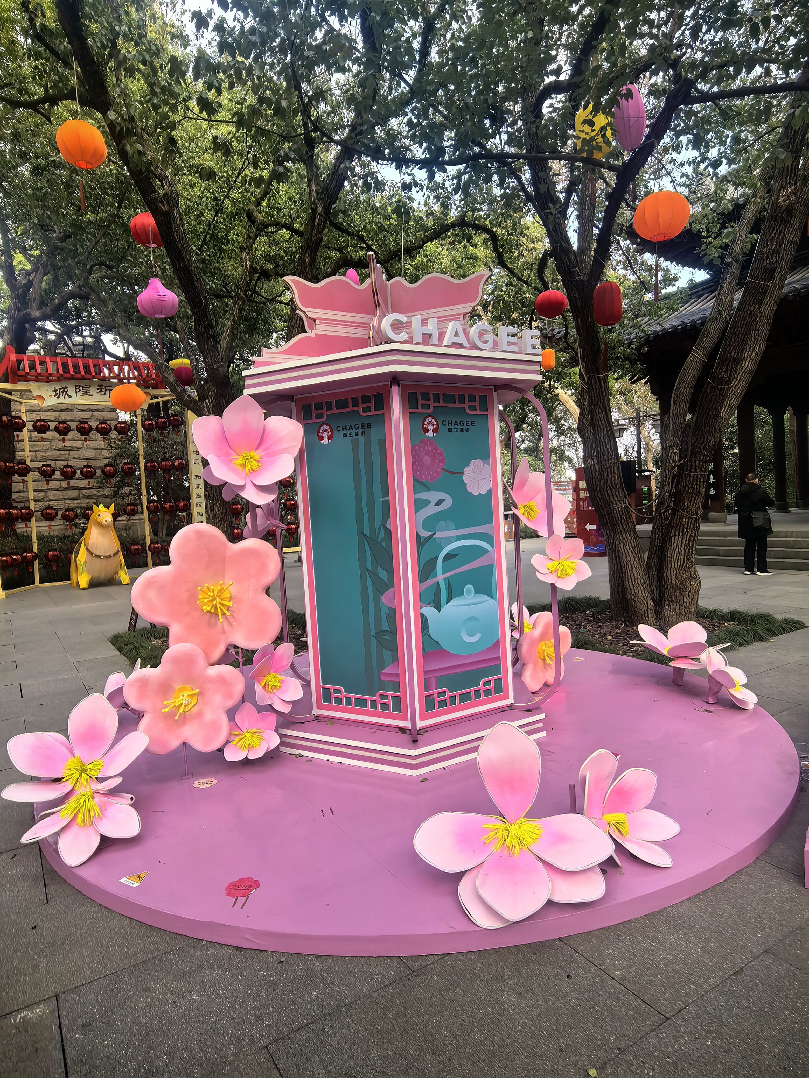 大年初三的吴山,沿着粮道山走,一路大红灯笼,赏灯的游人如织。 城隍阁前广场上,一串串造形各异的马形彩灯小品,吸引了许多游人的关注,马鬃金黄,鲜花锦簇,马儿昂首踏花而来。 在城隍阁开门之前,一场舞蹈音乐秀表演正在举行。