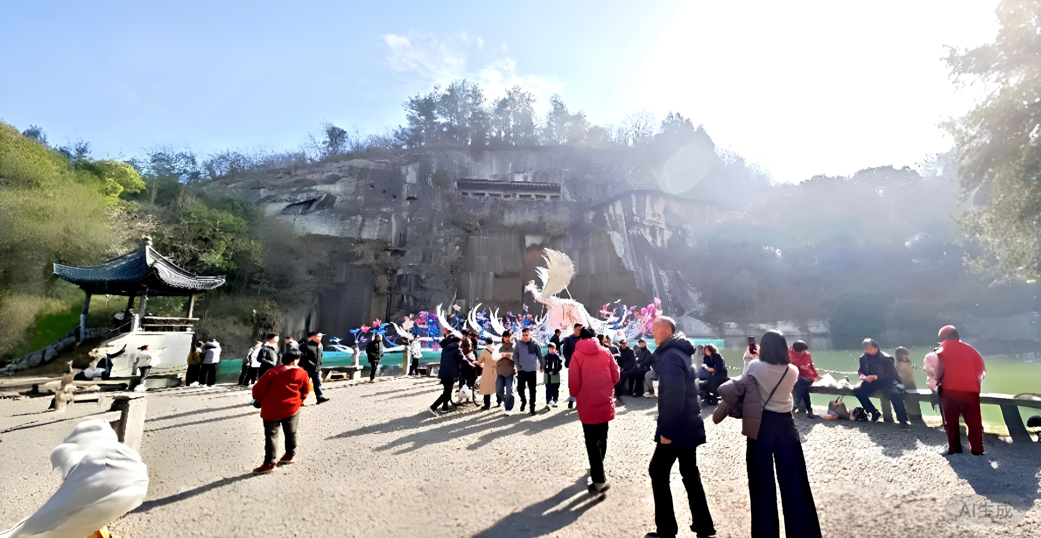 《新春的大佛城》,新春佳节,新昌县大佛城的风光迎来了全国各地纷至沓来的游客,从年三十到正月初三,游客激增如潮。