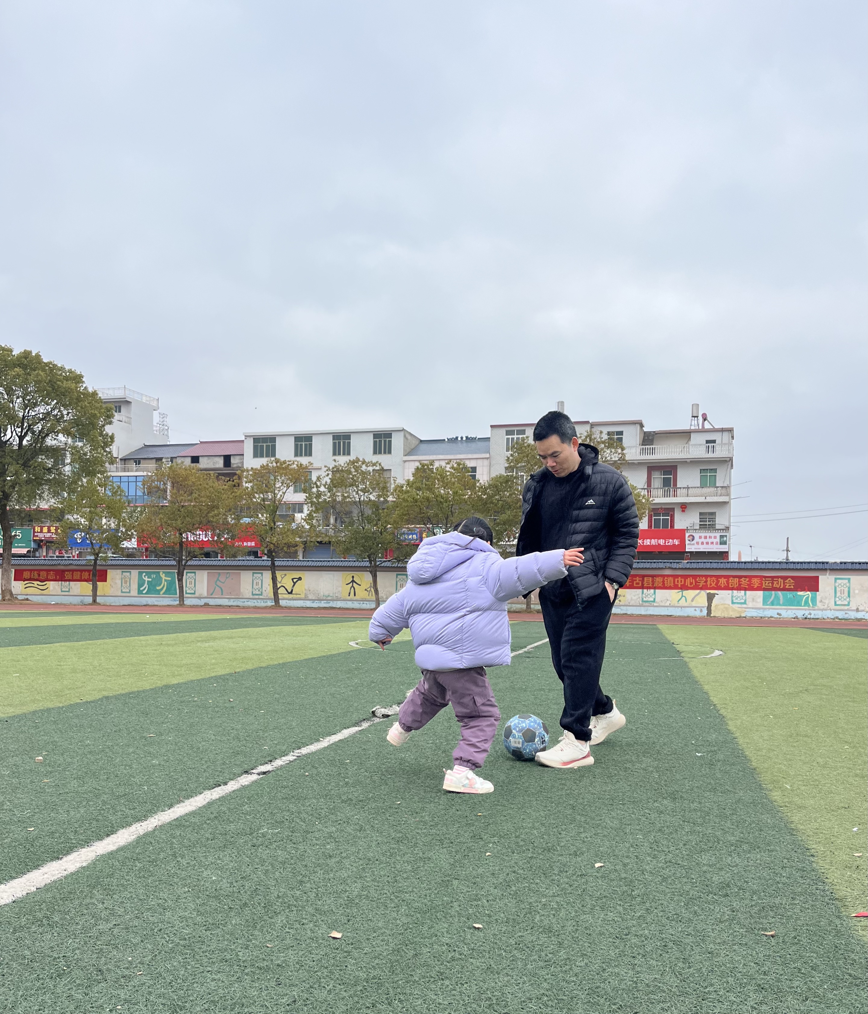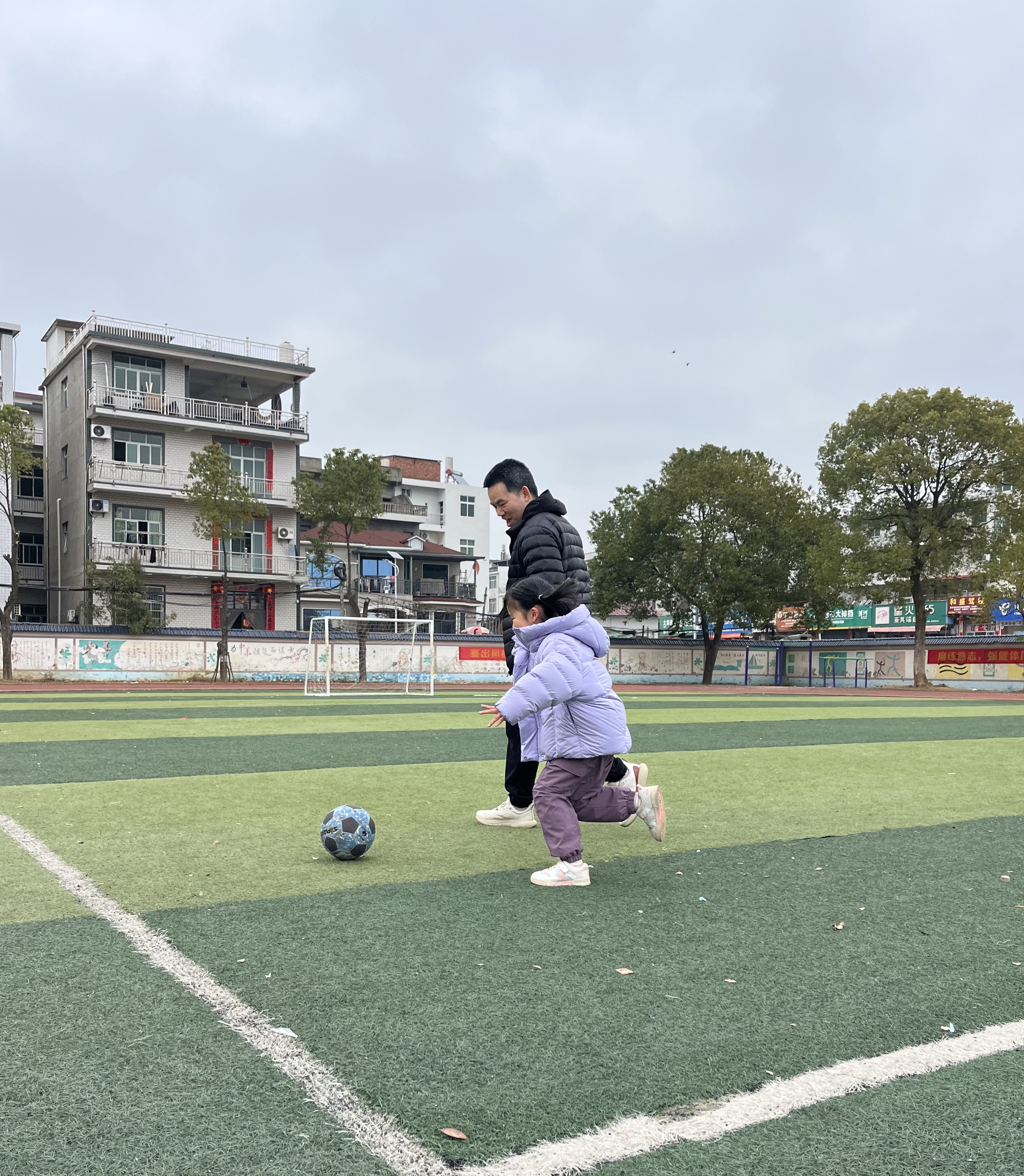 今天是春节的第四天,正月初四,天气微阴。我带上爸爸妈妈一起来校园的操场踢足球⚽️,我和爸爸追着足球跑,妈妈举着手机,试图用照片定格住这寒假的快乐和温暖。妈妈时而拍照,时而一起加入到我和爸爸的阵营,今天的早晨虽然有点冷,但我心里感觉暖洋洋的。最暖的不是阳光,是和爸爸妈妈一起并肩奔跑的时光啊。