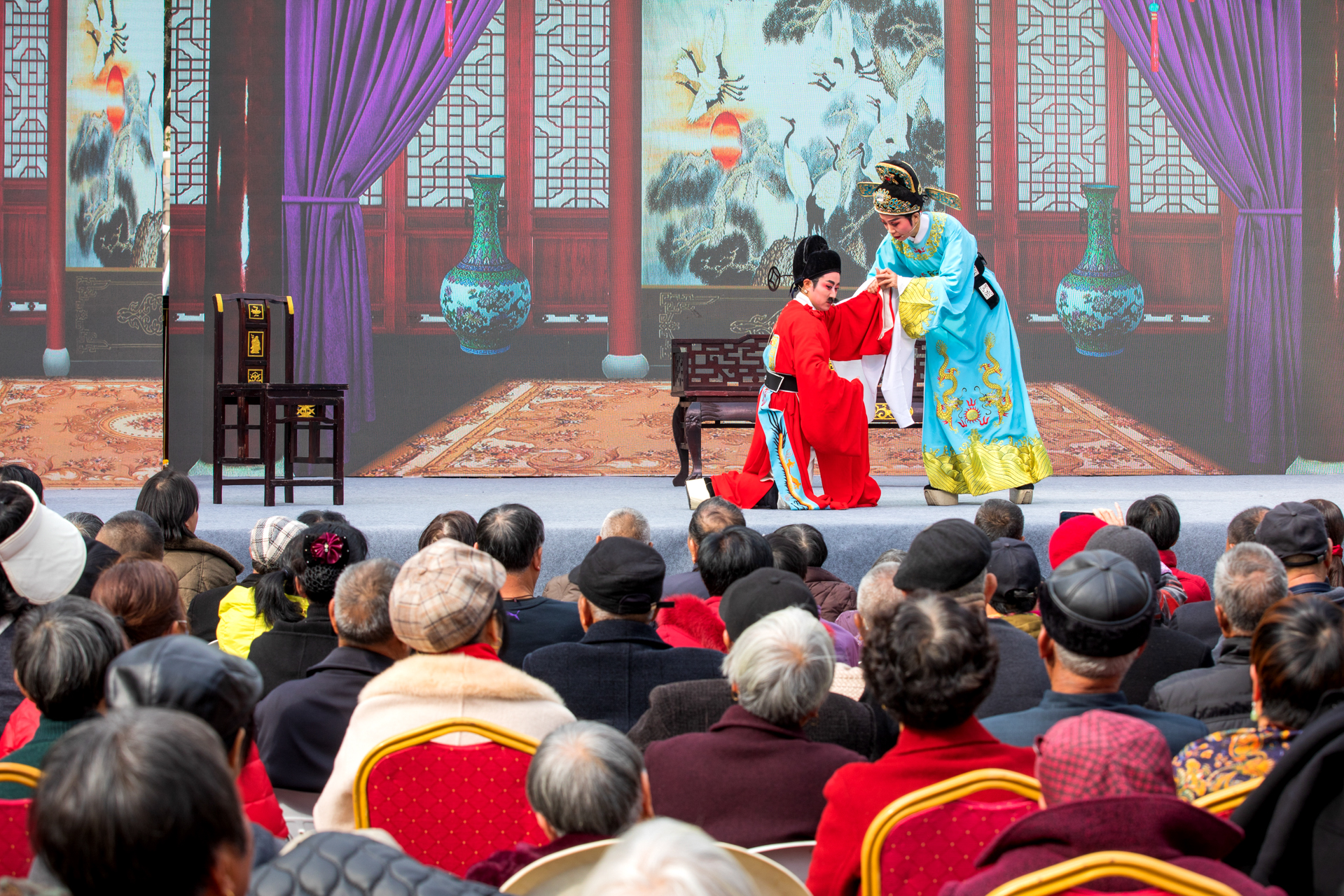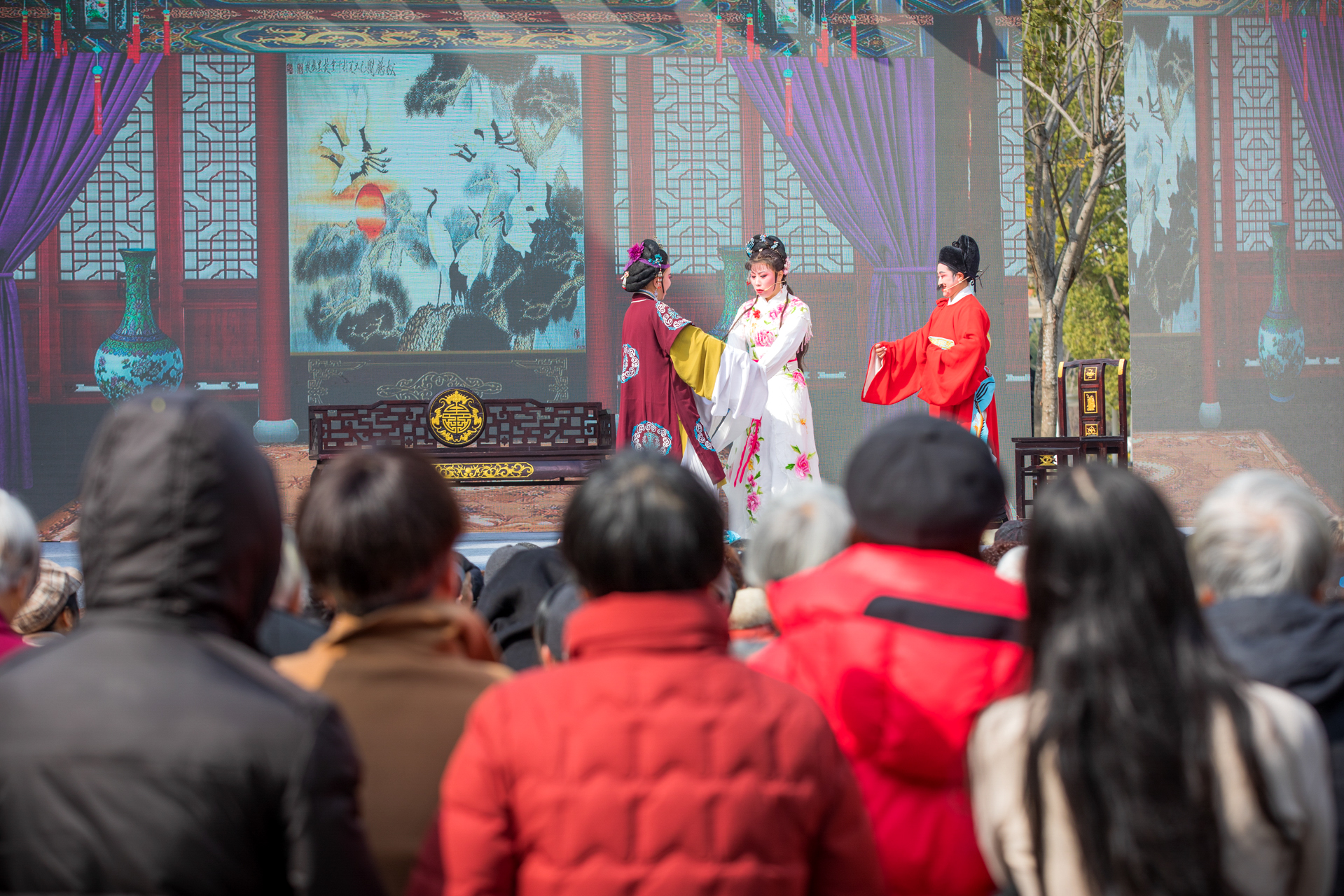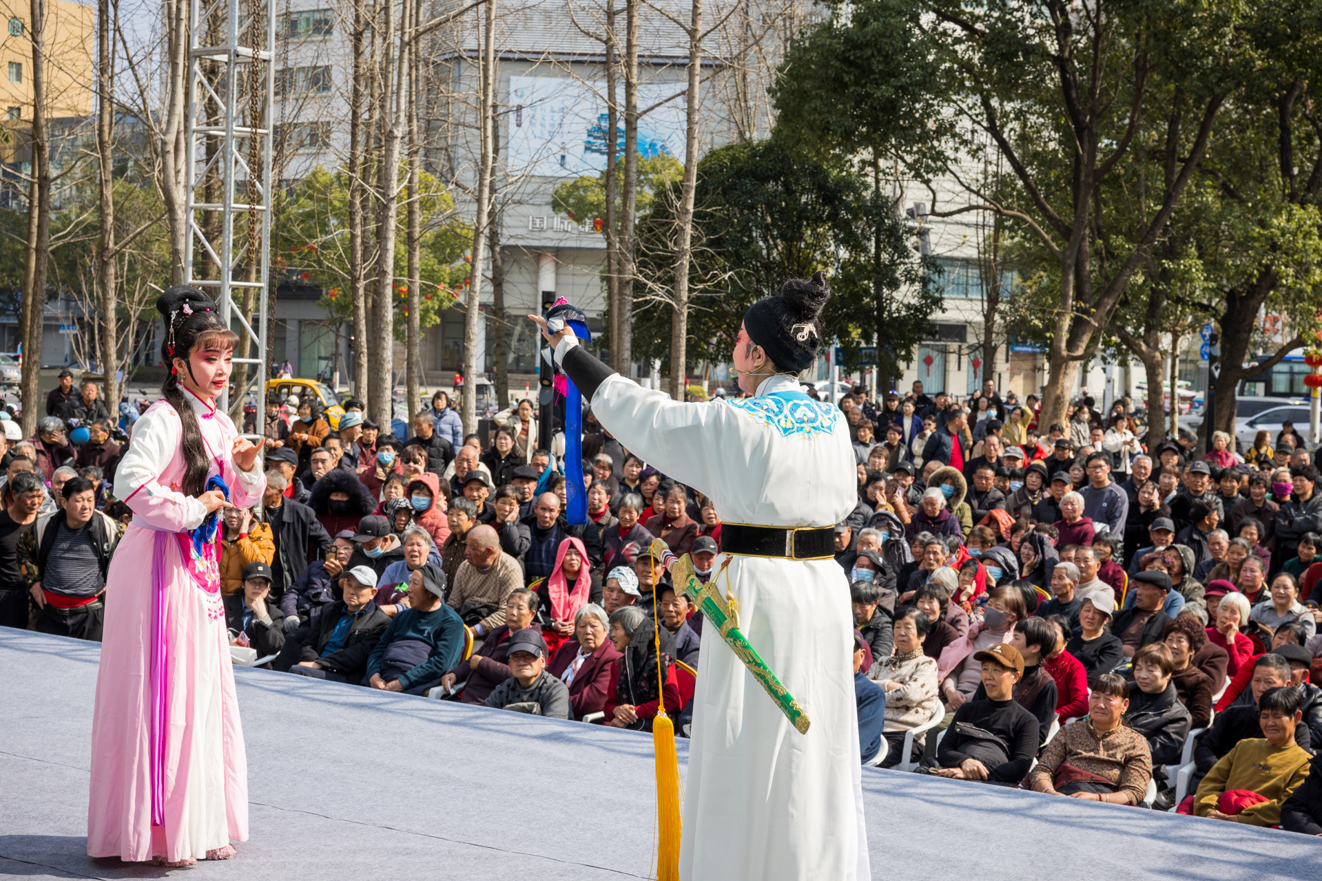 戏曲票友闹新春 2月19日,正月初三,当地戏曲票友协会在温岭市月河湾公园戏台演出经典越剧《民女封后》,为戏迷朋友带来一场沉浸式戏曲盛宴。