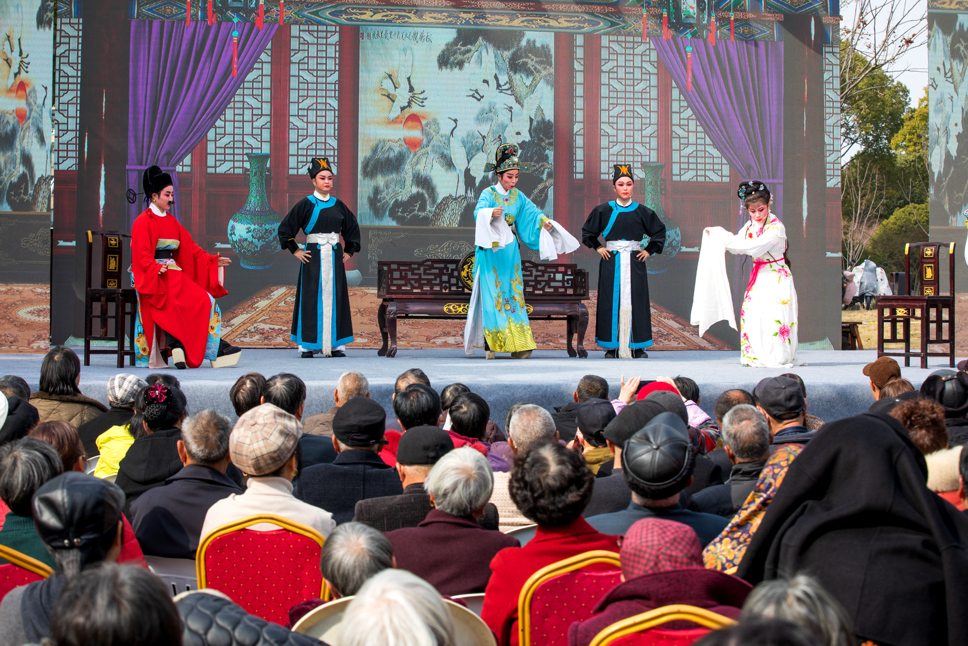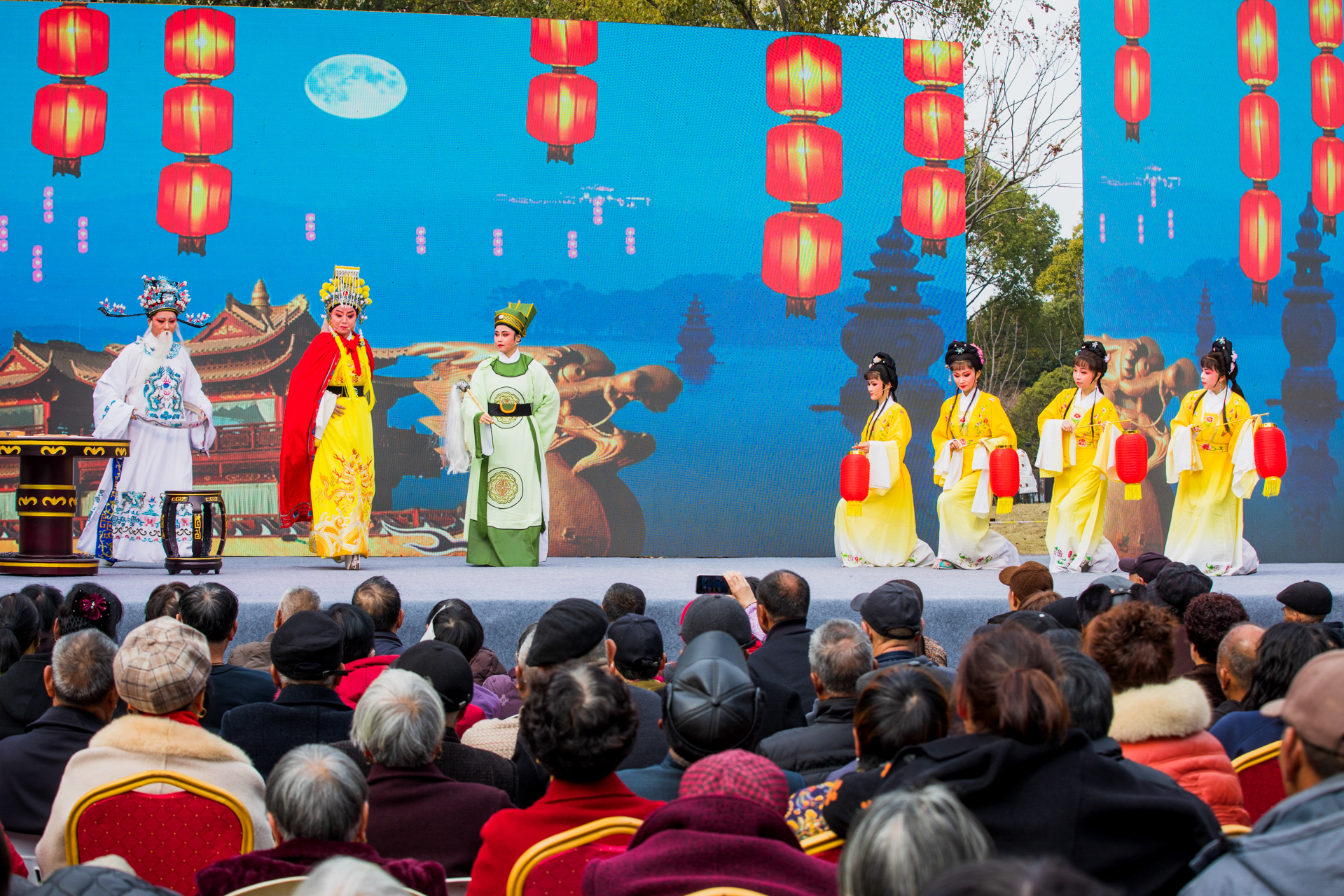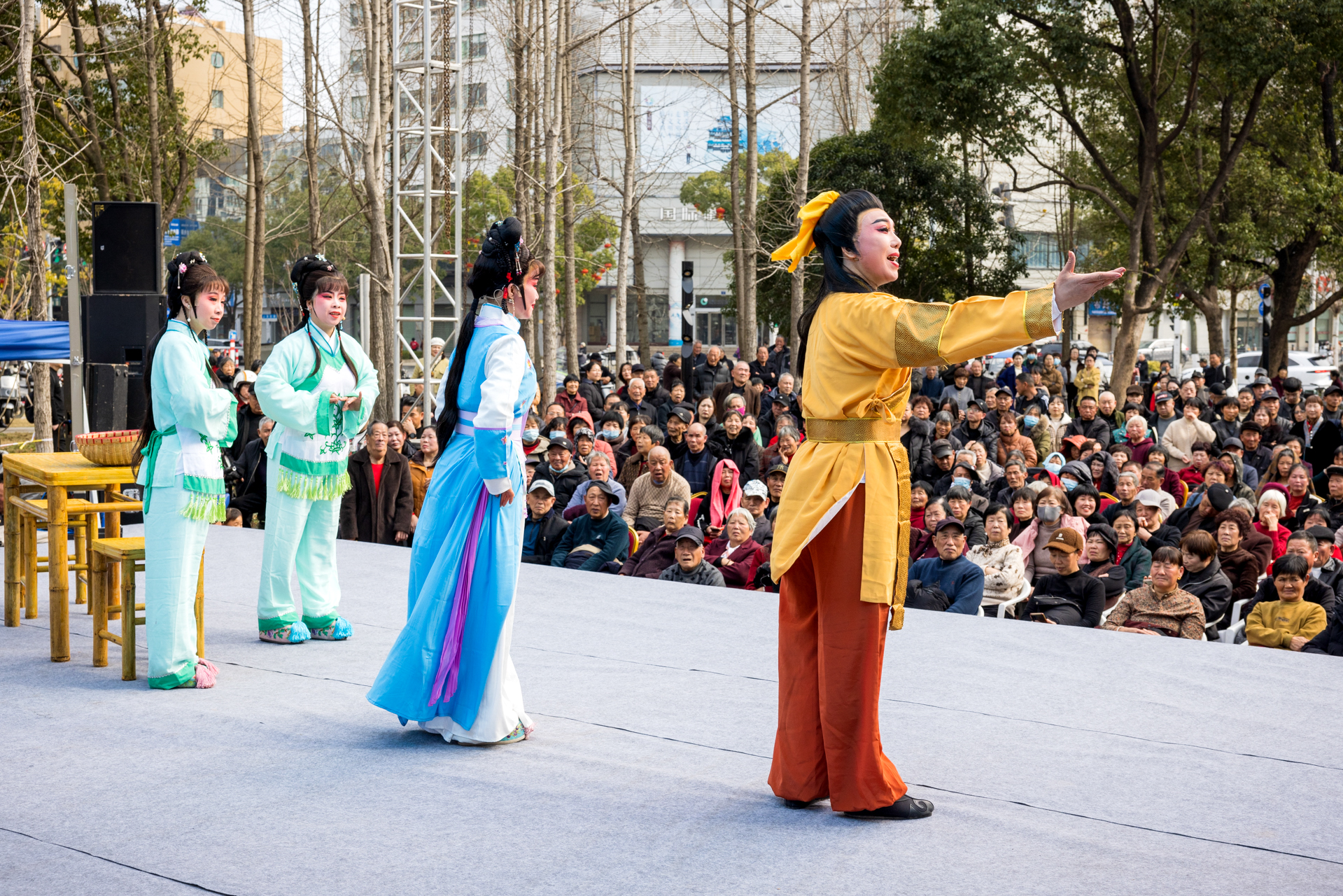 戏曲票友闹新春 2月19日,正月初三,当地戏曲票友协会在温岭市月河湾公园戏台演出经典越剧《民女封后》,为戏迷朋友带来一场沉浸式戏曲盛宴。