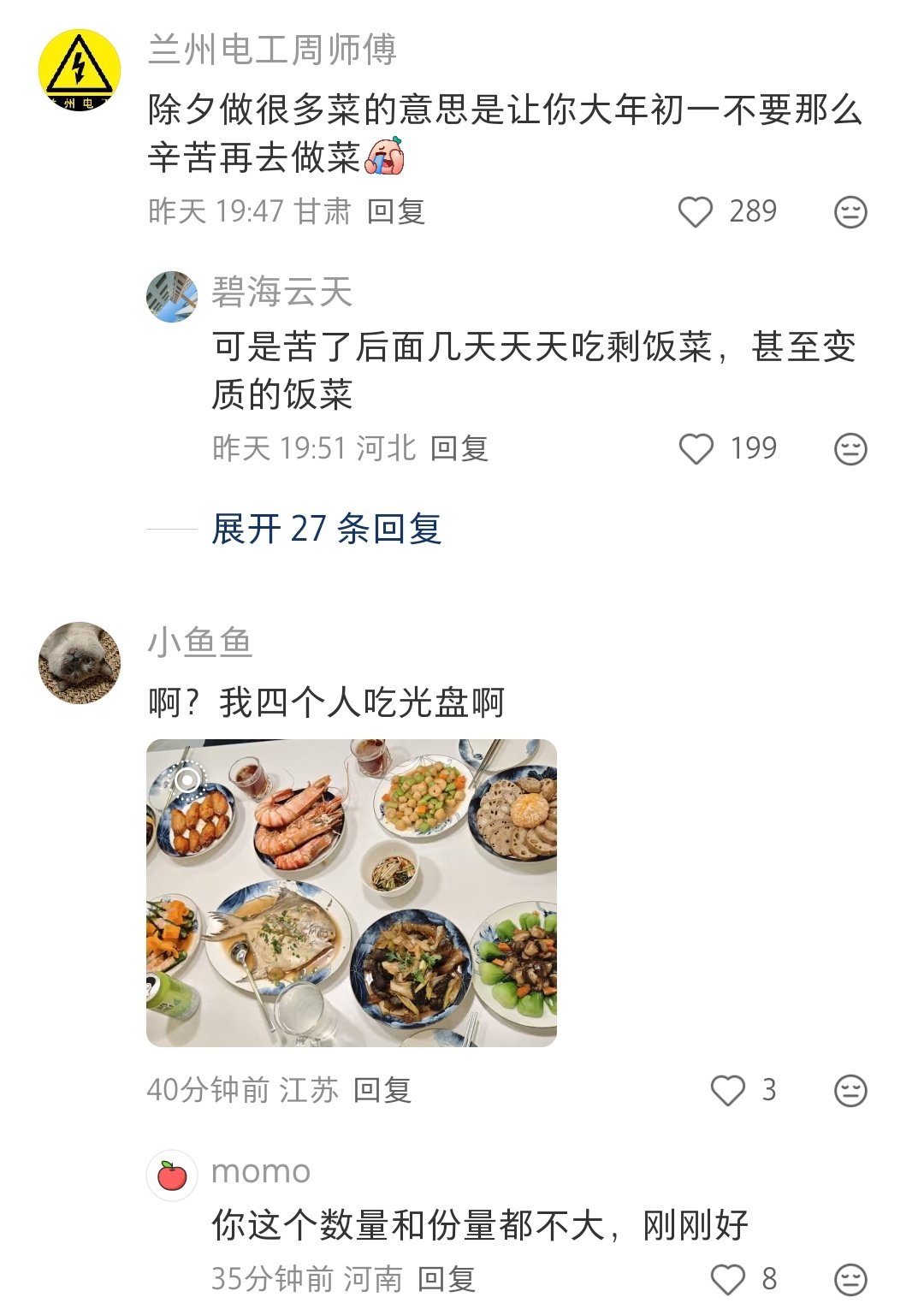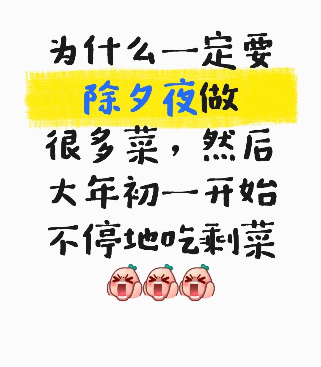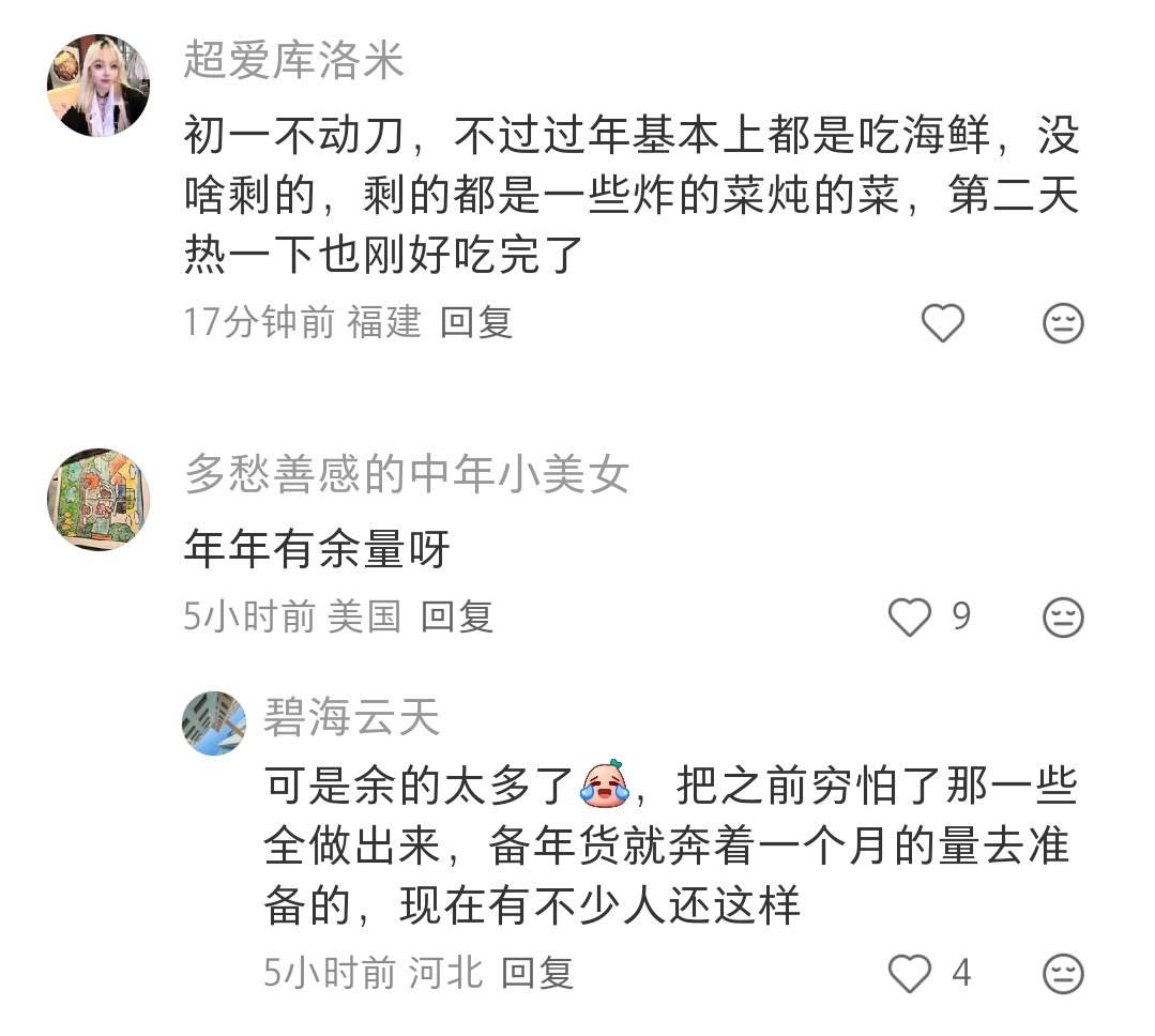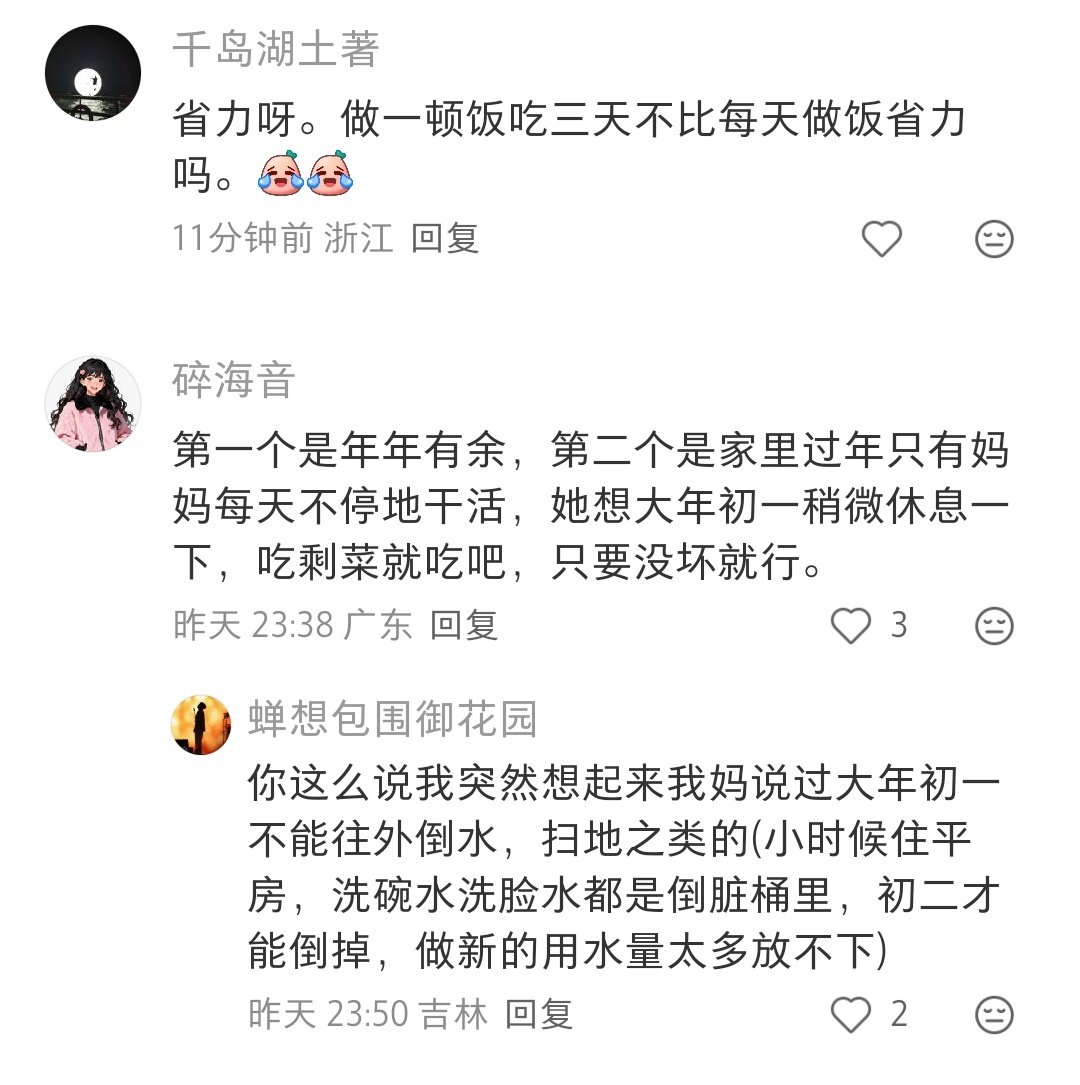 你现在可以说是陋习,但以前这样确实更合适。那时候冬天特别冷,食物不容易坏。也是为了让做饭人的过完年可以休息几天