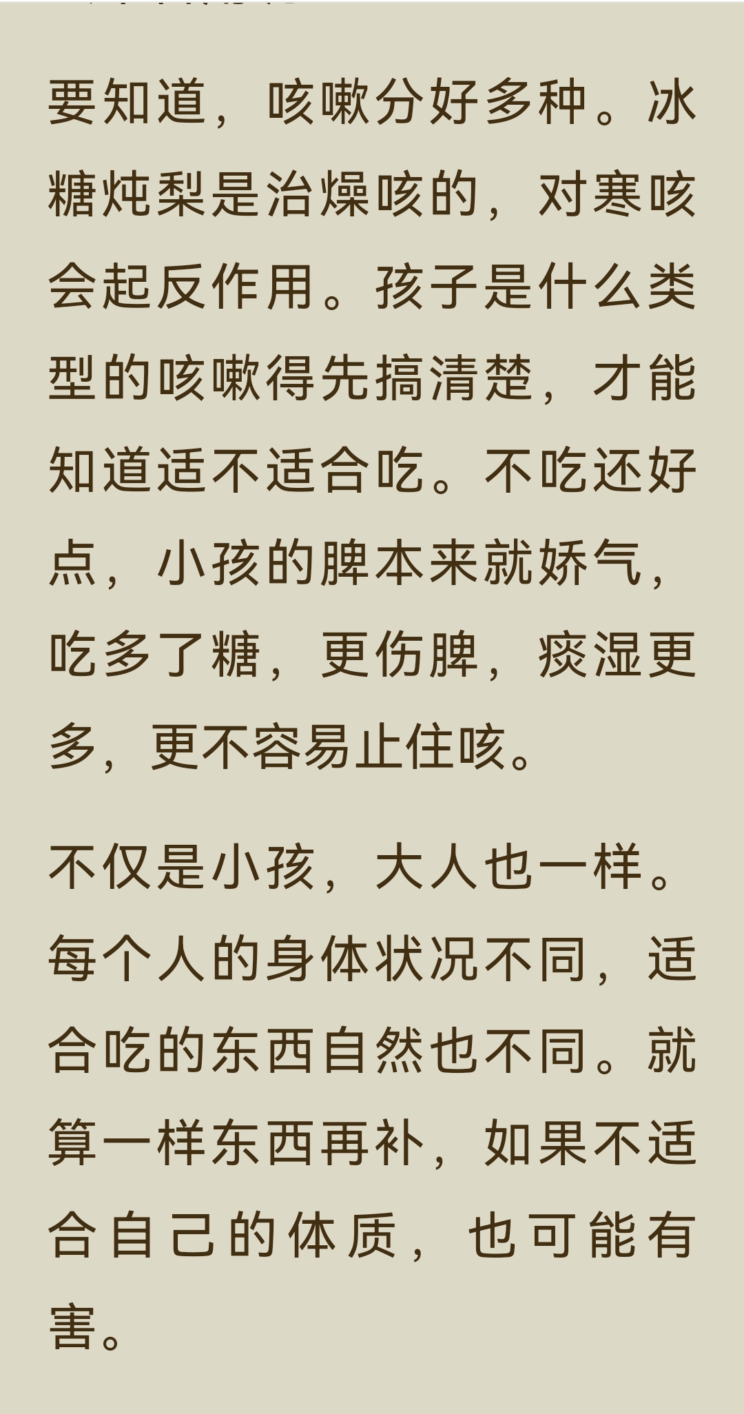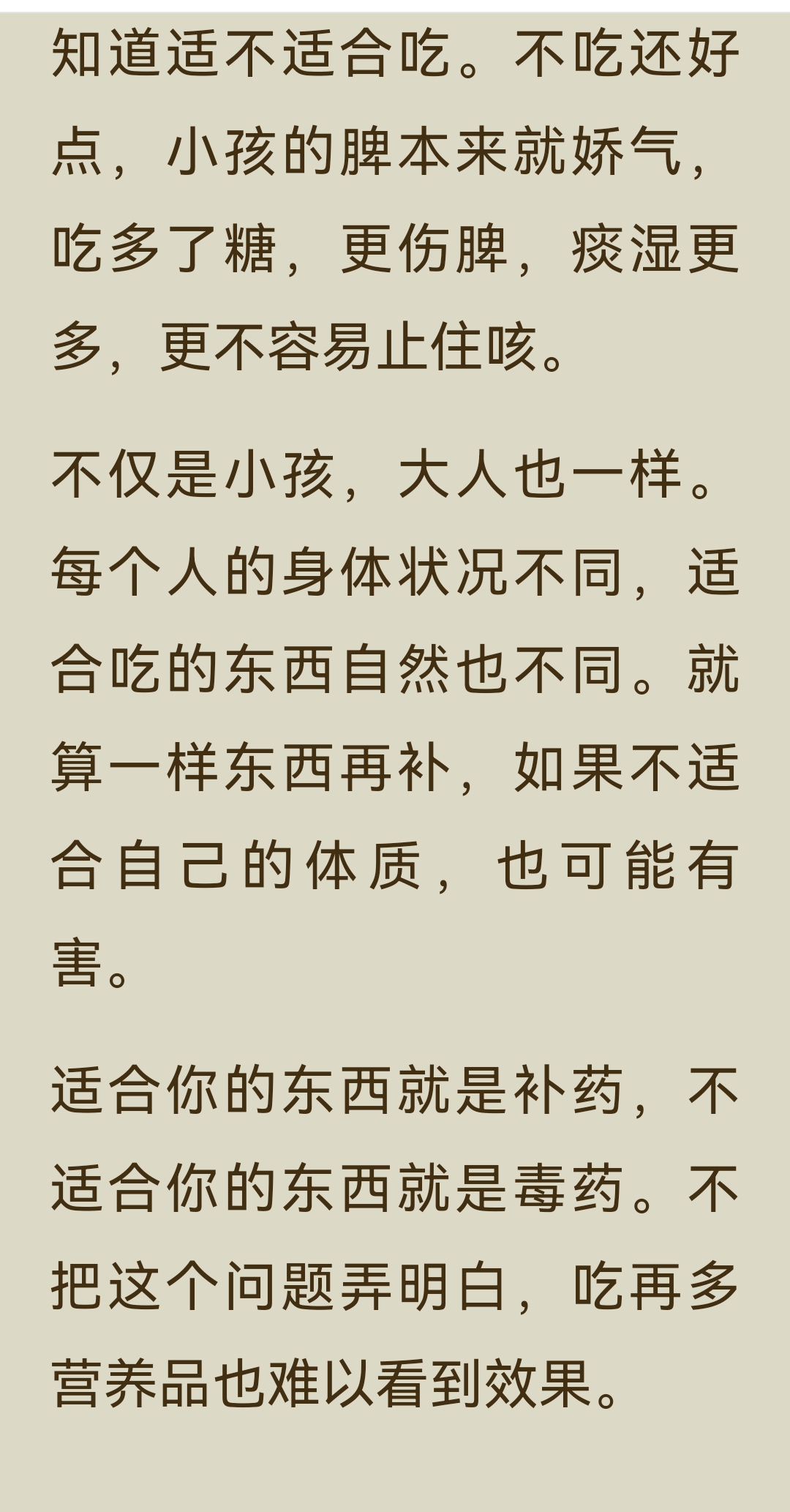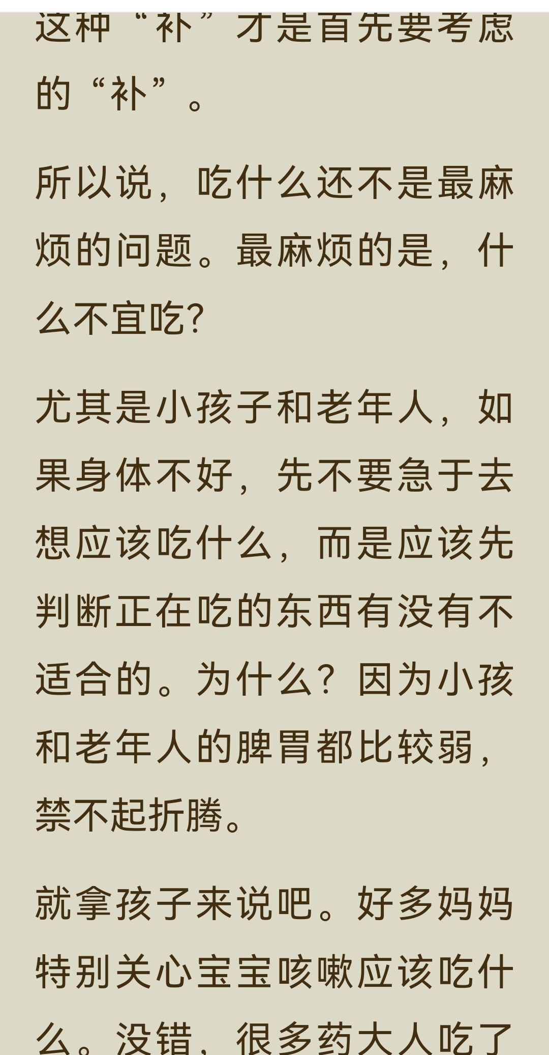 《回家吃饭的智慧》第一章第一节主要内容及阅读体会: 一、主要内容 《回家吃饭的智慧》第一章第一节,核心观点是:“应该不吃什么”比“应该吃什么”重要100倍。 1. 饮食与疾病的关系 作者提出“人吃五谷,生百病”,指出很多健康问题都是长期不良饮食习惯造成的。调理身体的首要任务,不是盲目进补,而是先审视并排除日常饮食中对身体有害的食物。 2. 对“进补”的重新定义 吃补药只是“锦上添花”的补充,而识别并减少摄入伤害身体的食物,才是“亡羊补牢”式的根本调理。如果不先排除致病因素,再多的补品也难以见效。 3. 特殊人群的饮食原则 针对脾胃娇弱的小孩和老人,作者强调:身体不适时,不要急于寻找“该吃什么”的食疗方,而应先判断“正在吃的东西”是否适合。例如,小儿咳嗽多由饮食不节、伤脾生痰湿引起,控制饮食、清淡甚至暂时禁食,比盲目吃冰糖炖梨更有效。 4. 个体化饮食观 适合自己的才是最好的。即使是公认的补品,如果与体质、季节或病情不符,也可能变成“毒药”。咳嗽分燥咳、寒咳等类型,冰糖炖梨只对燥咳有效,用错反而加重病情,这一例子生动地说明了这一点。 二、阅读心得 读完这一节,我最大的感受是:养生的智慧,往往在于“做减法”,而非“做加法”。 在快节奏的现代生活中,我们很容易陷入“养生焦虑”:身体一不舒服,就想立刻找到“吃什么能好”的答案,于是各种保健品、食疗方轮番上阵。但作者却提醒我们,问题的根源可能恰恰在于我们每天都在吃的东西。外卖的重油重盐、零食里的添加剂、不分体质的盲目进补,这些才是蚕食我们健康的“隐形杀手”。 这让我反思自己的饮食习惯:是否常常为了图方便而忽略了食物的本质?是否在追求“营养”的同时,给身体增加了不必要的负担?作者用小孩咳嗽的例子让我明白,有时候“不吃”比“吃”更重要。当身体发出警报时,给脾胃“减负”,让它有机会自我修复,远比强行投喂补品更有智慧。 同时,“适合你的才是补药”这句话也点醒了我。养生不是照搬别人的成功经验,而是要建立对自己身体的认知。了解自己的体质,顺应季节的变化,拒绝跟风式的养生,才能真正做到“吃对家常便饭”,把健康的主动权掌握在自己手中。