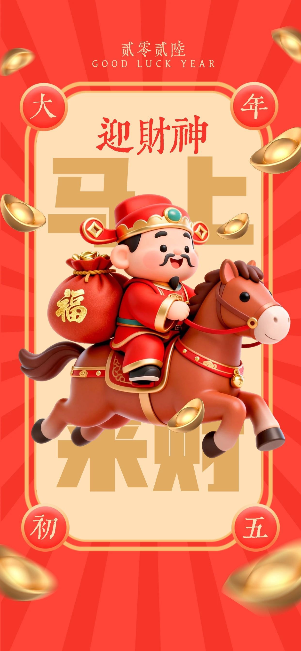 ❤️初五迎财神💰马年清单✅ 接正财:工作顺风顺水✅ 接偏财:运气爆棚,惊喜常伴✅ 接健康:家人无恙,身心舒畅✅ 接平安:岁岁年年,万事顺遂五路财神进家门东南西北中,面面是财源2026,祝我们都:有钱有闲健康平安~
