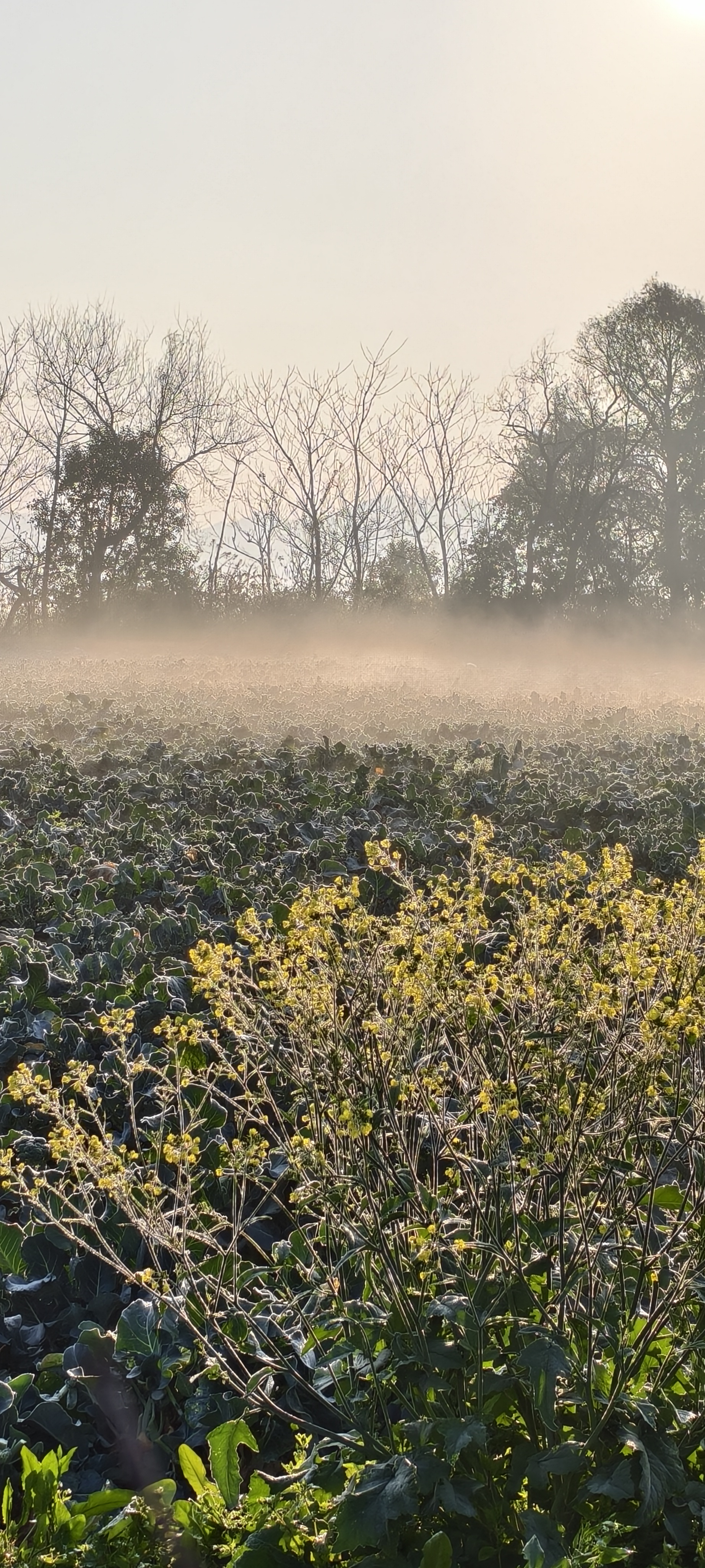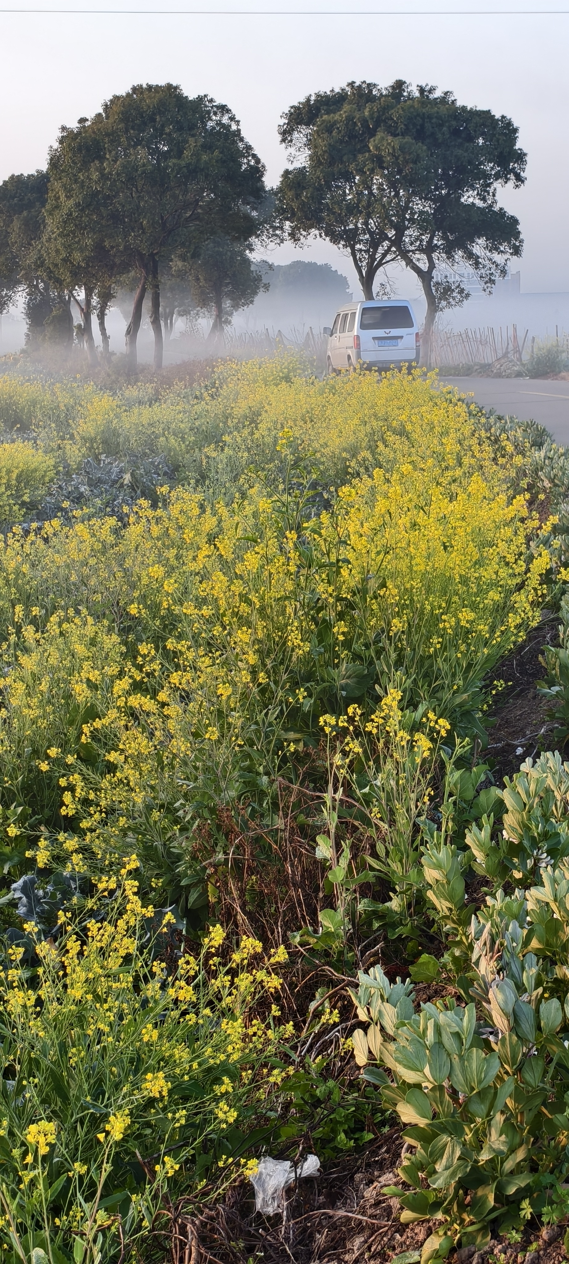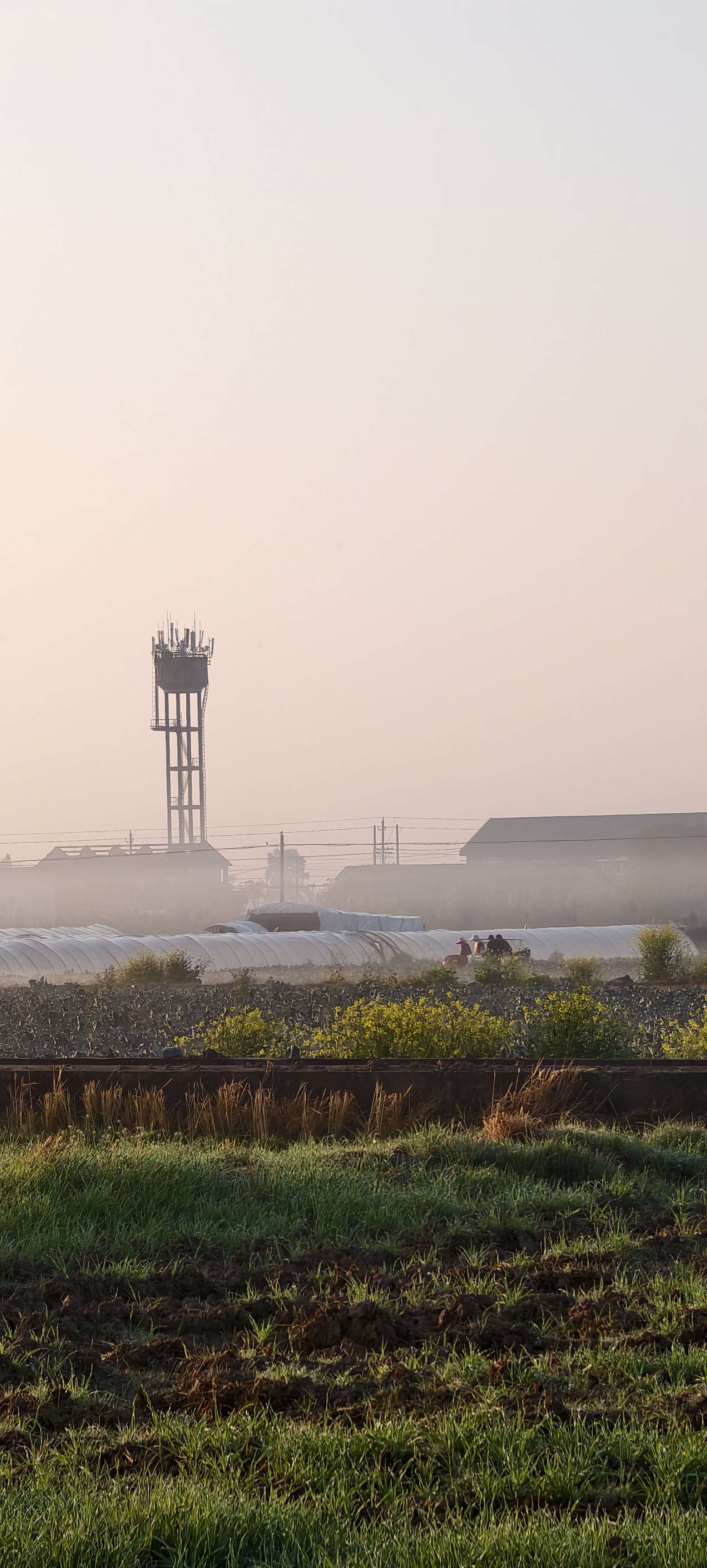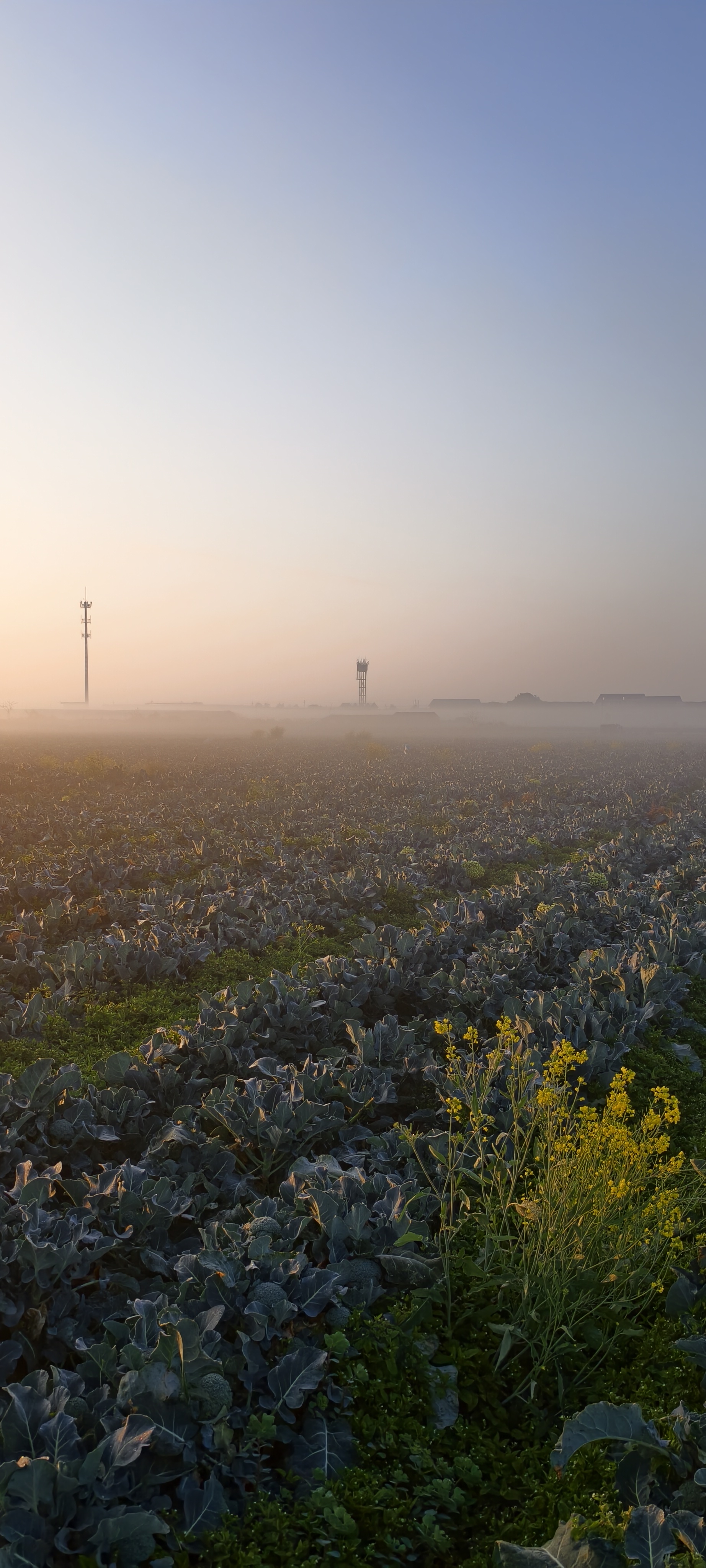 温岭东浦农场晨雾中菜农已开始采摘西兰花。