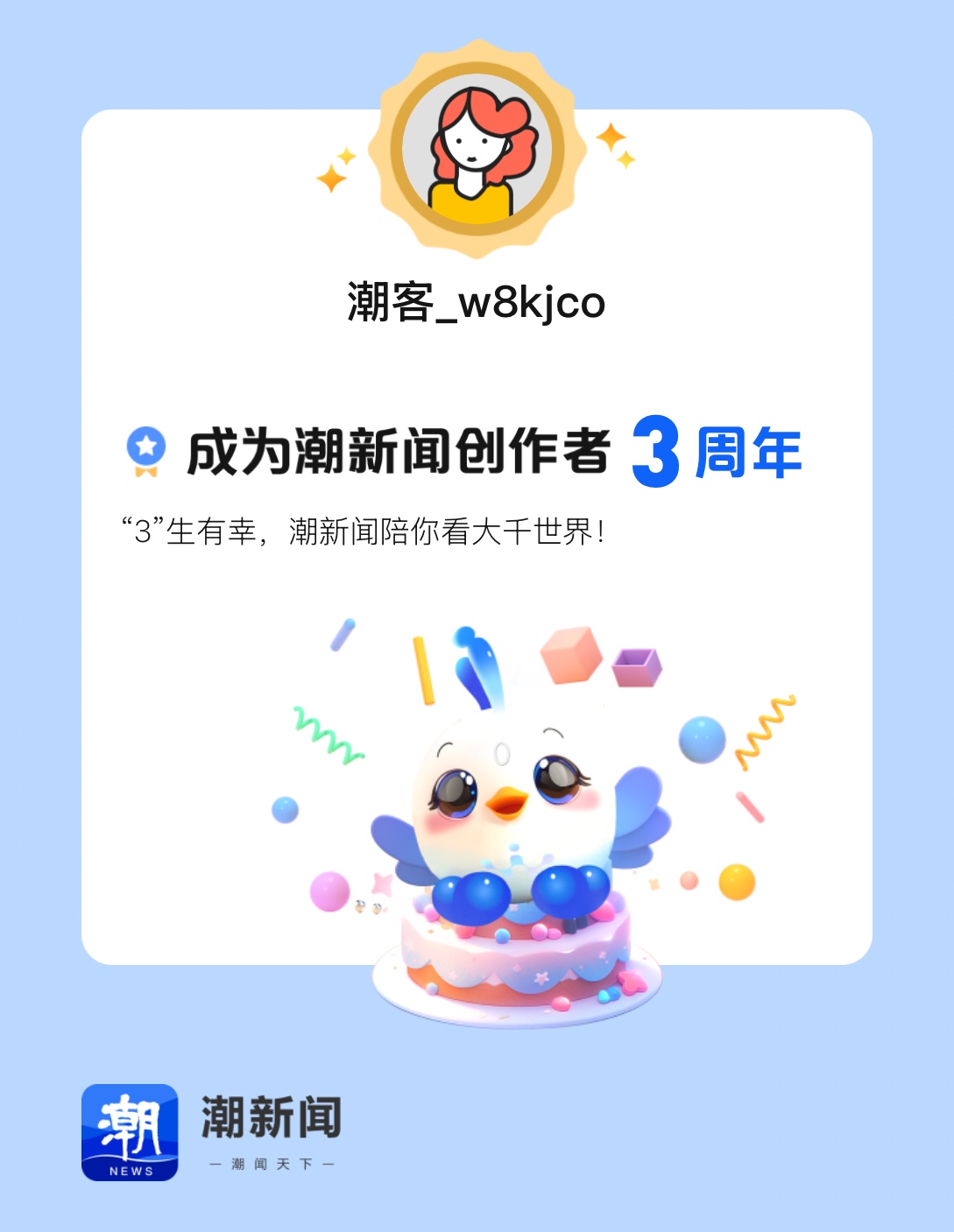 今天是我加入潮新闻创作者大家庭3周年的日子,快来我的主页看看这一年的创作成绩单吧!