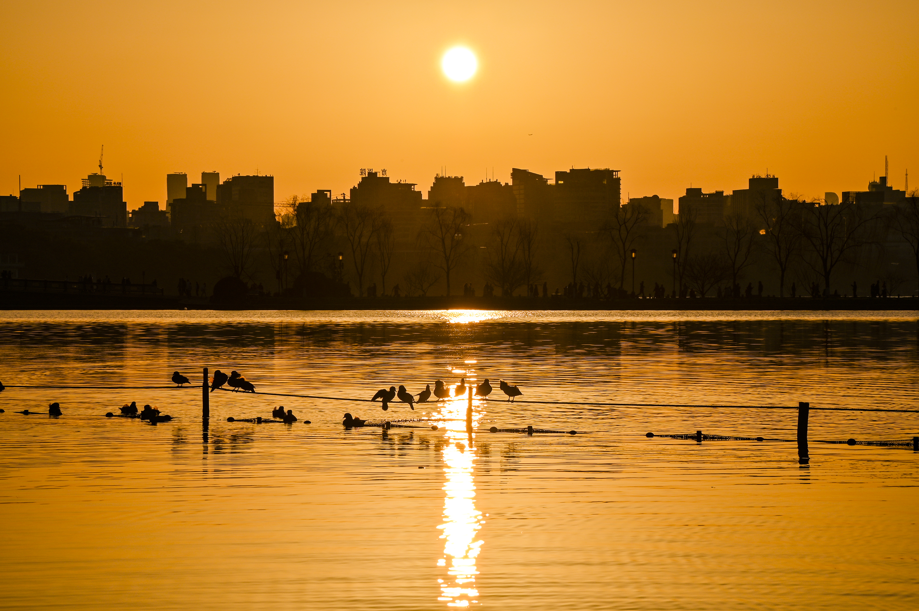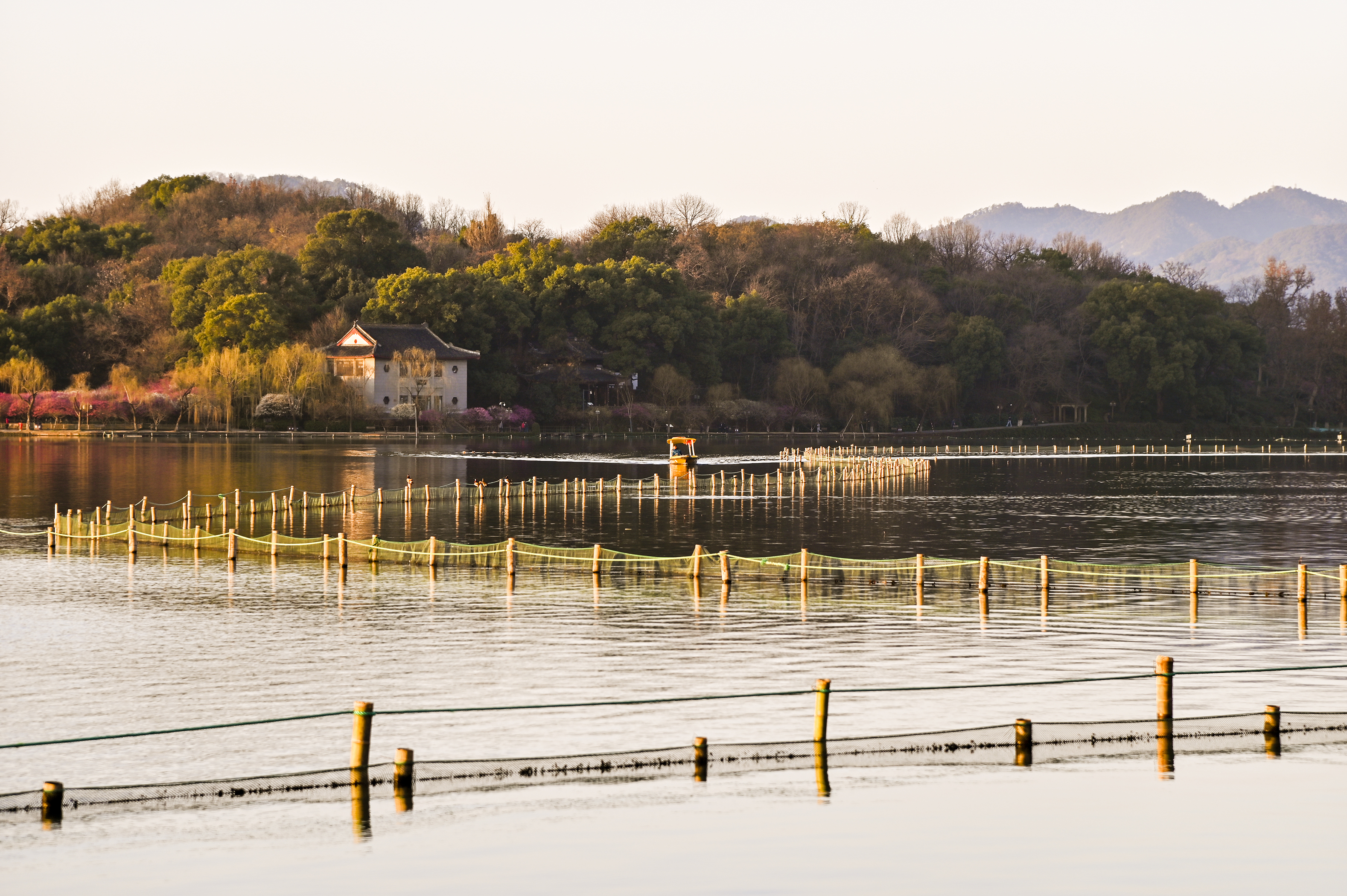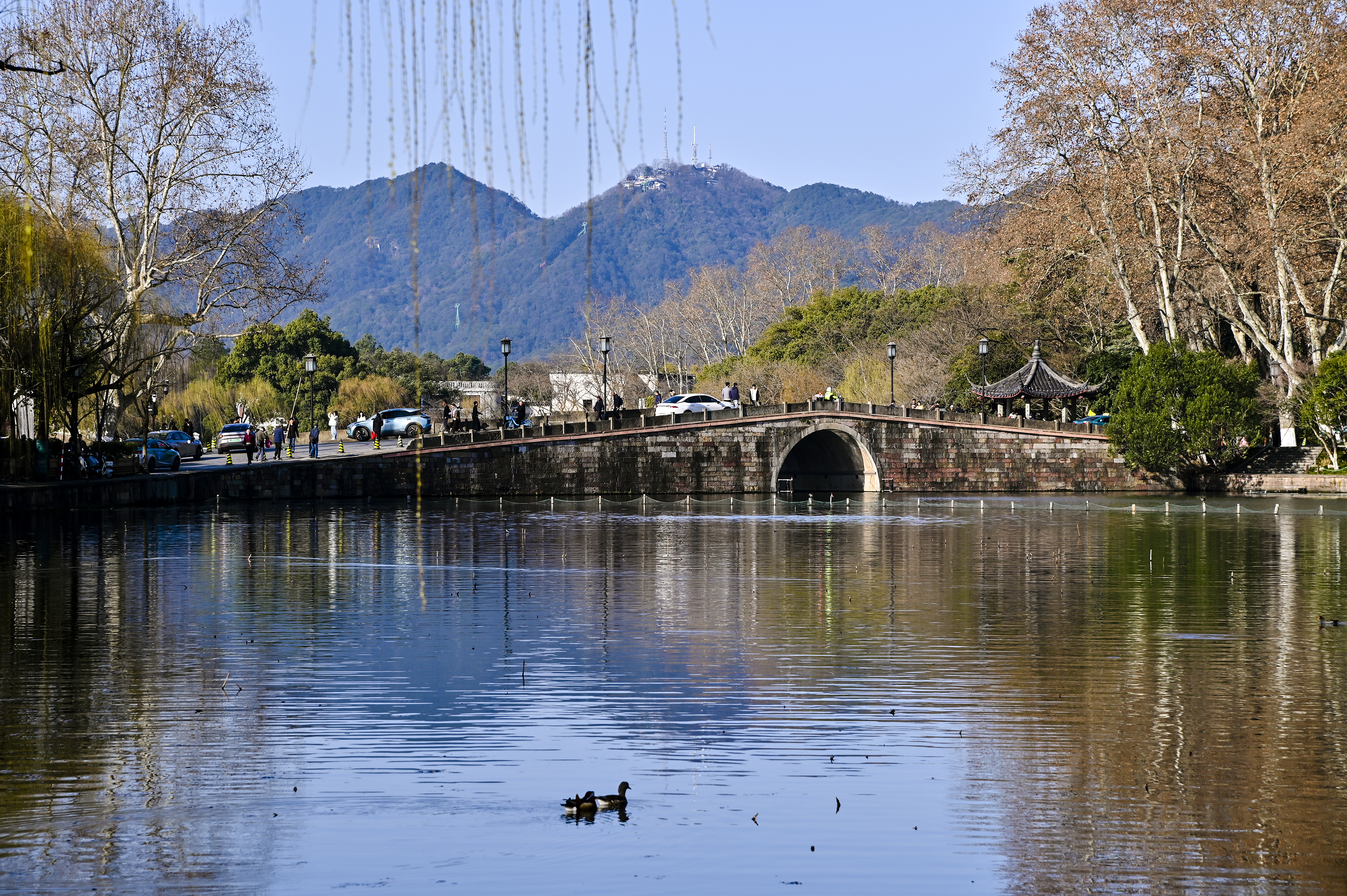 西湖晨曦,初升太阳洒满湖,金光闪闪;城隍阁锦带静卧,鸳鸯戏水;雷峰塔影映孤山,鸬鹚扑鱼;西泠桥下鸭知暖,遥望北高峰,财神爷俯瞰湖光山色,光影流转间,尽显杭城诗画风韵。