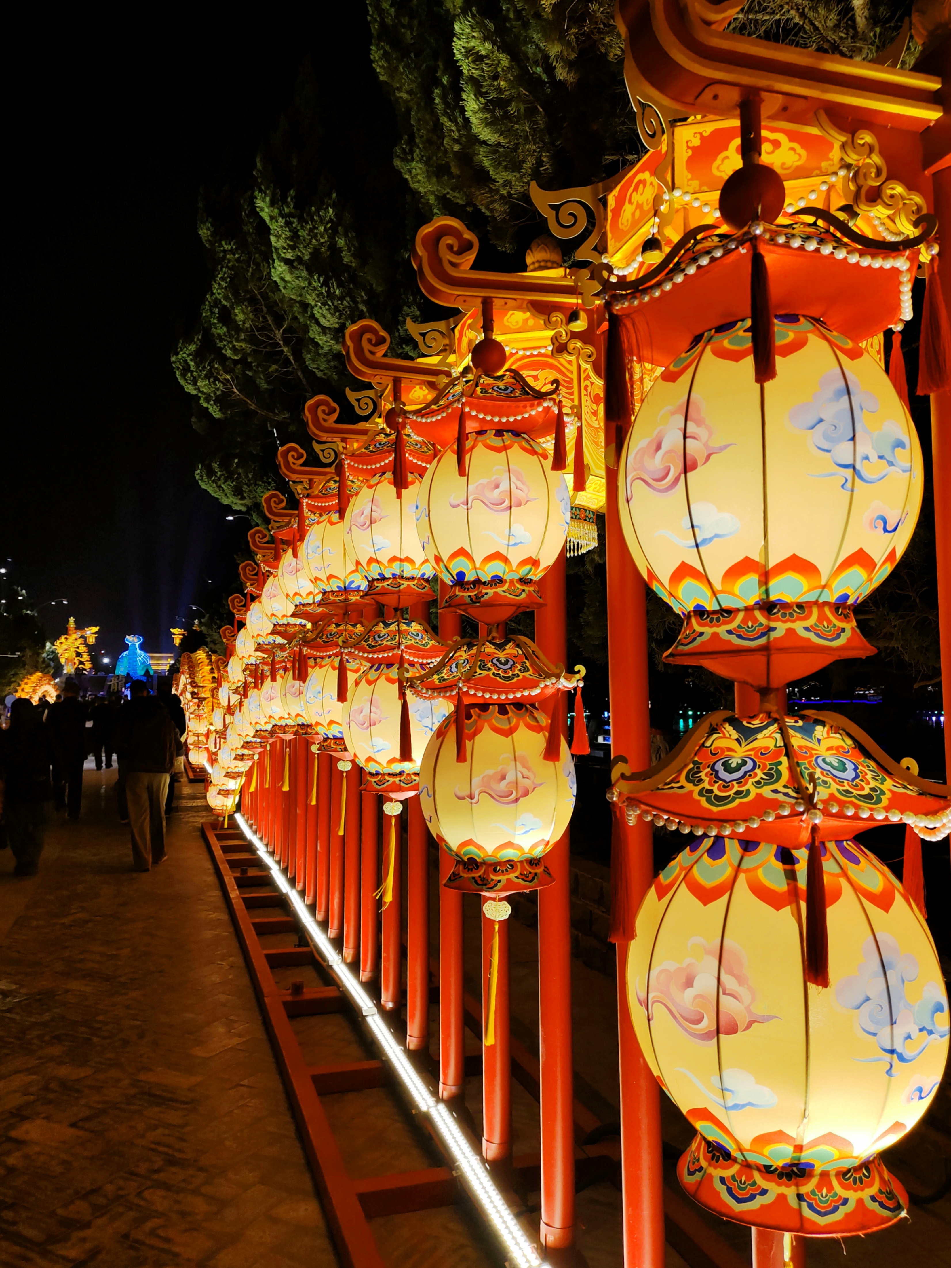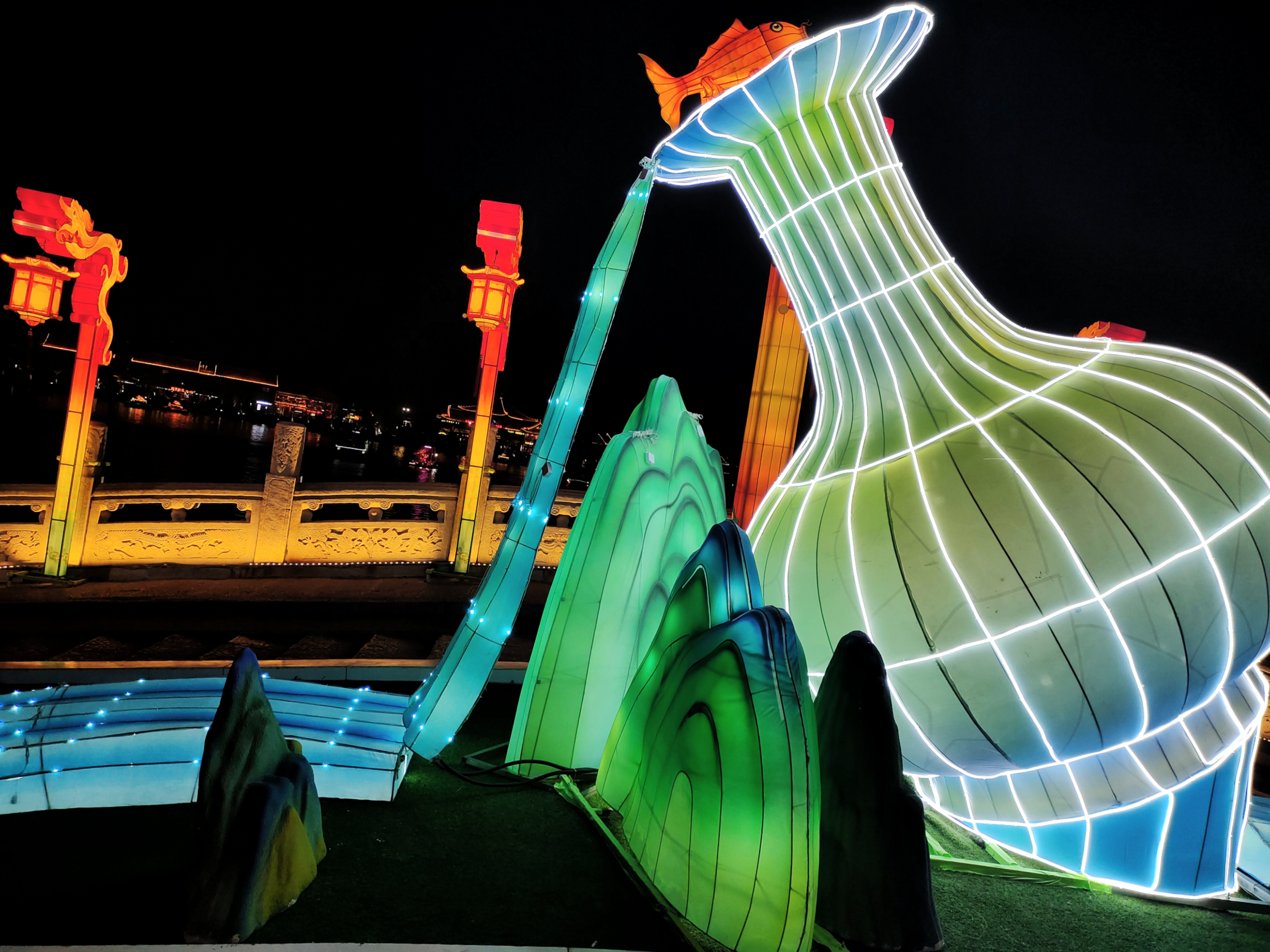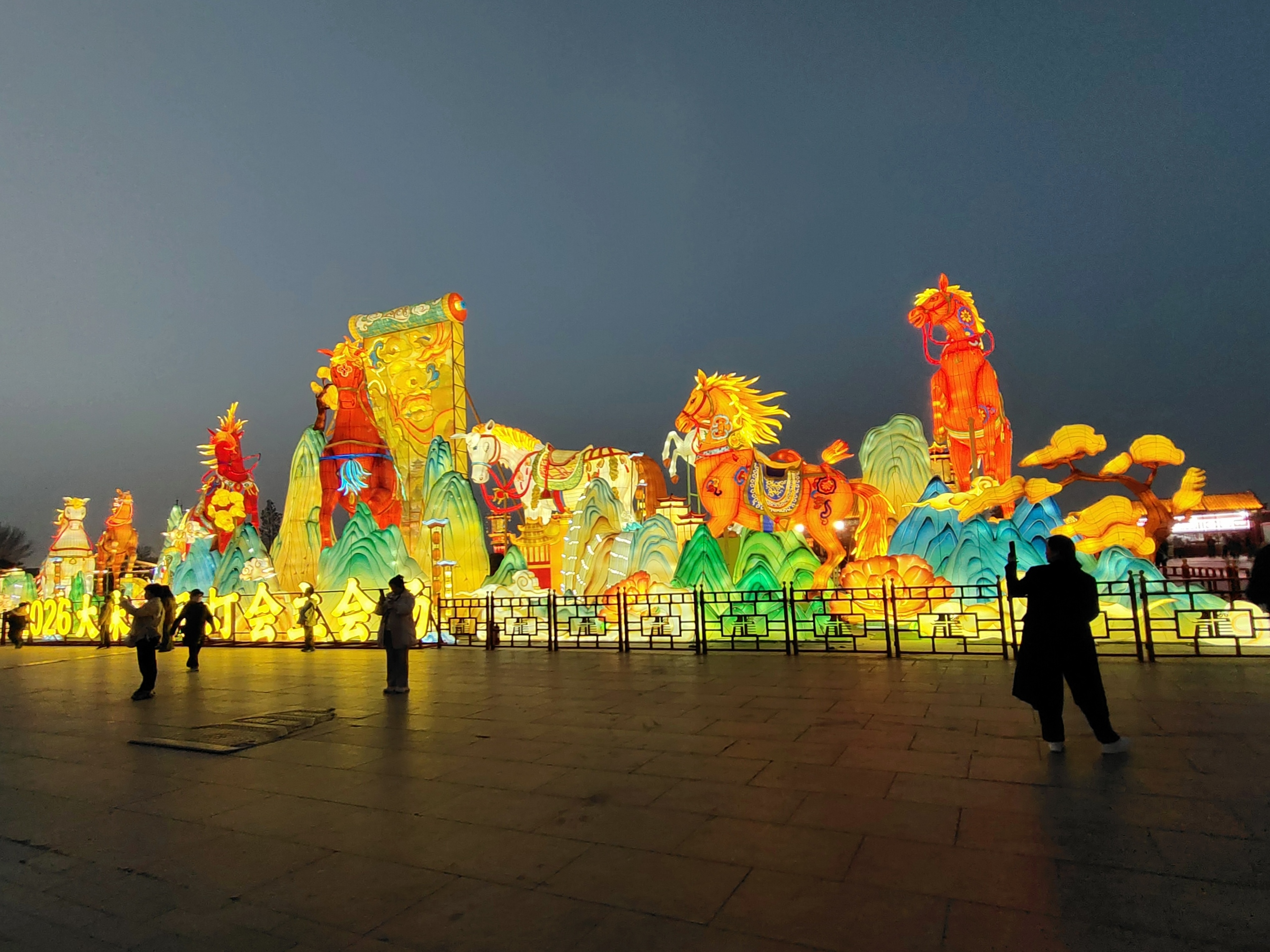 龙亭夜,千灯浮汴水。云纹轻绕朱阁,鲤跃瓶中春意浓。红廊蜿蜒,金鬃骏马踏光而来——一盏灯,照见千年宋韵流转。