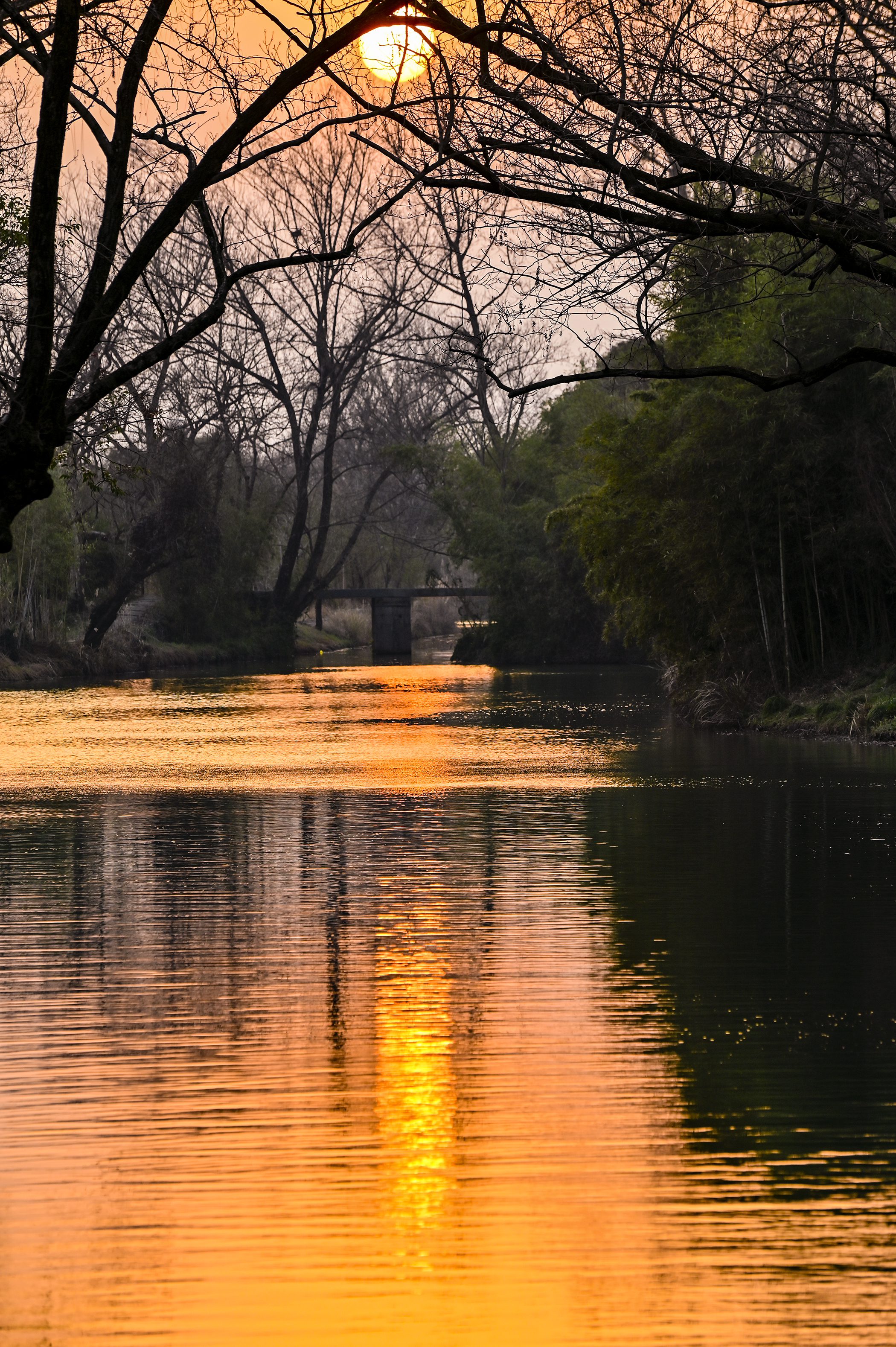 冬春西溪,夕阳熔金,梅影浮水,菜花镶坎,枝干如墨,波光轻漾,静谧里藏着整个初春的呼吸。