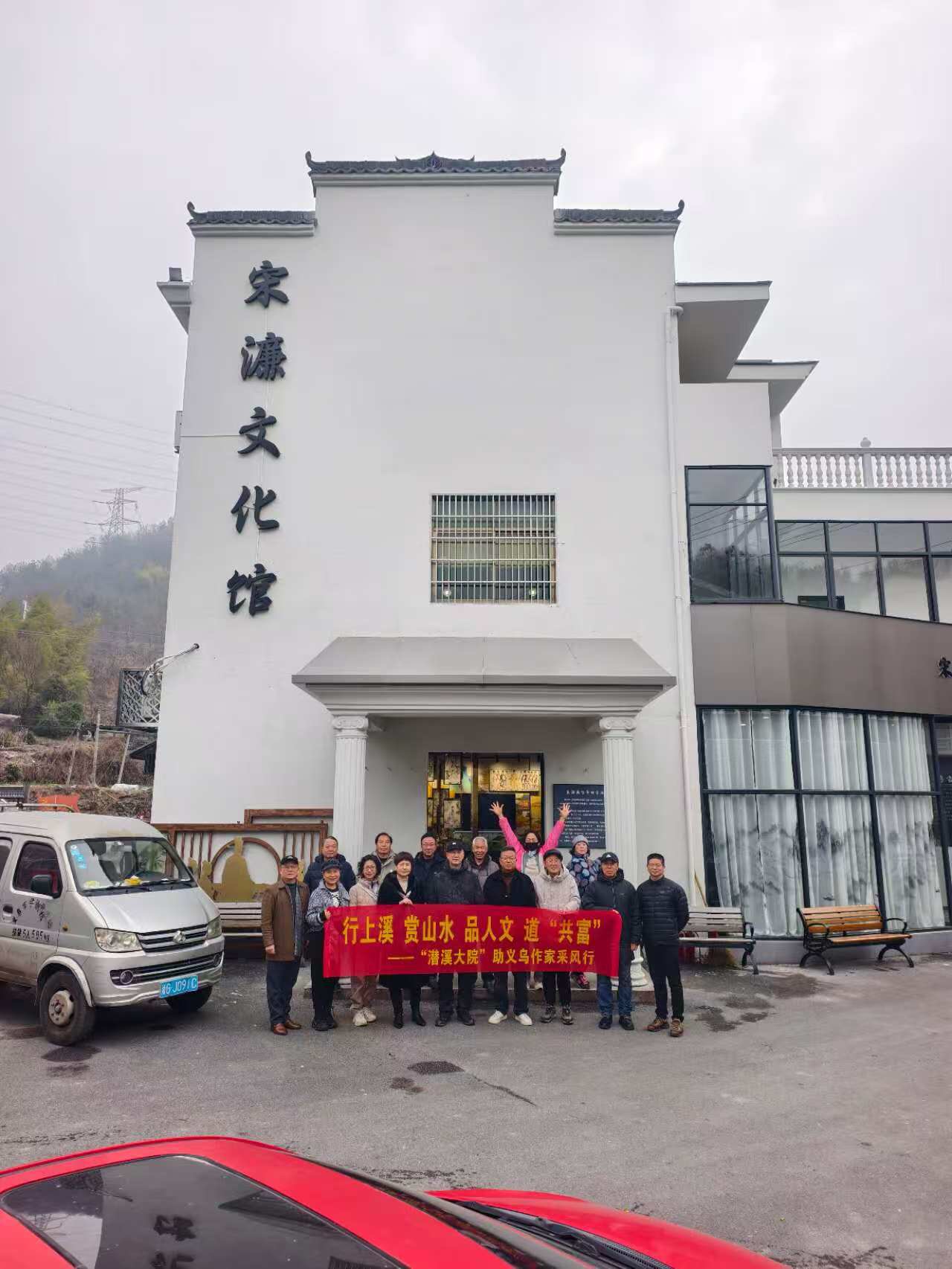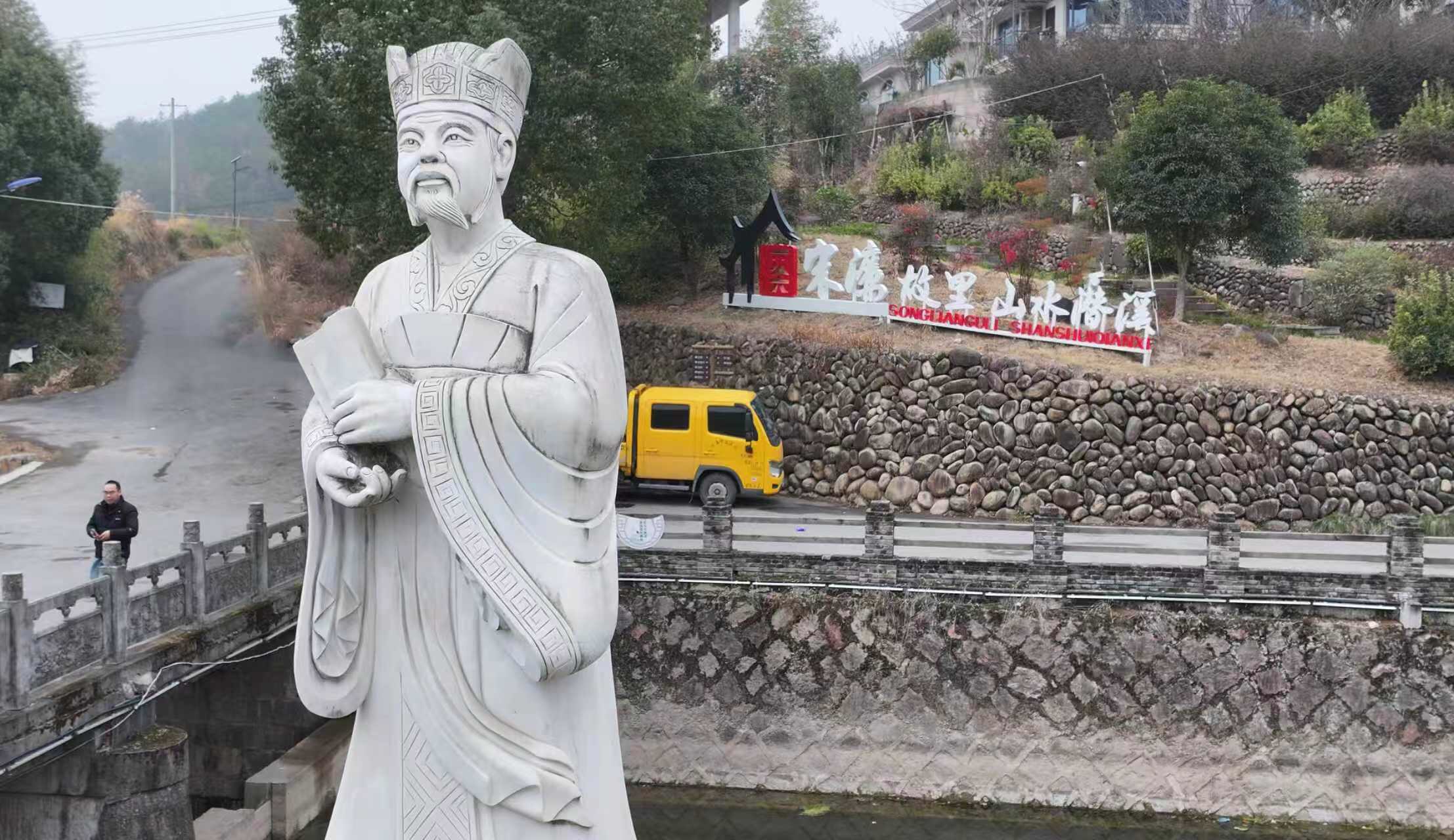 在基层|义乌潜溪与宋濂 文/王曙光 摄影/ 郑小平 王军生 陈静 杜凯航 新春时节,应“潜溪大院”负责人、沈耀军文友之邀,义乌作家一行前往上溪镇潜溪行政村沿华自然村,了解和征集宋濂的史料。 宋濂(1310—1381),字景濂,号潜溪,人称“潜溪先生”,是元末明初著名政治家、文学家、史学家、思想家,被明太祖朱元璋誉为“开国文臣之首”。位于沿华村的宋濂文化馆,陈列了关于宋濂的部分史料。该村党支部副书记宋斌拿出厚厚的《潜溪宋氏宗谱》,我们翻阅后得知这位名垂青史的旷世贤达与沿华村的宗族渊源。 追溯宋濂与义乌的关系,嘉庆《义乌县志》“卷十五”载,“五代周·宋荣:字体仁。广顺中,自吴兴迁县西覆釜山下。通《尚书》、《春秋》,有经济才,累征不就,学者私谥:“文通先生”;子(宋)甫:宋雍熙末,迁根溪口1,是为宋村;六世至(宋)柏,迁金华潜溪;又四世至(宋)濂,迁浦江青萝山。洪武十年(1377),以翰林学士承旨归于岩下,建书院、诲宗族,额曰:“釜山书院”。 宋濂与沿华村宗族渊源在哪?宋濂研究会的宋正伟告诉我们,先祖宋荣于五代后周广顺(公元951)从吴兴迁县迁徙至义乌县南西之覆釜山(佛堂倍磊平望村),为潜溪宋氏之祖。宋荣之子宋甫于宋朝雍熙末年(公元987年)从平望潜溪迁至金华潜溪(今金东区傅村上柳家村一带)。到了1210年,宋甫的第六代后裔宋永敷、宋柏兄弟迁移到上柳家村下游的禅定寺西一百步居住,是为宋濂的出生地。宋永敷曾孙宋文昭生宋渊、宋濂两兄弟,宋渊后成为义乌医学教谕;宋濂则被朱元璋重用,成为开国文臣之首,累官至翰林院大学士承旨。明朝正德年间(公元1500年),宋渊第五代后裔宋德清迁居潜溪上游沿湾(今沿华村),为该村宋族始祖。 另据(嘉庆)《义乌县志》“卷十八”载:“宋文昭生宋渊、宋濂后,娶义乌贾氏,又迁浦江青萝山。元泰定四年(1327),宋濂往伏龙山,与圣寿寺禅师元长缔方外交三十年……洪武十年(1377),宋濂致仕归……” 走访沿华村,获取到一些新的史料。有如,宋濂缘何被称为潜溪?说是与义乌的两条溪流,两座覆釜山有关。两条溪流,一条是坐落于义乌、金华、兰溪三地交界处的大山脚下,溪名称潜溪,它从义乌沿华村毗邻的萧皇岩流至金华傅村的金义桥(官溪桥)止,其潜溪上游的大山叫覆釜山。金义桥下边流至畈田朱就叫航慈溪了,就这条不到十公里的潜溪却流过义乌、金华两地界。另一条则为宋濂几代祖宗居住的佛堂平望村的一条潜溪,山名同样称覆釜山。宋濂的父辈把他们兄弟俩也取名都带水的偏旁:渊、濂,足以说明两条潜溪的深刻含义。潜溪先生与义乌的两条潜溪之寓意,耐人寻味。 沿华村后裔皆以族祖宋濂为荣,该村如今已为宋濂的祖裔地。为使后人永记潜溪溪名,同时也为纪念先祖宋濂,传承其勤学、清廉的品行,推动文旅融合,村两委和众村民于2008年把原来三米宽的单拱石桥拆掉,重建为六米宽的钢筋混凝桥,取为“潜溪桥”,附近处并竖有宋濂雕像等常态景观,建成廉政文化长廊。2017年12月,村里还举办了宋濂文化节(近年也称“宋濂廉政文化节”)。 如今,义乌的两条潜溪、两座覆釜山之谜已揭开,亦算是两边潜溪宋氏子孙的幸事。宋濂的身世也有定论:籍贯(祖籍地)是义乌倍磊平望,出生地是金华潜溪,后迁居浦江郑宅东明书院求学、教学,再后来举家迁居到郑宅,最终因丞相胡惟庸案牵连被流放而亡故(卒葬地)在四川夔州。 宋濂一生坎坷,著作繁富,尤为传记文创作突出,著有《宋学士文集》《潜溪集》《翰院集》《芝园交艺录》和《浦阳交艺录》等。散文或质朴简洁,或雍容典雅,各有特色。如他30岁时拜翰林学士黄溍(义乌人)为师,并深得器重;与义乌名士王袆结义,著书《华川书舍记》 ;为朱丹溪主持修筑的义南名湖蜀墅塘挥毫题写《蜀墅塘记》 ;为佛堂道院山王氏宗族所建的野航斋亲撰《野航斋记》 ;67岁致仕还乡闲居后,在萧皇塘覆釜岩(萧皇岩)创办釜山书院,培养乡邑人才,其故乡情结“耿耿难眠”。 注1 :也有称“艮溪口”