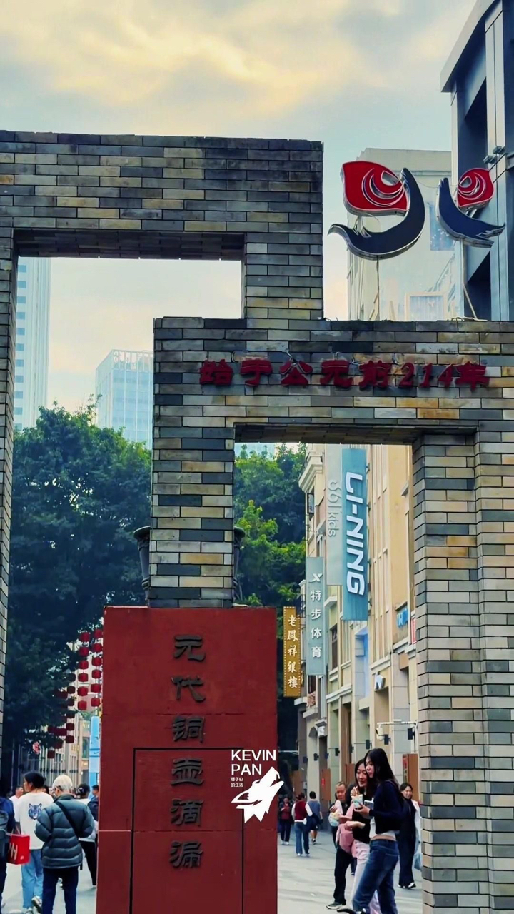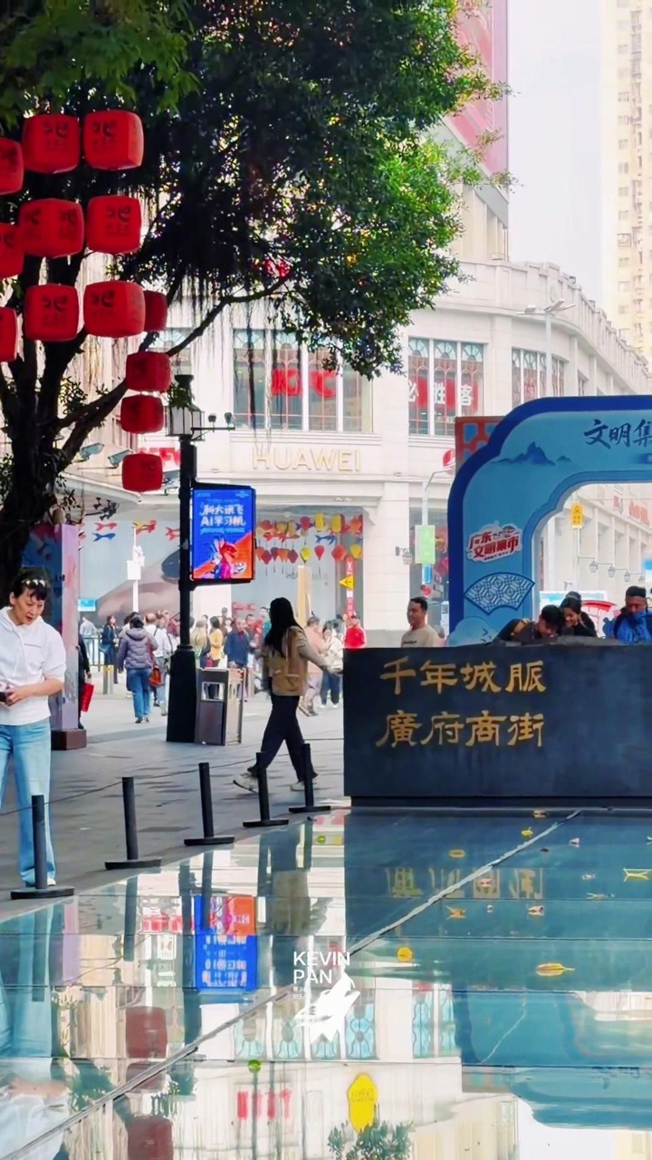 青石板上,宋元明的足迹与铜壶滴漏的光阴悄然重叠。红灯笼轻摇,倒映在玻璃地面,如梦似幻。砖拱门下,老凤祥的银光、华为的流线、李宁的跃动,与潮餐香气、皮具箱轮声、足疗暖意交织。古街文化墙静默,木质书法立体生香,绿植攀缘,城市脉搏在此温柔跳动。