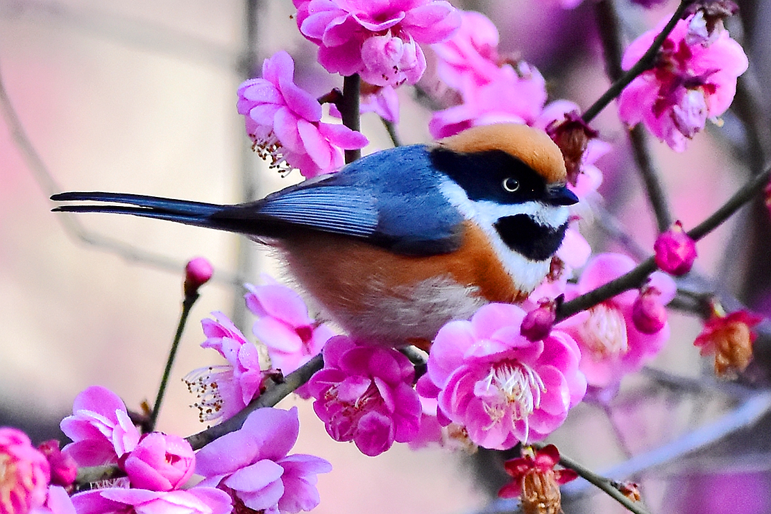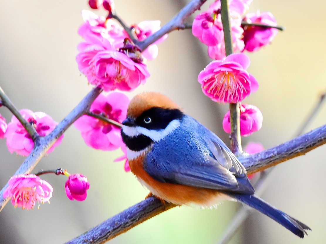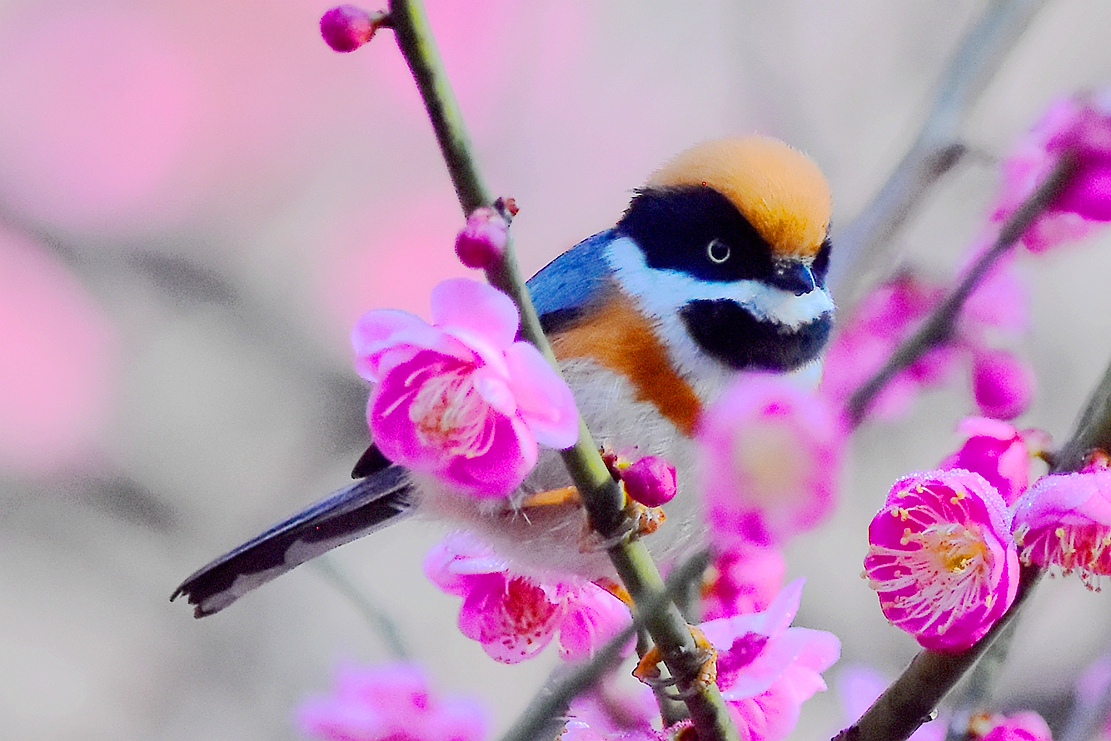 “小老虎”爱梅花——到植物园和西溪湿地赏梅,遇到漂亮的红头长尾山雀,此鸟颇有名气,色彩漂亮,两眼炯炯有神,被称为“小老虎”;它和叉尾太阳鸟被称为我国最小的鸟。很喜欢这“小老虎”,但难拍,它不停地在花中跳跃、欢叫,异常活泼可爱,给静静的梅园增添了生气。好不容易拍了一组。摄于2月11日、21日。