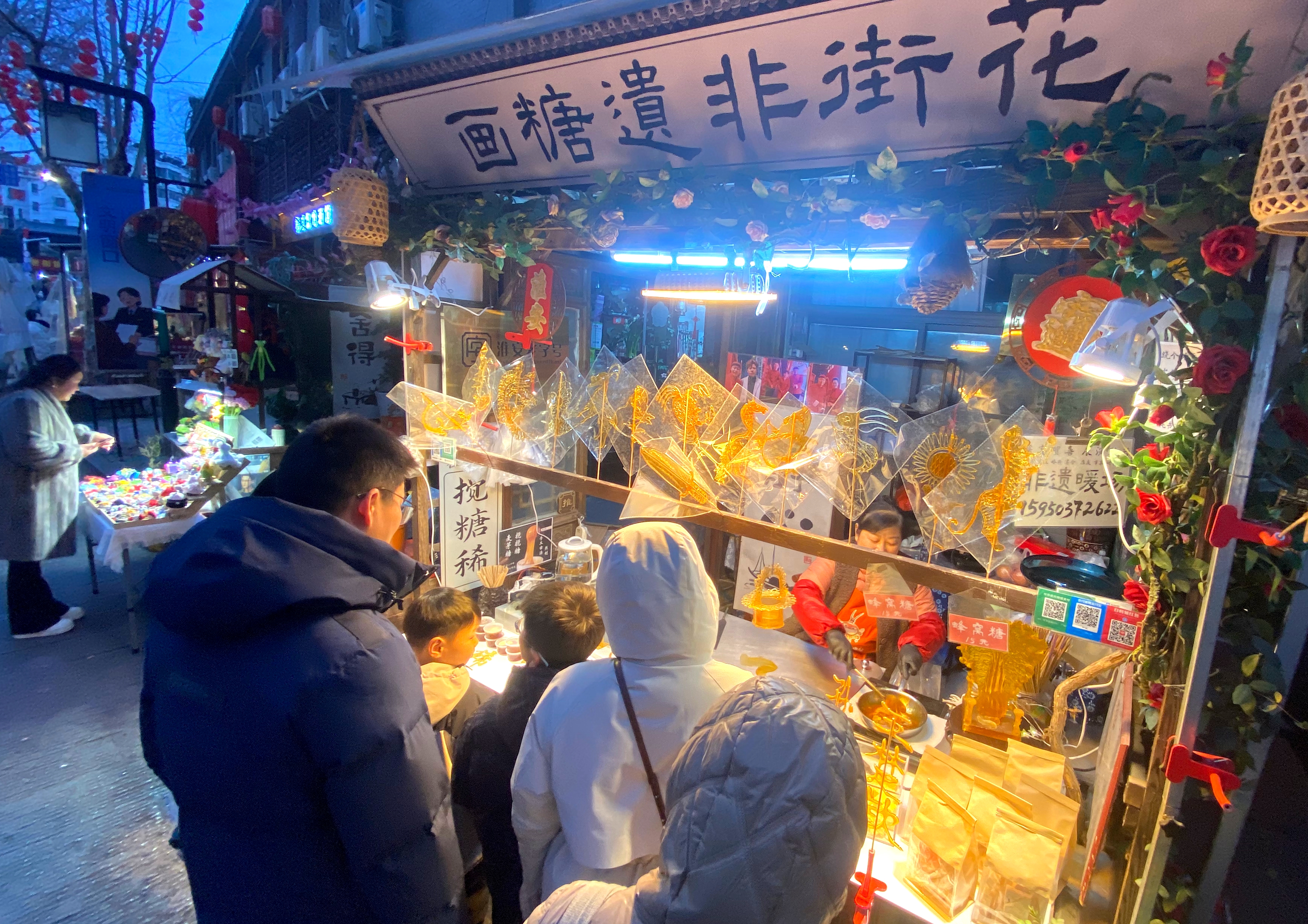 +从《北上》到花街:在运河边的“宝藏”里,读懂中国年的“北上”故事 2025 年 3 月,根据《人民文学》主编徐则臣获茅盾文学奖的同名长篇小说改编的电视剧《北上》,在中央电视台综合频道热播。该剧故事发生地 —— 江苏淮安的花街随之 “出圈” 爆红。作为京杭大运河边的宝藏旅游地,这里既承载着厚重的运河历史,更在新春时节,将中国年的 “烟火气” 展现得淋漓尽致。 2026年2月23日正月初七,潮客江苏华歌走进花街,仿佛穿越了时空。两旁的古树挂满了红彤彤的灯笼,与灰瓦青砖墙相映成趣,年味儿扑面而来。这里没有千篇一律的商业喧嚣,只有最地道的市井生活。 在来来往往川流不息的游客群中,我看到了最动人的中国故事。一位女艺人正在摊位前专注地制作糖画,那不仅是非遗技艺的传承,更是对美好生活的祈愿。摊位前挂着的全家福照片,记录着岁月的温情,也诉说着中国人对“团圆”的执着。 街头巷尾,人们手里拿着刚出炉的油端子,脸上溢出满足的笑容。这种简单的快乐,正是中国年最真实的底色。 对于“歪果仁”来说,看中国年,不仅仅是看热闹,更是看文化。花街的红灯笼、糖画的甜蜜、油端子的香气,都是读懂中国的一把钥匙。在这里,历史与现代交融,传统与生活碰撞,这就是中国年,这就是中国味。 #歪果仁看中国#
