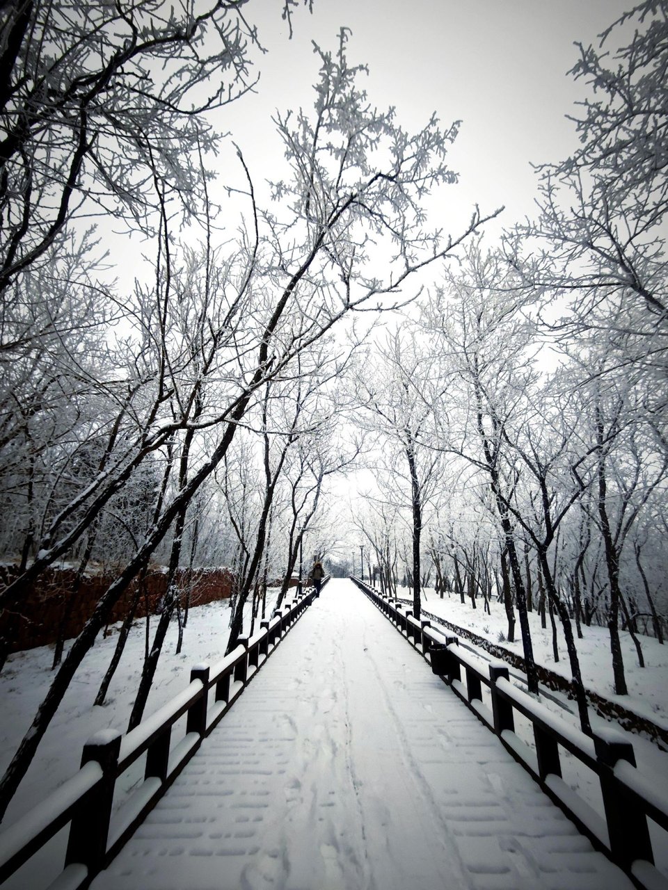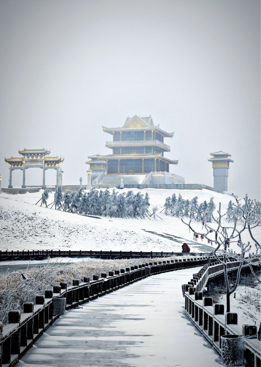 雪覆飞檐,霜凝枯枝,晨光初透,雾霭轻浮。雪中园林静默如诗,石桥、长廊、亭台皆披素裳,木栏旁足迹浅浅,延伸向 mist 深处。雪原辽阔,古塔孑立,屋脊的金边在微光里低语千年。这一刻,自然与时间同框,静谧不是无声,是万物屏息,等风来翻一页冬的册页。
