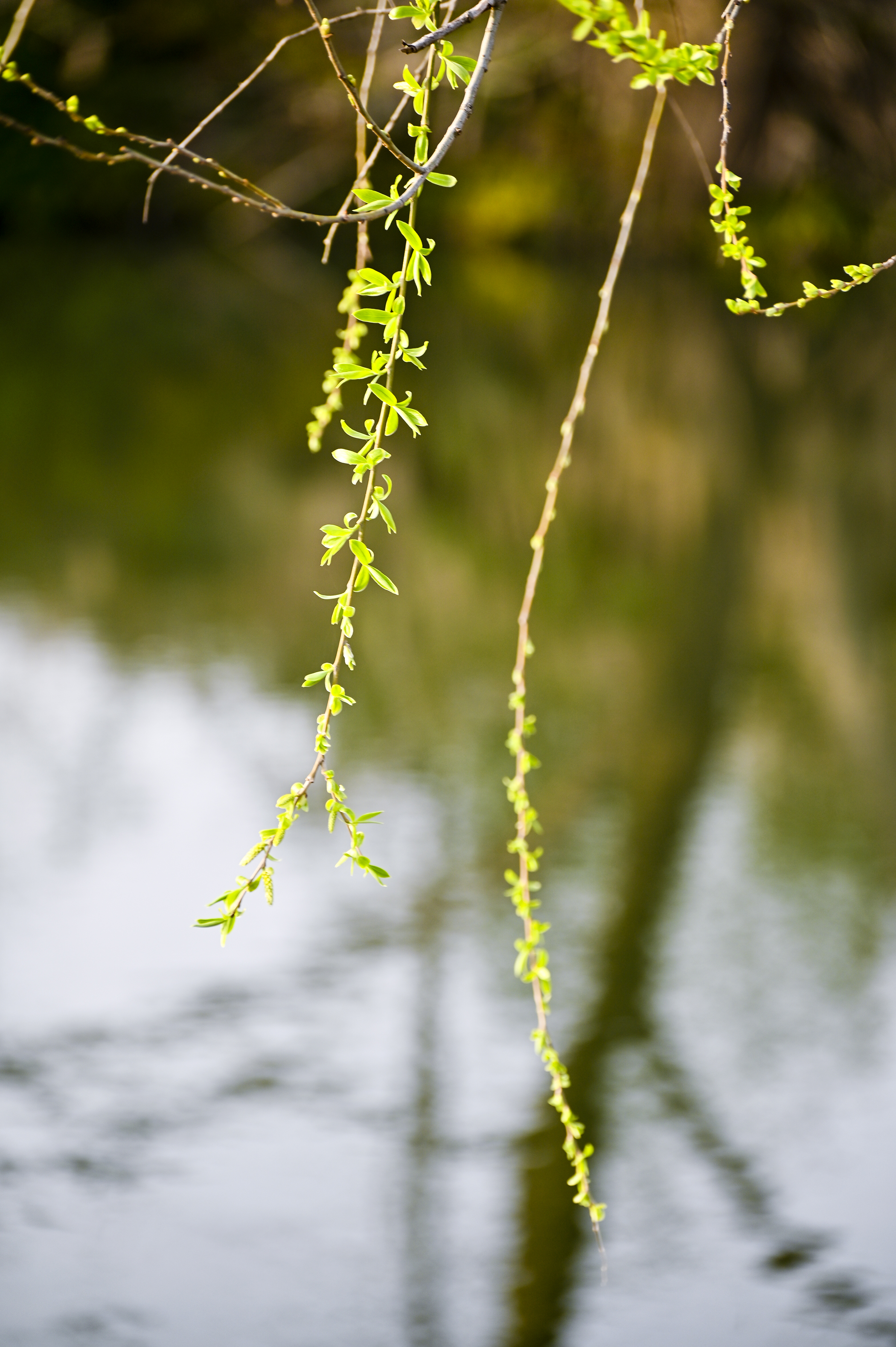 垂柳蘸水写春,嫩叶轻摇,倒影碎成一池碧玉,一叶别冬令。