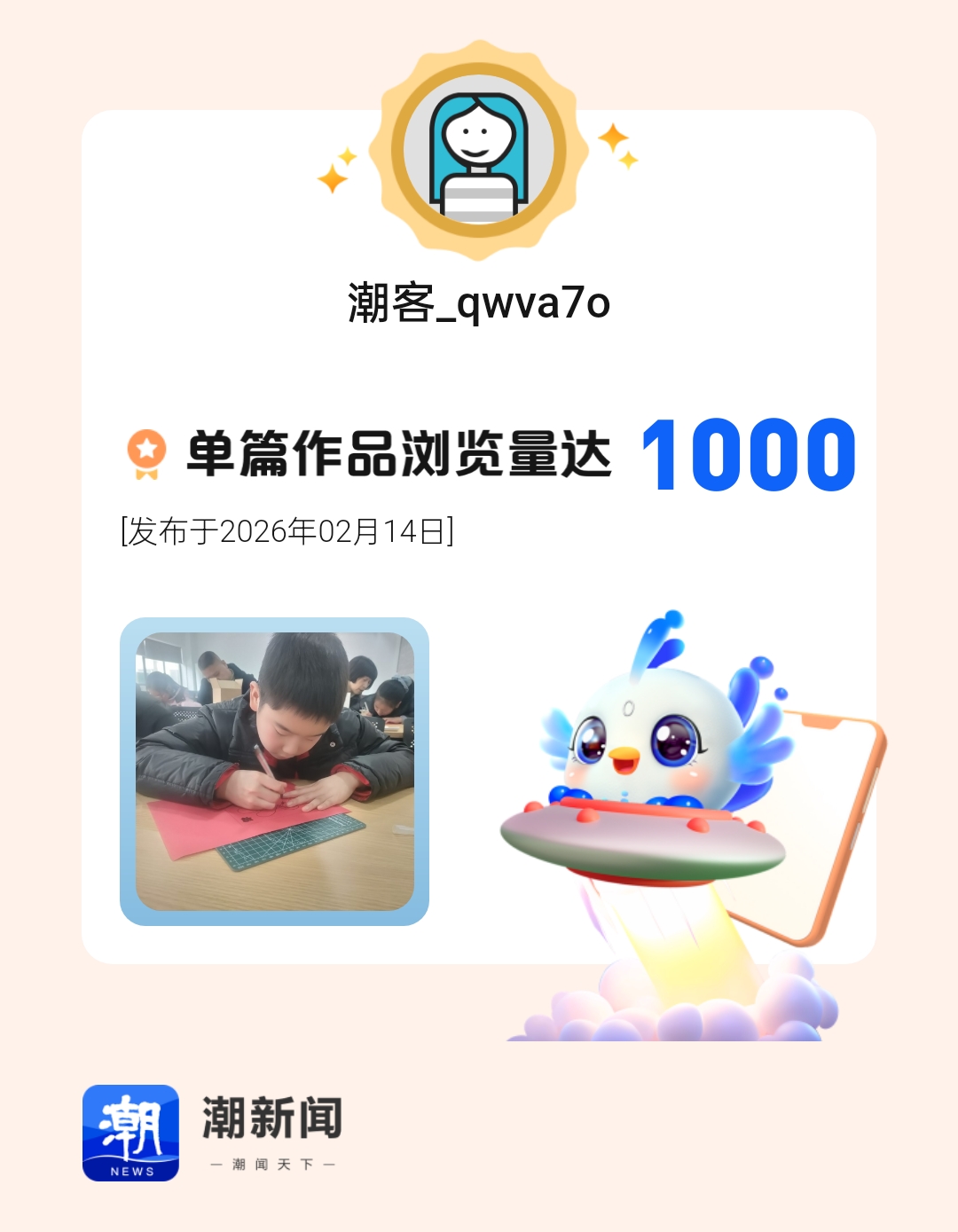 我在潮新闻发表的单篇作品浏览量达到1000!