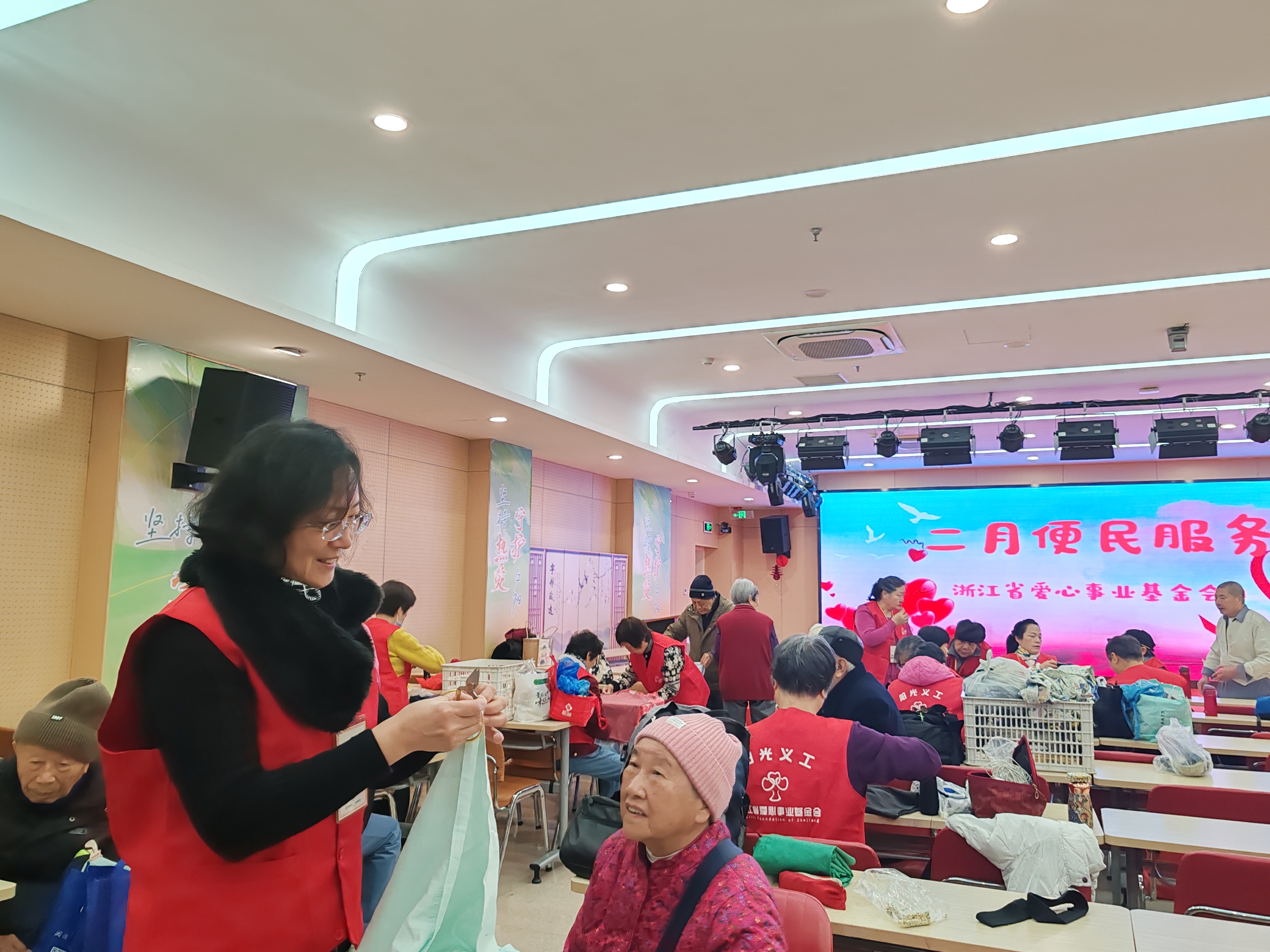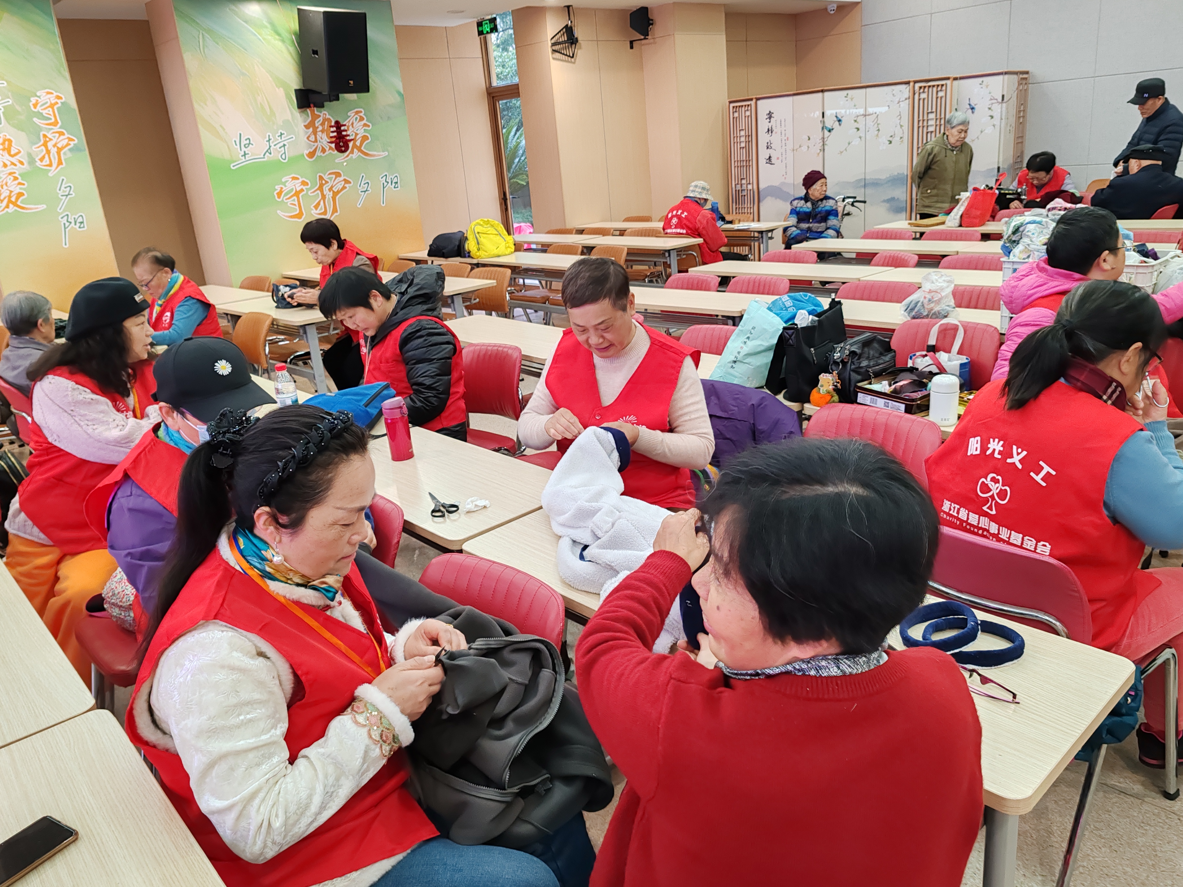 浙江省爱心事业基金会的阳光义工们身着红马甲闪亮在杭州市社会福利中心!缝纫机哒哒响,修伞手巧心更暖~敬老便民日,镜头里全是温柔光✨