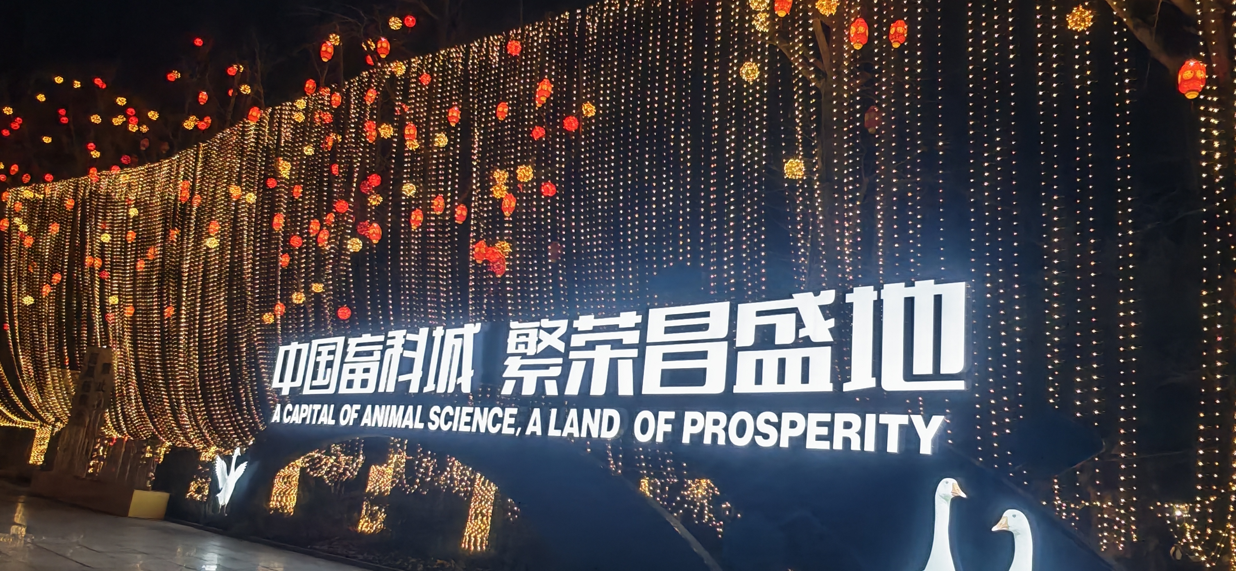 荣昌新春夜,红灯金带映照畜牧科城,灯火里流淌着繁荣昌盛的温柔光影。