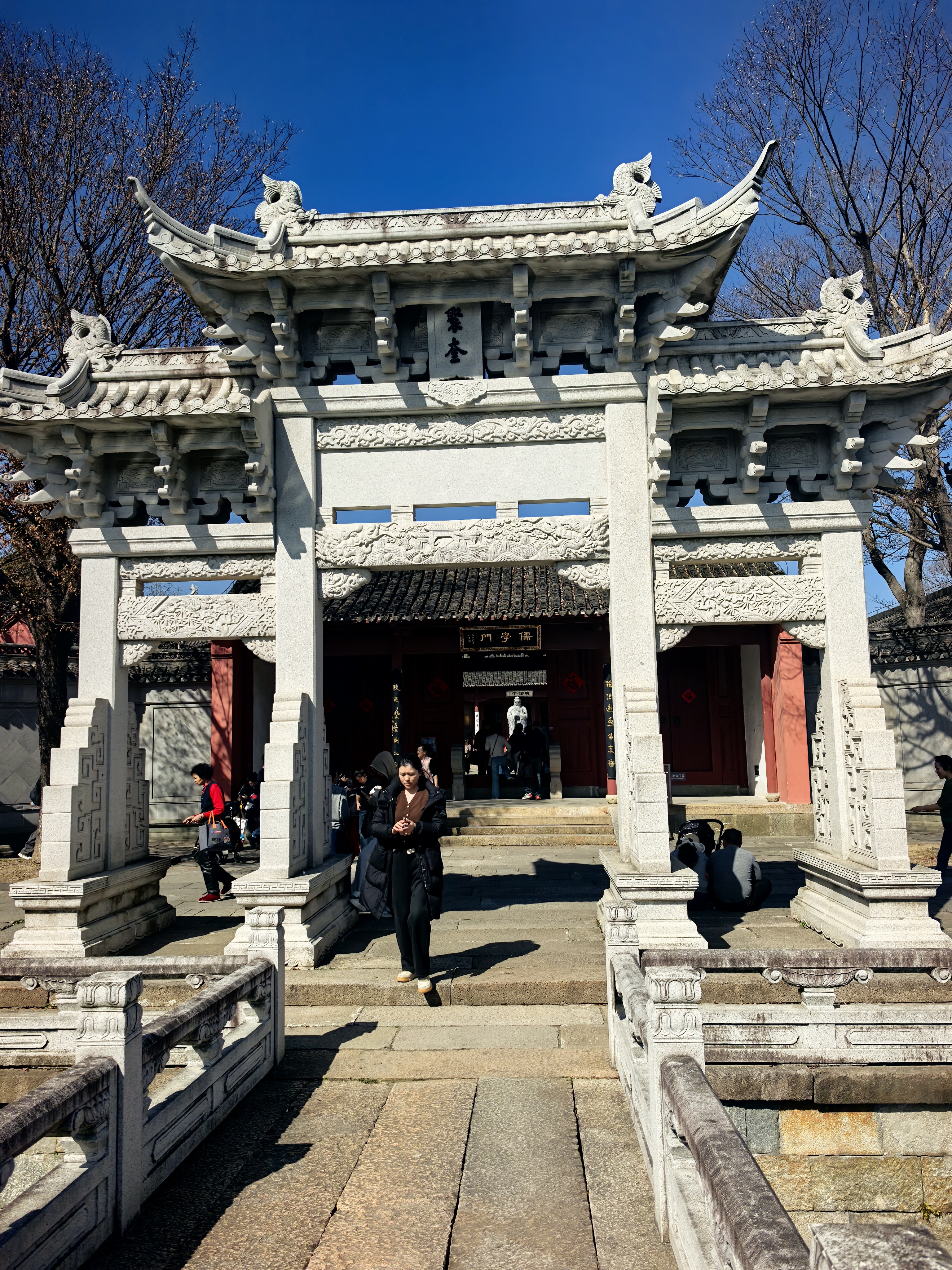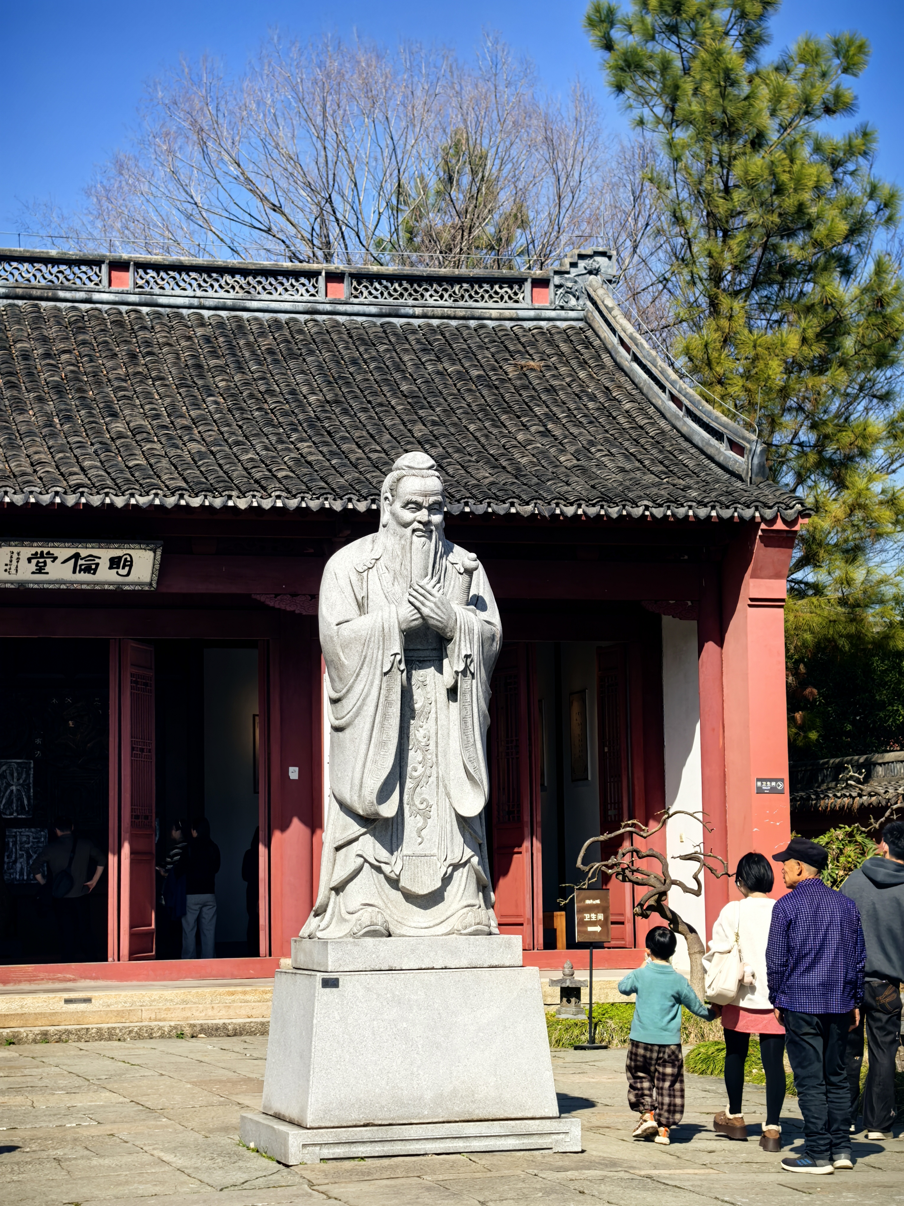 第一次游盐官孔庙学宫,被它的规模惊憾叹了。这座始建于北宋的地方孔庙,距今已有近千年历史,是江南地区保存最完好、规模最大的孔庙之一。它不仅是祭祀孔子的圣地,更是古代海宁州学所在地,承载着“庙学合一”的深厚文化传统。 早春的红梅与棂星门相映,不仅是一幅画卷,更象征着儒家文化如梅花般坚韧高洁、历久弥香。孔庙内的“青云楼”曾是学子登科及第前祈福之所,而“明伦堂”则是讲学传道的核心。 自古以来,盐官因运河与海潮交汇,商贾云集、文风鼎盛,孔庙学宫不仅唤醒学子的求学之心,也见证了无数盐官子弟“修身齐家治国平天下”的理想。