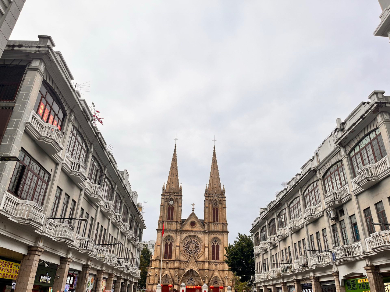 石室圣心,在一德路静默伫立。双塔刺破南国天光,玫瑰窗滤下百年柔色;花岗岩的冷峻与岭南骑楼的温润低语。快门轻响,是哥特魂魄与东方烟火的温柔相认。