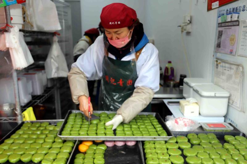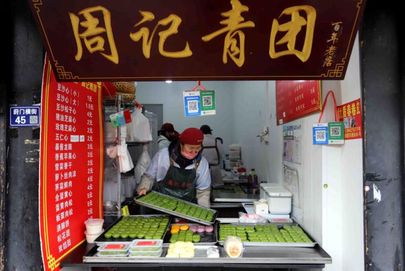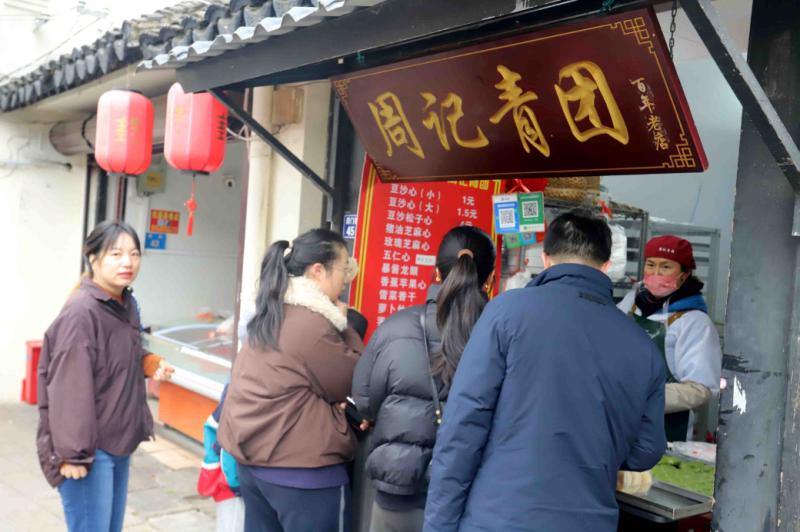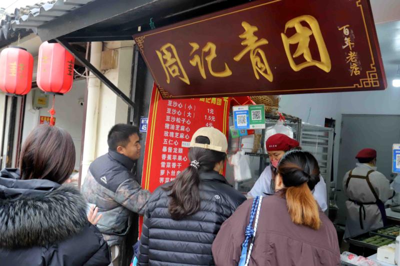 苏州葑门横街45号“周记青团”:老味道里的传承与匠心 (记者 王建康 摄影报道) 2026年2月25日,苏州市姑苏区葑门横街45号的“周记青团”店前,前来购买青团的市民与游客络绎不绝。随着春季来临,这家百年老店开启青团售卖季,现做现蒸现卖的时令美味,凭借地道口感与健康品质,成为街头一道温暖的“春日风景线”。 记者看到,上午店门口的操作台前,店员正将一颗颗油绿莹润的青团码放整齐。豆沙、芝麻、蛋黄肉松……十余种馅料的青团错落摆放,惹得路过的行人频频驻足。“听说这家青团是横街最早做的,今天特意来尝尝!”从外地赶来的游客陈女士捧着刚买的几盒青团,脸上满是期待。 据了解,周记青团是葑门横街第一家,周老伯顾阿姨可谓是横街青团的创始人,横街青团从开始只有豆沙馅到现在10多种馅料,都是周老伯顾阿姨的创作。现在周老伯顾阿姨已是白发苍苍,他们的女儿为不断传承而接管周记青团,她说不为赚多少钱,只为那份传承。 “周记青团”的好口碑,源于对品质的执着。所有馅料均经严格选材、精心自制,无任何添加剂,这份“健康为先”的坚守,让不少老顾客一吃就是十几年。“我从小吃到大,现在带孙子来买,还是熟悉的味道。”家住附近的王阿姨笑着说。没有铺天盖地的广告,口口相传的赞誉便是最好的“活招牌”,正如周女士所言:“客人吃得放心、觉得好吃,就是对我们最大的肯定。”春日里的“周记青团”,正以匠心为笔,续写着老味道与新传承的故事。