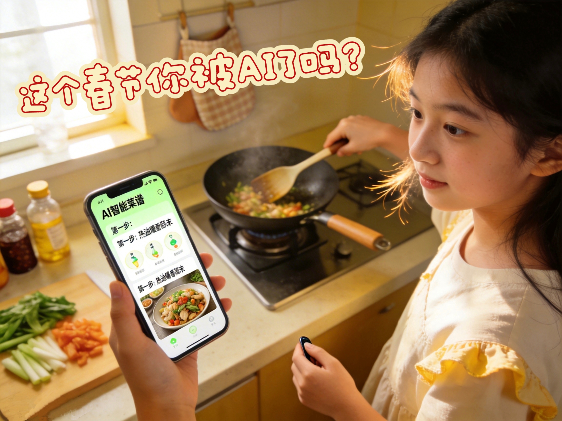 #这个春节你被AI了吗?#这个春节我好像被AI给“承包”了! 这边让AI设计年夜饭的菜谱,那边家族群来消息,“姐,快去下载千问,跟AI对话抢免单卡。”随机还奉上了操作步骤。这边正用AI设计图片准备在潮新闻发帖,那边朗读群伙伴滴滴我“湫,风语阁春晚,搞起来啊!”我即刻明白这是让我出节目的意思啊!可是出什么节目呢,看着眼前的AI画面,脑子里突然灵光一现,今年不朗诵了,就用AI替我去给大家表演吧!于是乎两个AI小视频节目应运而生!除夕夜看春晚时,本来想抽空给朋友们发几个短信,身边的娘亲突然拽我衣袖“快给我也下一个豆包,我要领红包。”“你知道豆包是啥么?”“谁不知道呀?AI啊!”看着娘亲得意的小表情,我也是……还没等我给她操作完,那边弟弟就指着电视屏幕喊上了,“快快快,马上开始了啊,扫码扫码!豆包豆包红包来了!”如果说之前还有人不了解AI,我相信除夕夜的一台春晚,就会让全国的男女老少都知道了AI是啥。最逗的是拜年短信。往年总得绞尽脑汁想点不一样的,今年直接让AI帮忙写,结果发现好几个朋友的祝福语都“撞款”了——原来大家的“枪手”是同一个老师。 这个春节,AI确实像家里多了个勤快又见多识广的帮手,它让很多事变简单了,但它也在提醒我,方便归方便,有些东西终究替代不了。比如亲手写春联时毛笔的滞涩感,比如家人围坐时那些突然冒出来的、可能并不“正确”却充满烟火气的家常话。AI能帮我们完成很多事,但它无法替代那份为在乎的人花费时间与心思的郑重。我更珍惜那些无法被算法计算的时刻——比如放下手机,真实地碰个杯,说一句:“过年好,祝我们新年都好!”