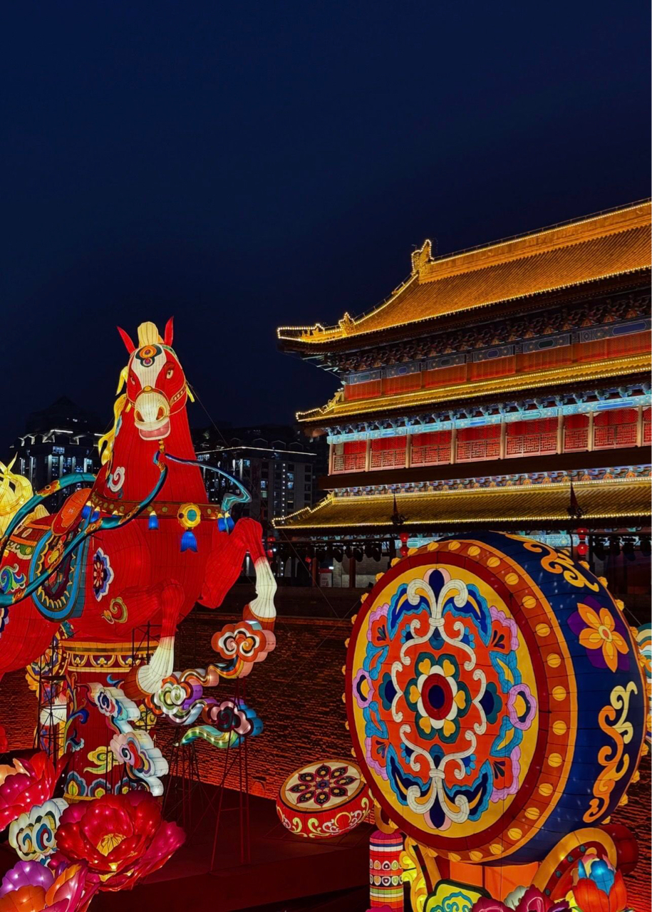 #年味淡了吗?# 暮色浸染永宁门,千年城垣披上流光锦缎。红灯笼如星子垂落枝头,马形灯奔跃于唐风砖石间,鼓声隐在光影里。镜头框住这半城灯火、半城诗,恍然跌入长安未眠的梦。