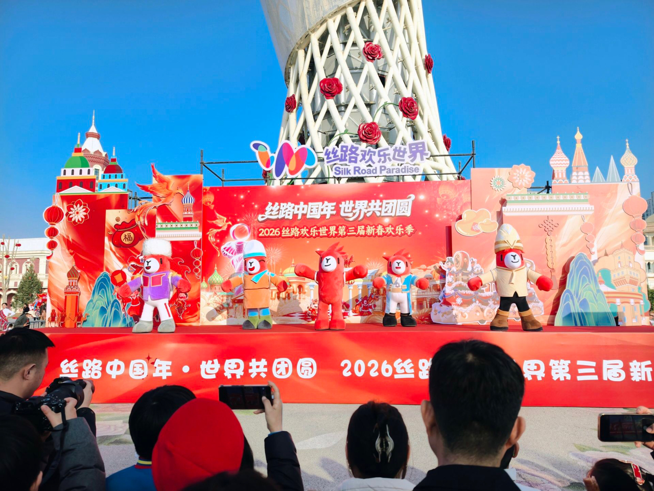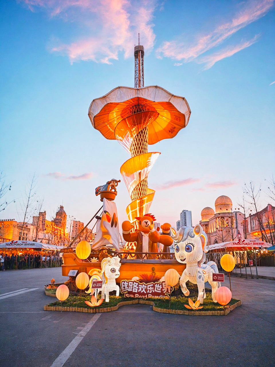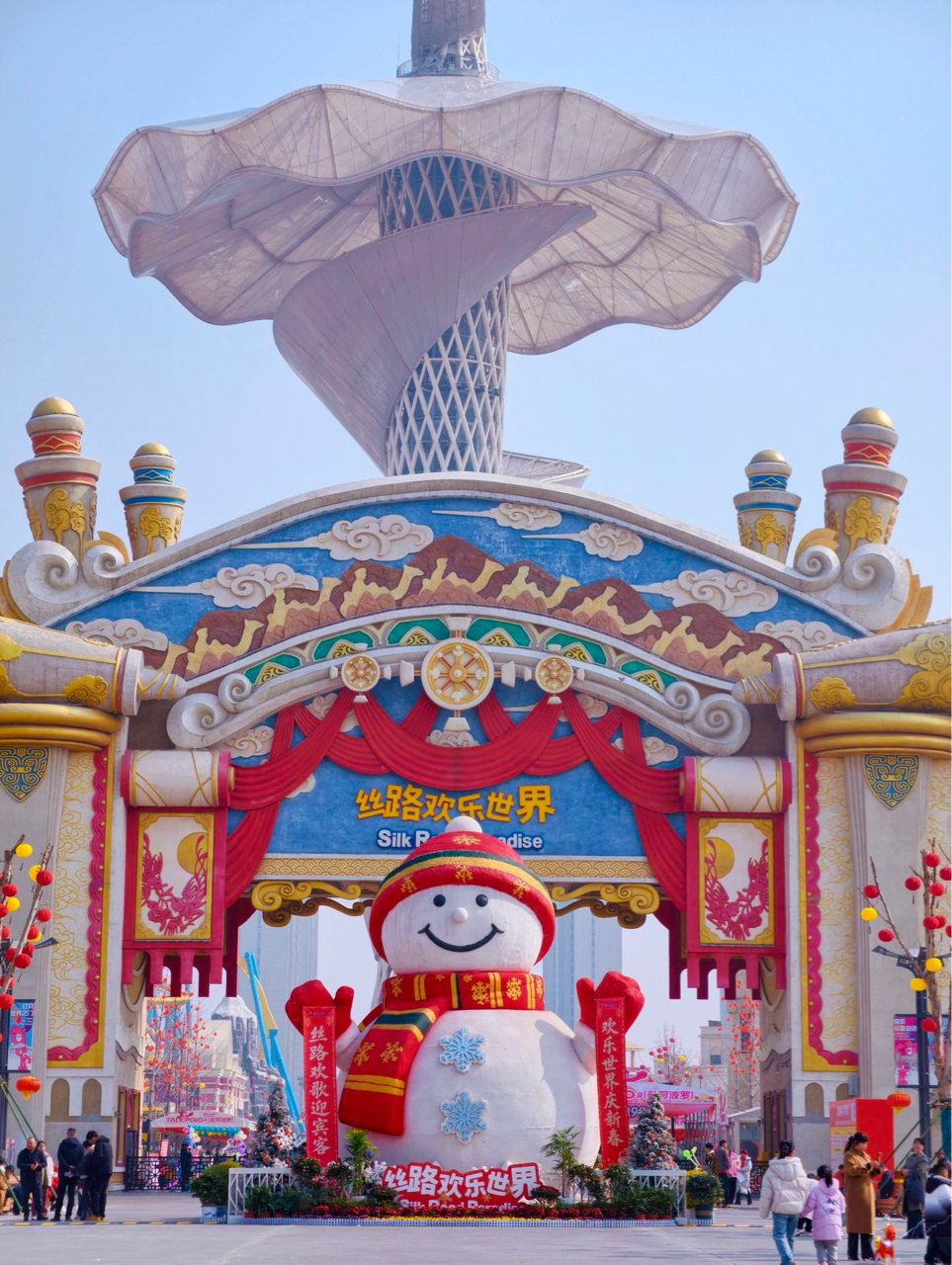 #年味淡了吗?# 丝路欢腾处,雪落灯明时。广州的冬夜,丝路欢乐世界如梦初醒——塔楼披彩,伞形结构下花灯流转,雪人憨笑,卡通吉祥物跃然眼前。舞台光影交织,观众举起手机,定格这中国年与世界共团圆的刹那。文化在砖石间呼吸,年味于灯火里生长。