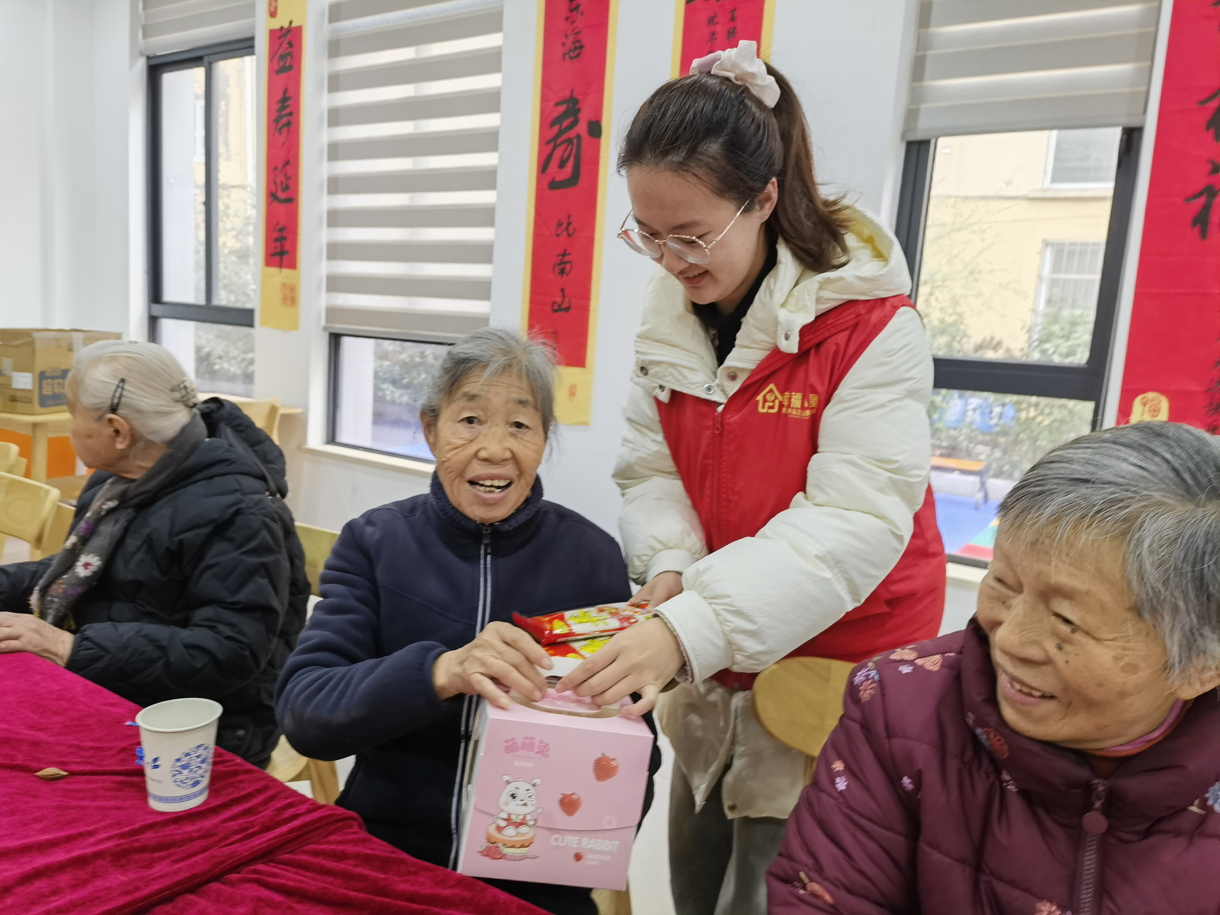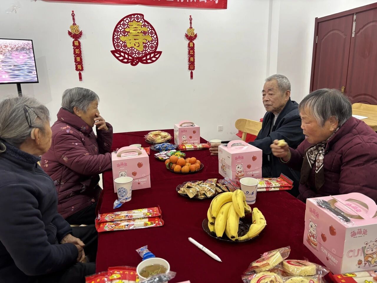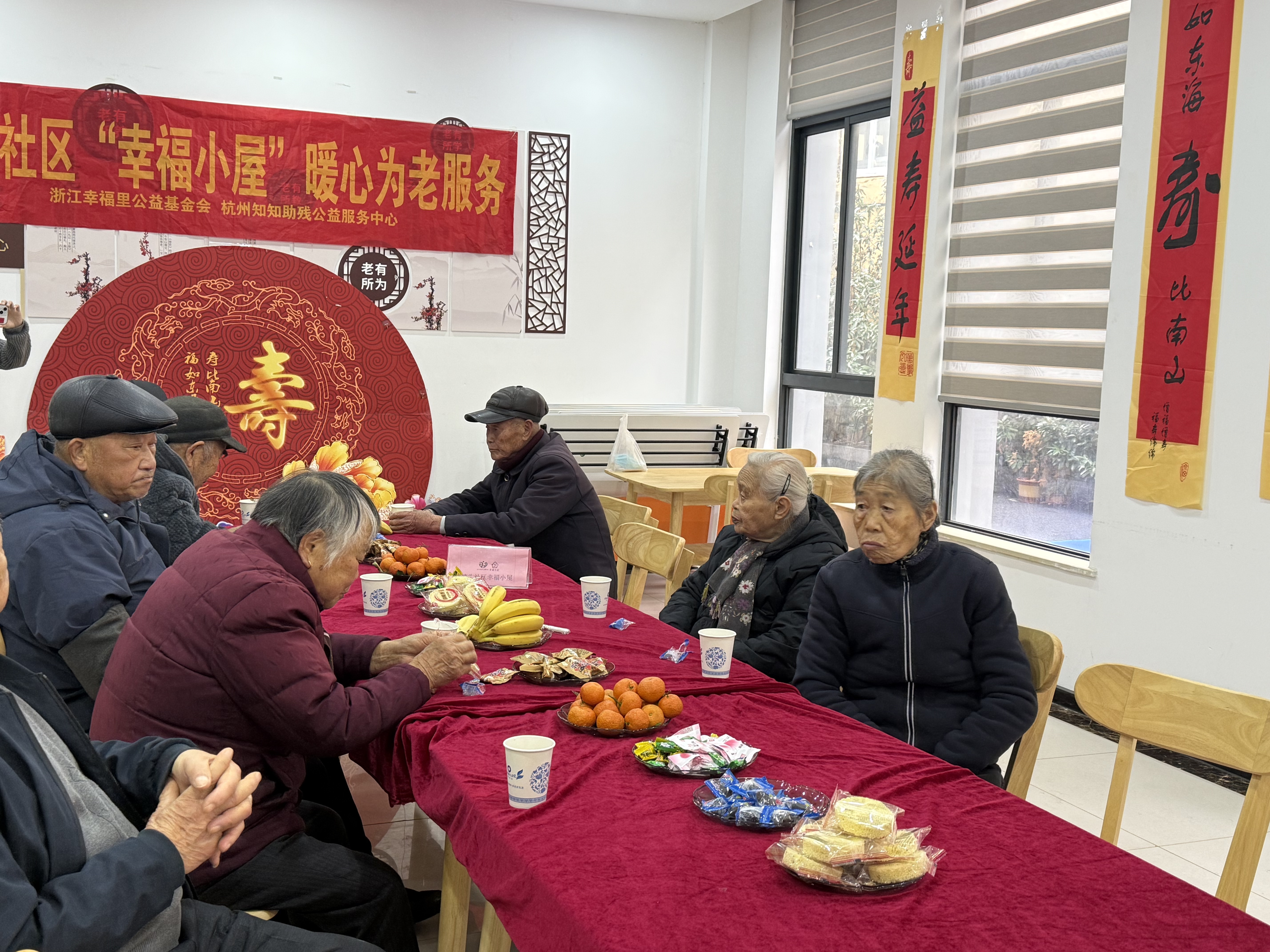 马踏新程,喜气盈门。2月27日上午瓜沥镇塘头社区幸福小屋暖意融融,为庆贺老人生辰、弘扬尊老美德,开展“庆贺生辰,爱满社区”长者集体生日会。清晨,志愿者们就忙碌起来。他们各司其职,分工合作。有的铺毯子,轻轻排开;有的专注摆盘倒茶,有条不紊;有的装饰房间,喜庆吉祥。岁月沉香,福寿绵长。在这暖意融融的日子里,我们怀着满心敬意与欢喜,相聚一堂,共贺长者寿诞。时光温柔以待,岁月安然静好,愿这份温暖与祝福,常伴身旁,岁岁年年。恭祝长者:福如东海,寿比南山;身心康健,喜乐无忧。愿往后日子,三餐有味,四季安然,闲观岁月长,静享天伦乐,平安顺遂,岁岁安康。———塘头社区幸福小屋项目由浙江幸福里公益基金会出资,杭州知知助残公益服务中心主办,截止2026年2月服务已开展6年,受到辖区内老人和家属的一致认可。