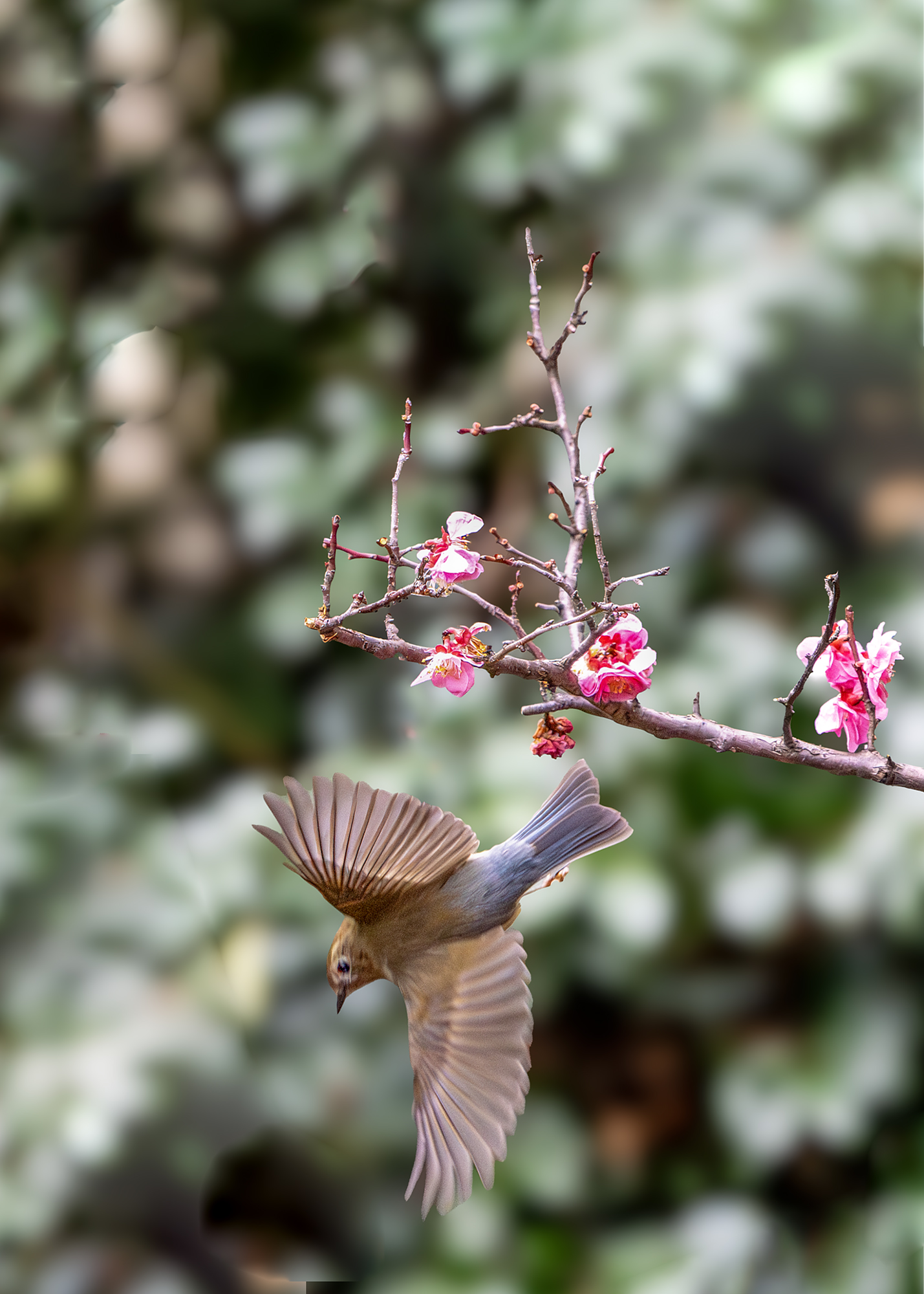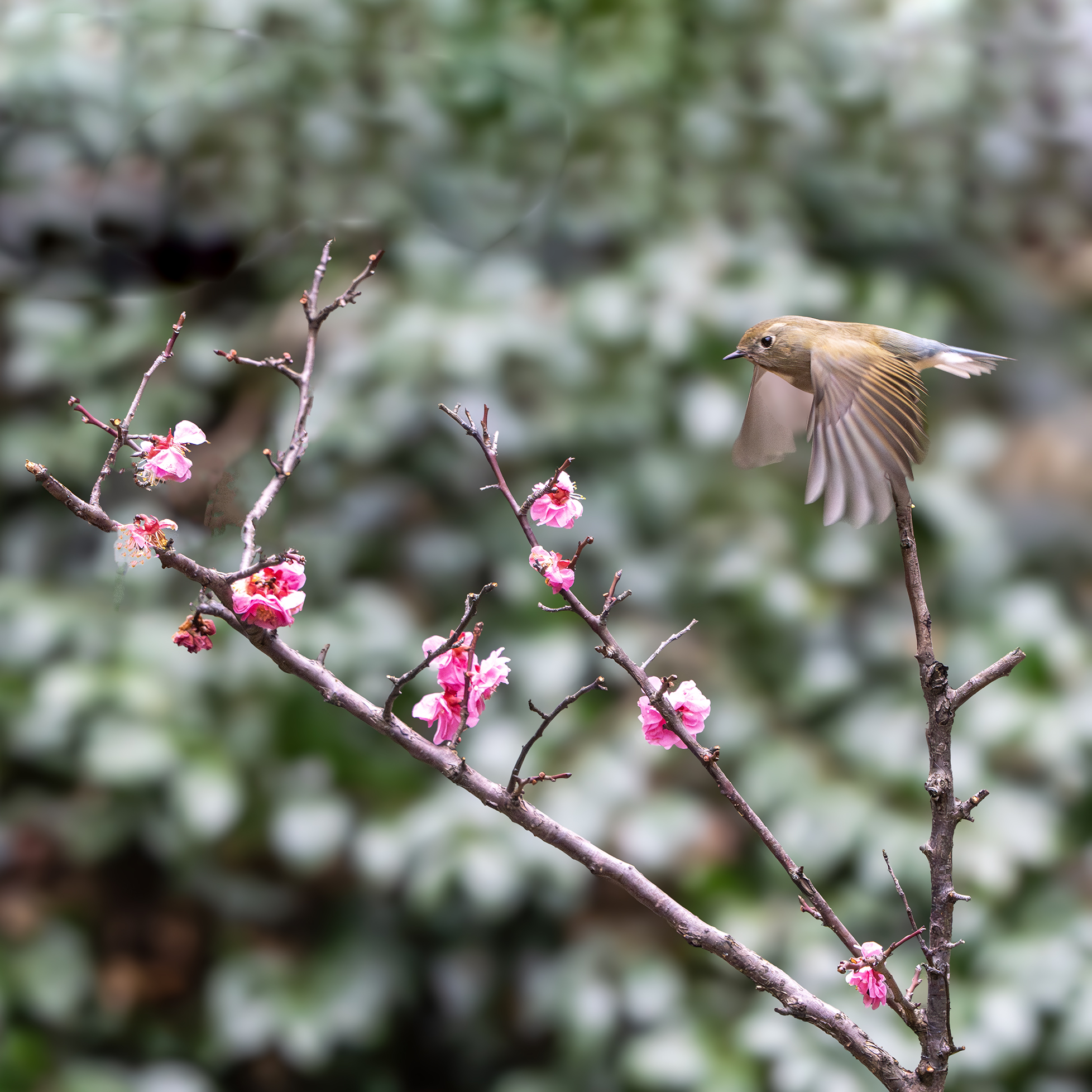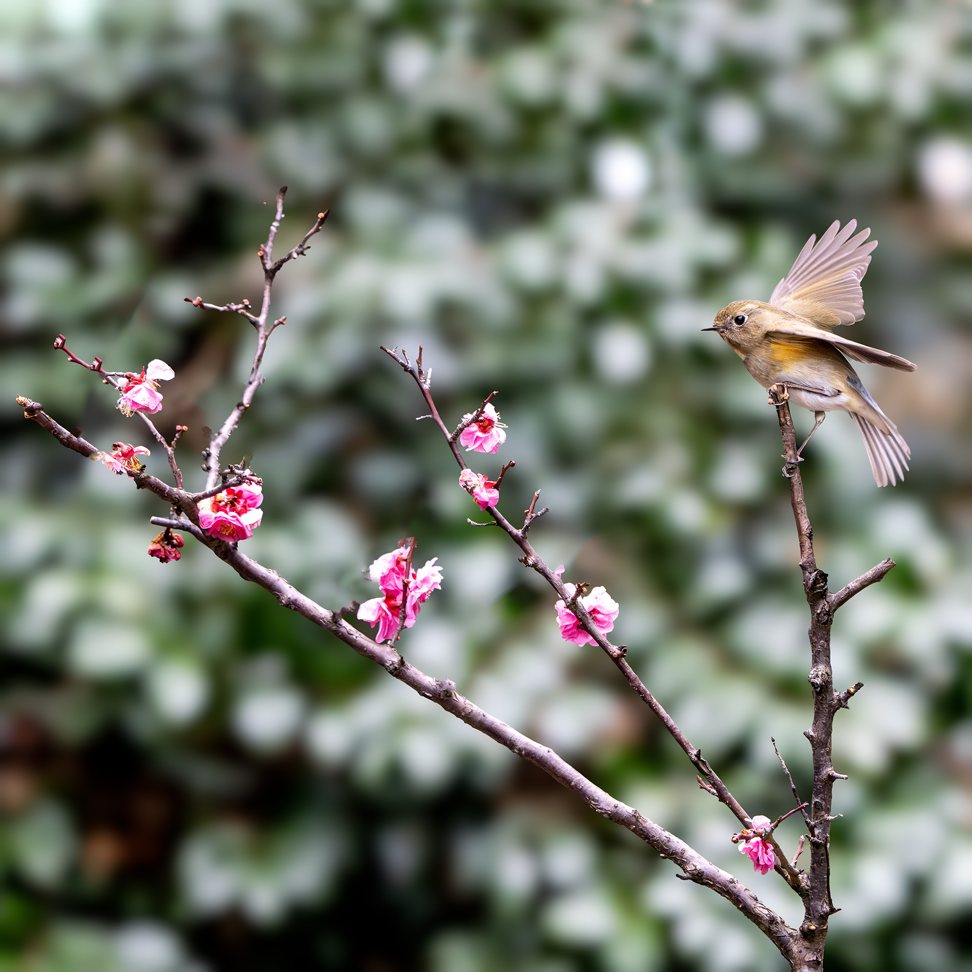 梅花上的黄腹树莺(拍于杭州半山公园)