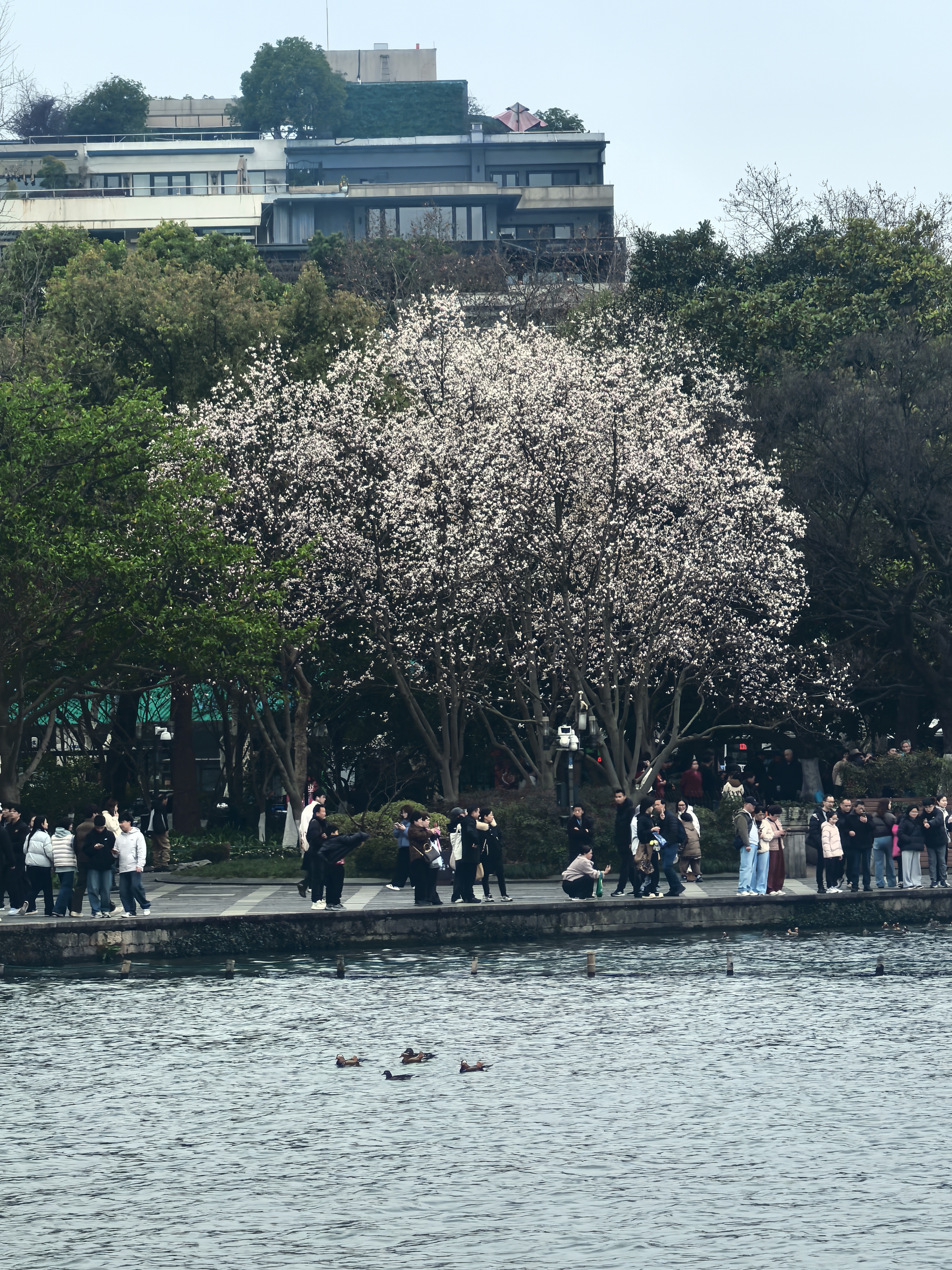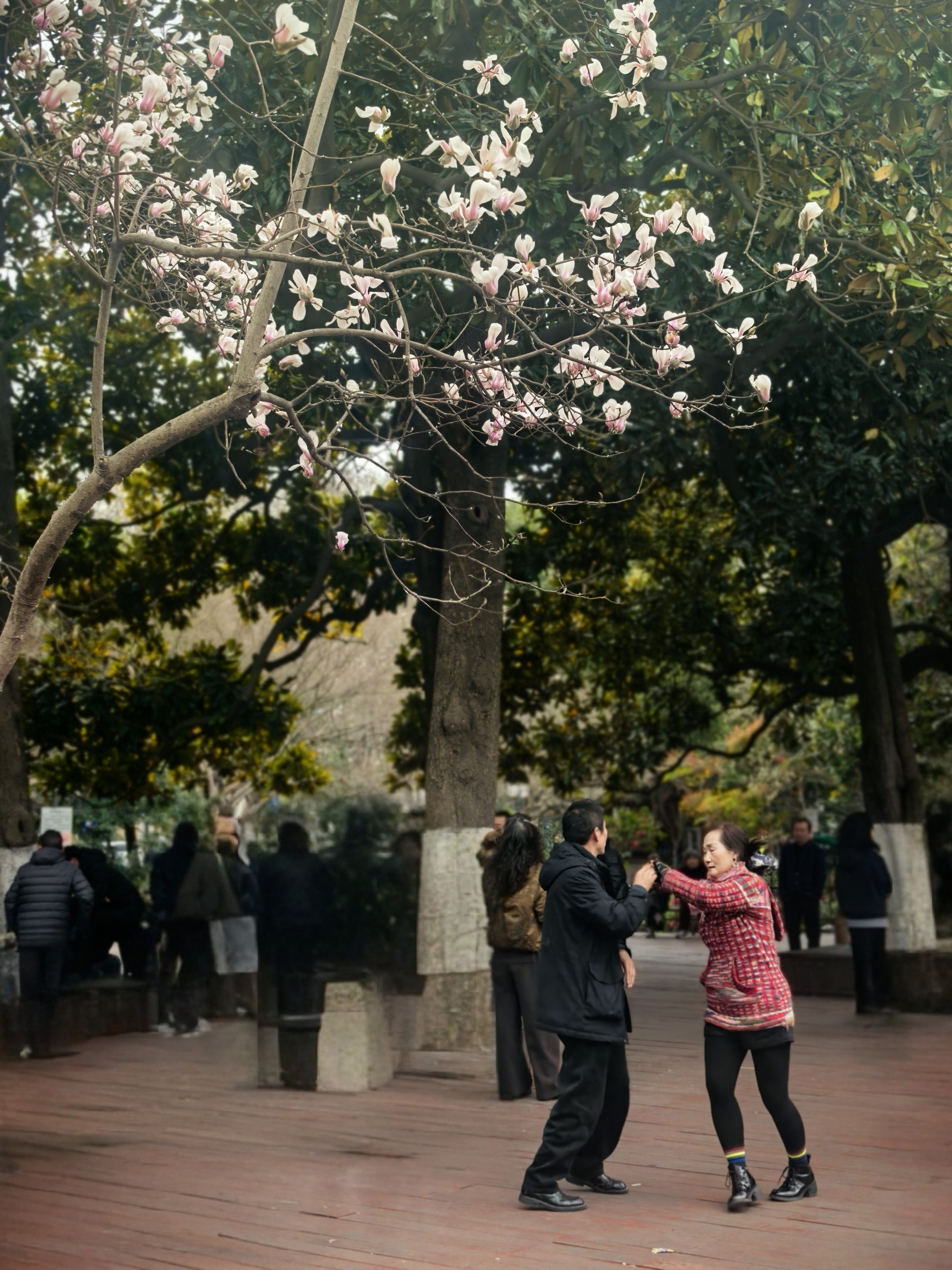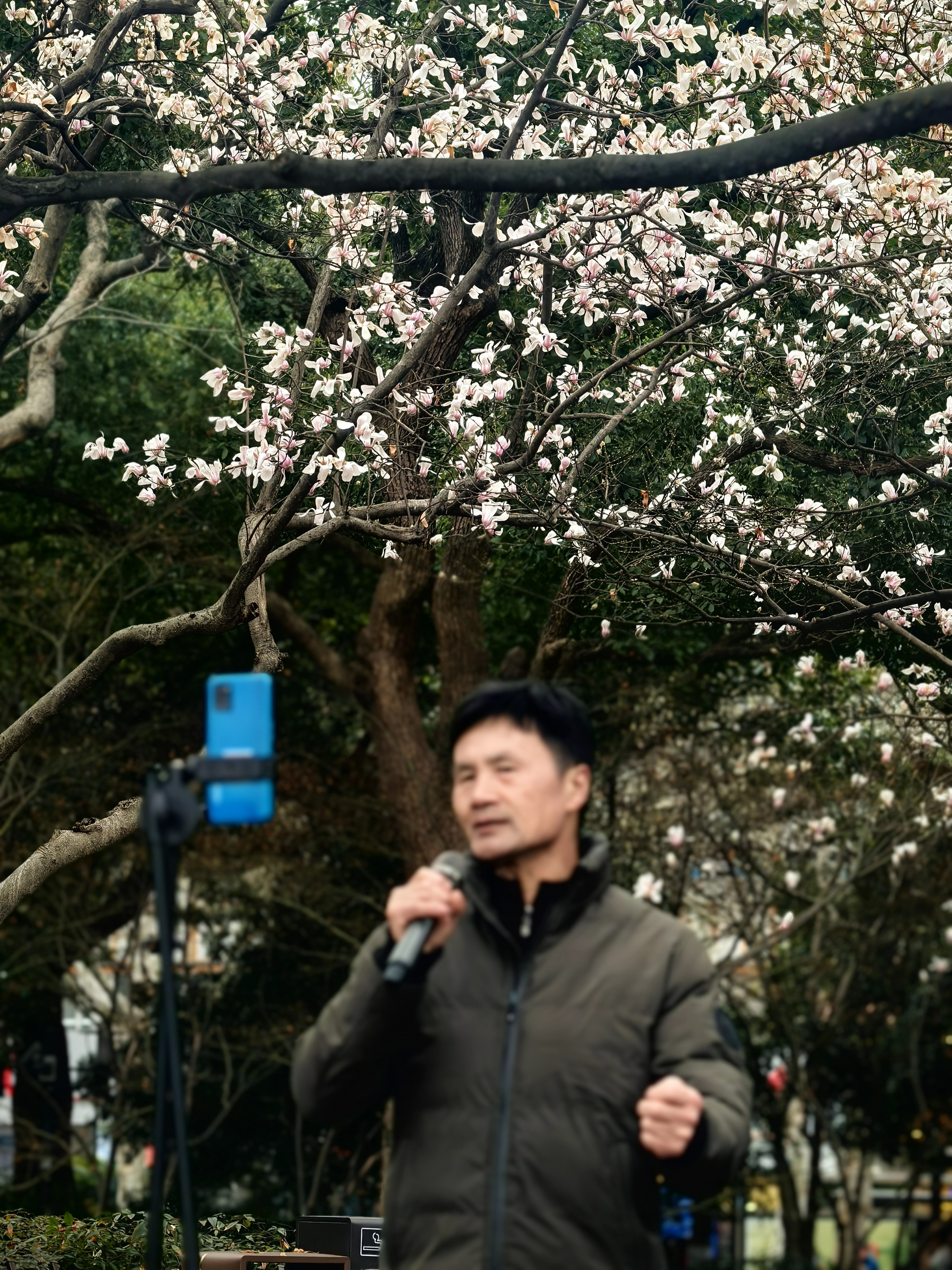 今年杭城的玉兰,似乎按捺不住早春的躁动,比往年更早地盛放了。在西湖湖滨一公园,那一树树繁花如云似雪,粉白的花瓣在微风中轻轻摇曳,仿佛在向过往的行人招手。 花影婆娑的树下,市民或引吭高歌,或翩翩起舞,歌声与笑声交织在一起。平时这里就是音乐活动沙龙,因为有了一树的玉兰花,更增添了几分热闹与春天的生机。 杭城的春天,有花的烂漫,有人的欢愉。在玉兰花开的时候,迈开脚步迎接早春去!