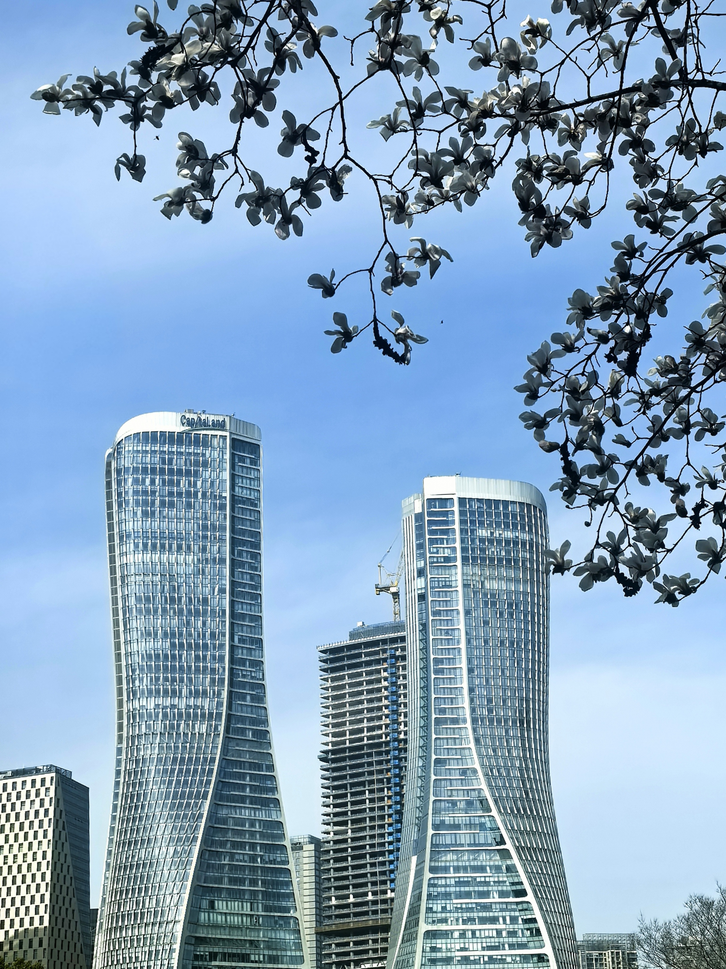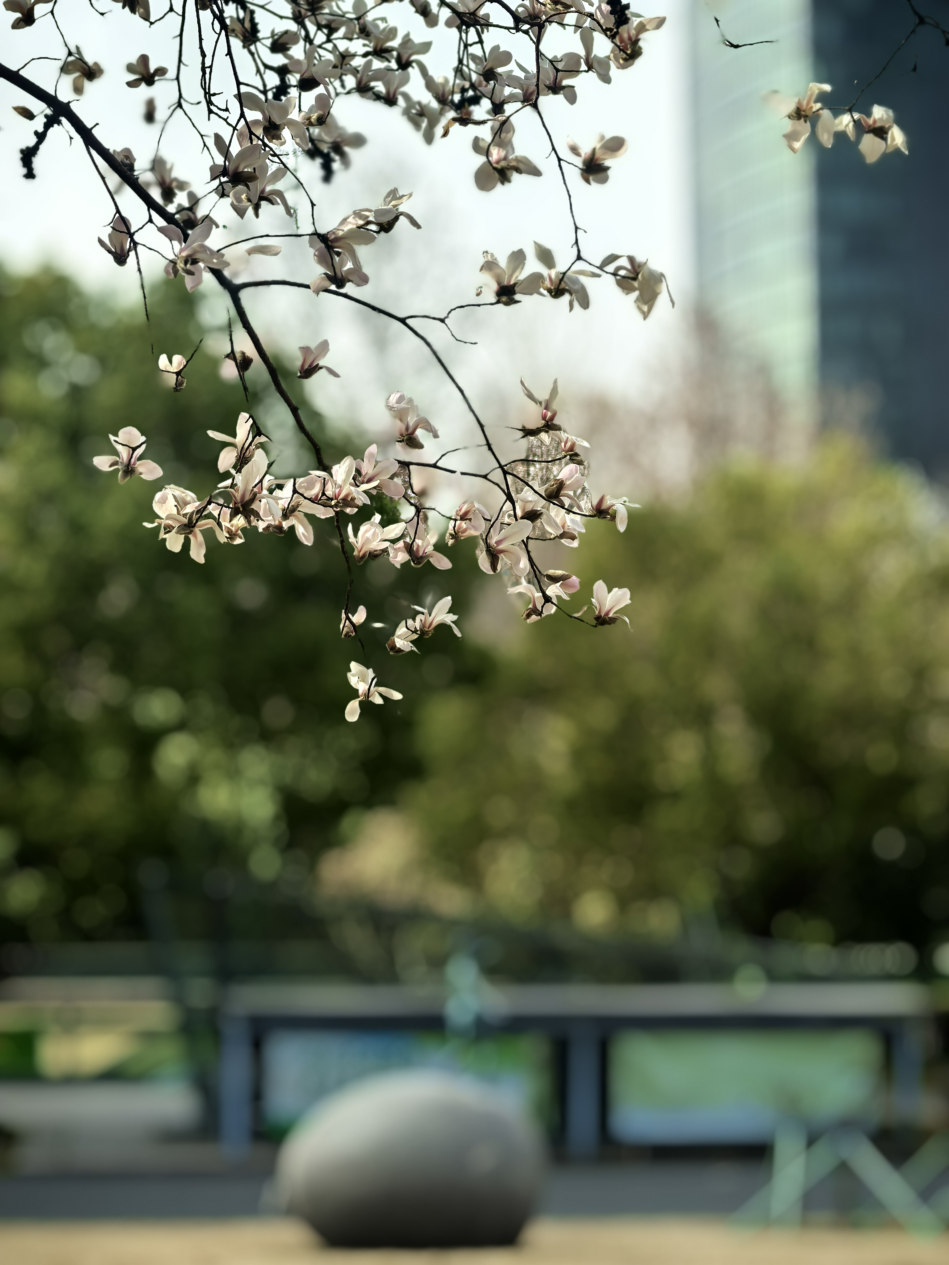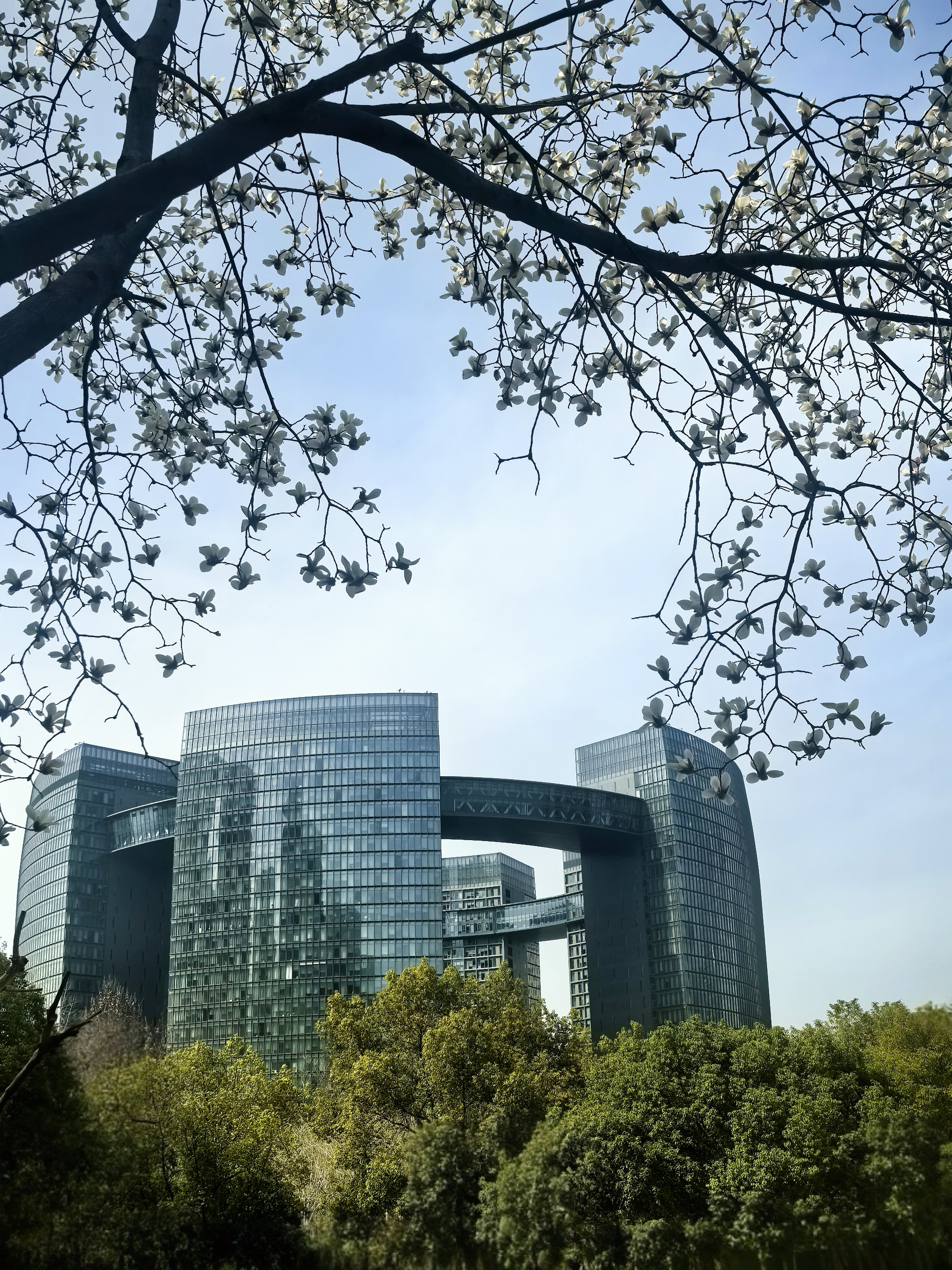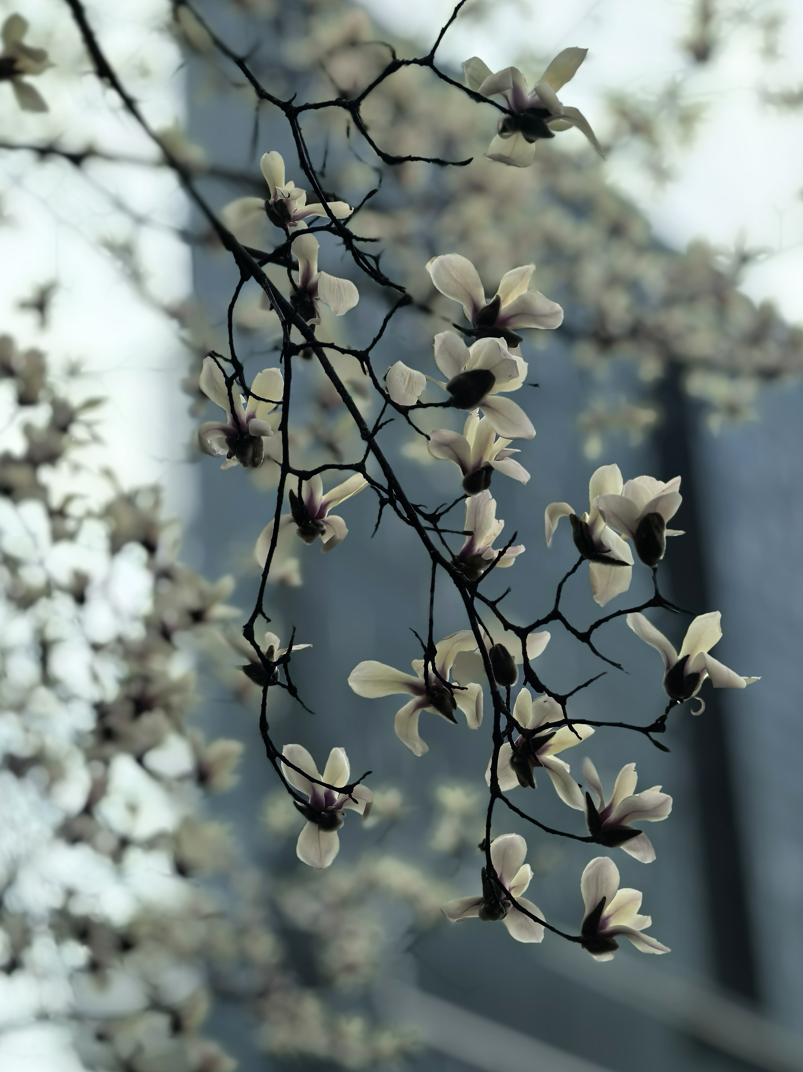市民广场的早春,是玉兰的赛场。那几株白玉兰,仿佛一夜之间被谁悄悄点亮,硕大的花朵在枝头炸开,洁白如玉,透着一种不染尘埃的清冷。它们高擎在光秃秃的枝桠上,像是一盏盏悬在空中的灯,照亮了广场上匆匆的脚步。 而在它们身旁,红玉兰却还羞涩着。那些紫红色的花苞,紧紧裹着,像一个个攥紧的小拳头,蓄势待发。它们在风中微微颤动,仿佛在积蓄力量,准备在某个不经意的瞬间,轰然绽放出满树的热烈。 一白一红,一开一合,就这样并肩立在广场的春风里。背景是那几座流线型的现代高楼,玻璃幕墙映着蓝天,与这满树的繁花相映成趣。 近几年的此时,我都会来此拍摄玉兰初开的景象。驻足仰头凝望,这一刻,城市的钢筋水泥似乎也柔软了下来,被这满树的春意温柔地包裹着。