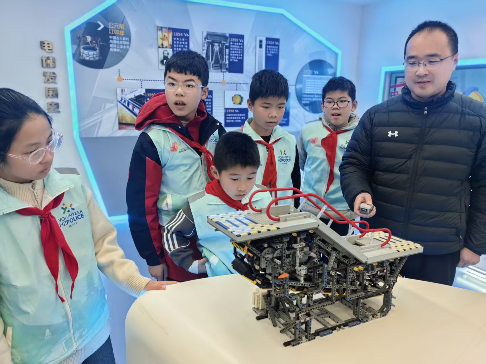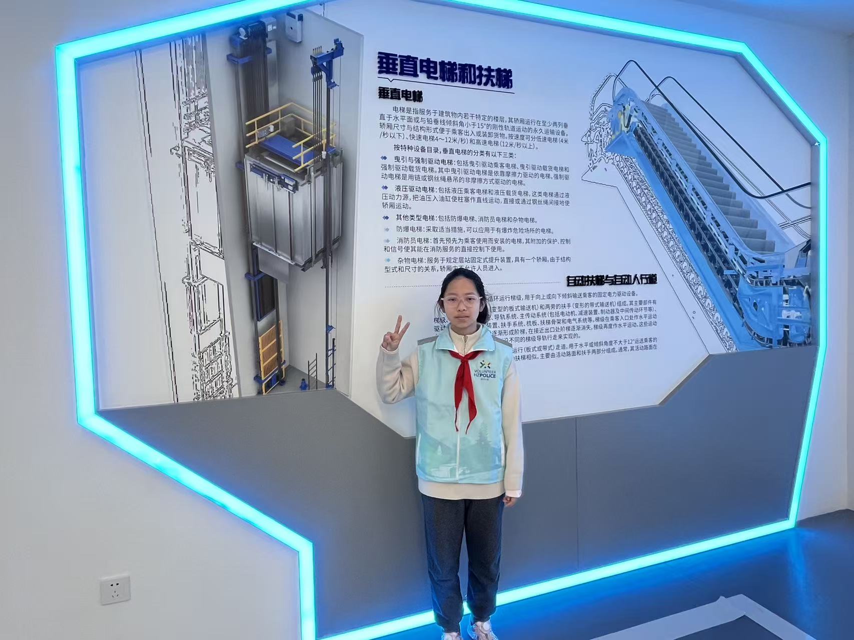 今天我来到“特种设备检验科学研究院”参加了一个关于电梯安全的小课堂。在活动中老师不仅教了我们,关于生活常用的自动扶梯和垂直电梯的安全使用。还给我们举了许多使用电梯时的危险行为,和如何在电梯中避免与被困在电梯中如何找人救援。让我印象最深刻的则是互动环节,我带着一个3D眼镜了解了电梯内部的各个部件。生活安全,你我同行。让我们避开生活中电梯使用的错误行为,让我们的生活更加精彩。