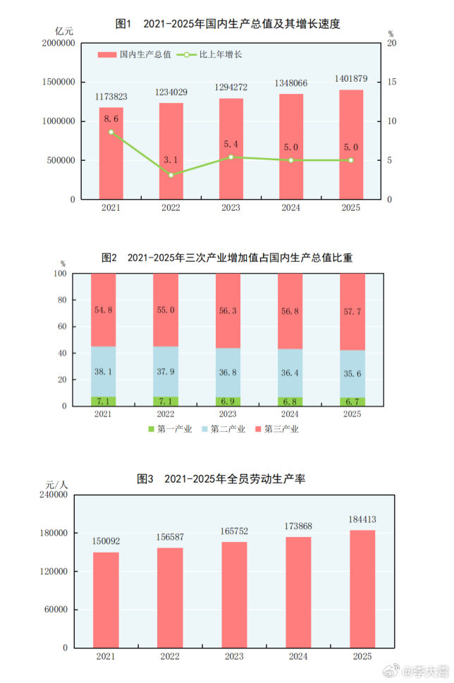 2月28日,国家统计局发布《中华人民共和国2025年国民经济和社会发展统计公报》。初步核算,全年国内生产总值比上年增长5.0%。在国际环境复杂多变的背景下,中国仍以5%的增速贡献全球约30%的经济增长,继续扮演“世界增长引擎”,实属不易。