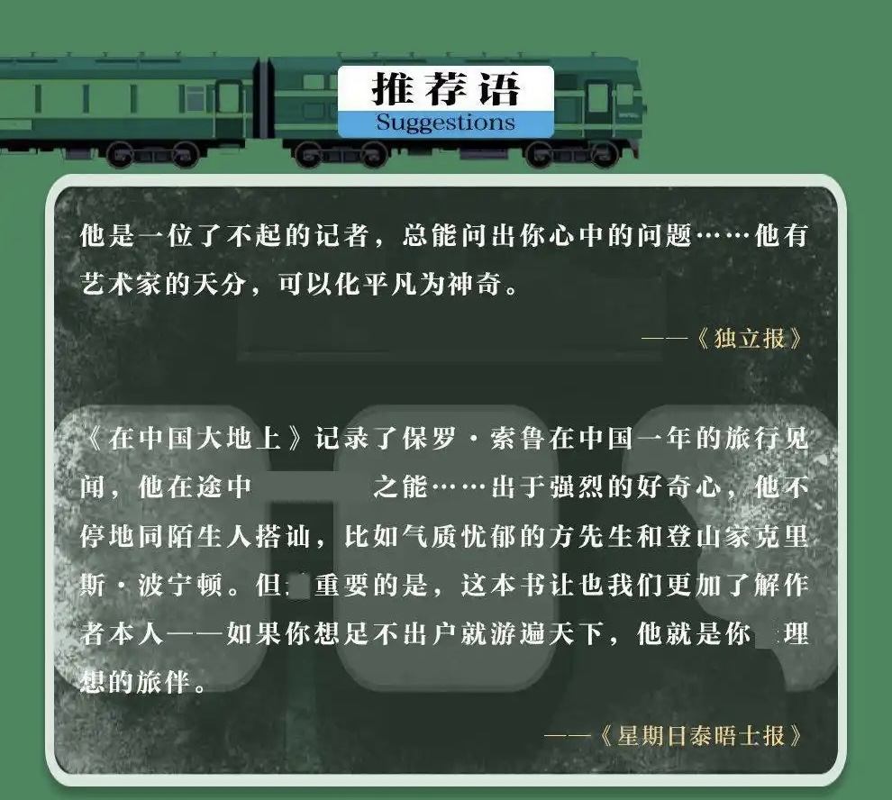保罗·索鲁的《在中国大地上:搭火车旅行记》是潮新闻第十二期阅读活动我第十本读的书,其是“现代旅行文学教父”的代表作,也是一部饱受争议的时代记录。1986年,这位“毒舌”作家耗时一年,搭乘近40趟火车穿越中国,用犀利又幽默的笔触,为改革开放初期的中国留下了一份既让人发笑、又引人深思的珍贵记录 。 📖 作品简介:铁轨上的“中国切片” 这本书英文原名 Riding the Iron Rooster: By Train Through China,其中"Iron Rooster"是当时外国人给中国火车起的绰号 。它不是普通的游记,而是一部通过22条火车路线串联起的80年代中国社会“切片”。 · 创作背景:1986年,正值改革开放初期,中国社会处于剧烈的转型与阵痛之中,对世界既敞开大门又充满警惕 。 · 旅行路线:从大同、北京、上海到广州,再深入吐鲁番、朗乡、拉萨等地,足迹遍布大江南北 。 · 对话对象:英语角青年、商贩、知识分子、服务员……通过与普通人的闲聊,捕捉时代的声音 。 🔍 内容鉴赏:一位“刻薄鬼”眼中的80年代 这本书的魅力,在于索鲁那近乎“冒犯”的真实。他不是来赞美的,而是来观察和记录的。 1. 笔触:犀利幽默,甚至"毒舌" 索鲁的文字从不温情脉脉。他不会刻意融入,而是保持距离冷眼旁观 。看到大兴土木的北京,他直言:“中国的历史层层交叠,现在总要抹掉过去的某些东西”。对于当时随处可见的吐痰和痰盂,他也毫不留情地记录,但这种“吐槽”今天读来却成了独特的历史细节 。 2. 视角:冷静理智,极具洞察力 在看似琐碎的记录下,藏着深刻的洞察。他看到广州的忙碌,感叹“连一丝的随意或者偶然也见不到”。他通过观察人们的焦虑,解读当时的社会心理:“他们仿佛装着明天一切都会结束,所以伸出两只手拼命地抓”。甚至在火车上读《金瓶梅》时,他也能引申出对中国社会“禁忌”与“真实”的思考 。 3. 内核:对自然的挚爱与对“人”的关注 别被他表面的刻薄骗了,他的文字充满温度。他热爱漓江山水、喜欢青岛的悠闲 。旅程最后在拉萨,他被深深打动:“旅行结束时,我感到自己即将踏上的不是归途,而是一条离别之路”。这一刻,所有吐槽都化作了深情。 🏆 作品评价:为何它值得一读再读? 学术研究和读者反馈都指向了这本书的独特价值。 · 文学价值:被誉为“现代旅行文学教父”典范,荣获托马斯·库克旅行文学奖 。写法是绵密的“流水账”,充满现场“颗粒感”。 · 历史价值:如同为80年代中国拍的一部“文字纪录片”,记录了物价、工资、城市规划的原始状态,是珍贵的社会化石 。 · 思想价值:不同于何伟(《江城》作者)的温和融入,索鲁的冷眼旁观提供了另一种真实——带着偏见的观察,有时反而更接近某种本质 。 💎 读者反响:一半是火焰,一半是海水 读者对他的态度两极分化,恰好证明了这本书的个性 。 · 喜爱者:爱他的真诚和洞察。有读者说:“他刻薄吐槽时并没有攻击性”,他的幽默让人捧腹,更让人思考 。一位读者调侃他观察到的“年轻人都没有性生活”,觉得这老头太有意思了 。 · 不适者:觉得他傲慢、充满偏见,用西方的尺度随意评判 。但正如西安外国语大学的一篇硕士论文指出,尽管存在“西方中心主义”的主观性,索鲁最终构建的仍是一个积极正面的中国形象 。 如果大家想了解80年代的真实质感,或者想体验一种与众不同的犀利文风,这本书会非常合适。翻开它,我们会看到一位背着包、眼神锐利的异乡人,正坐在嘈杂的绿皮火车里,向我们描述那个既陌生又熟悉的中国。