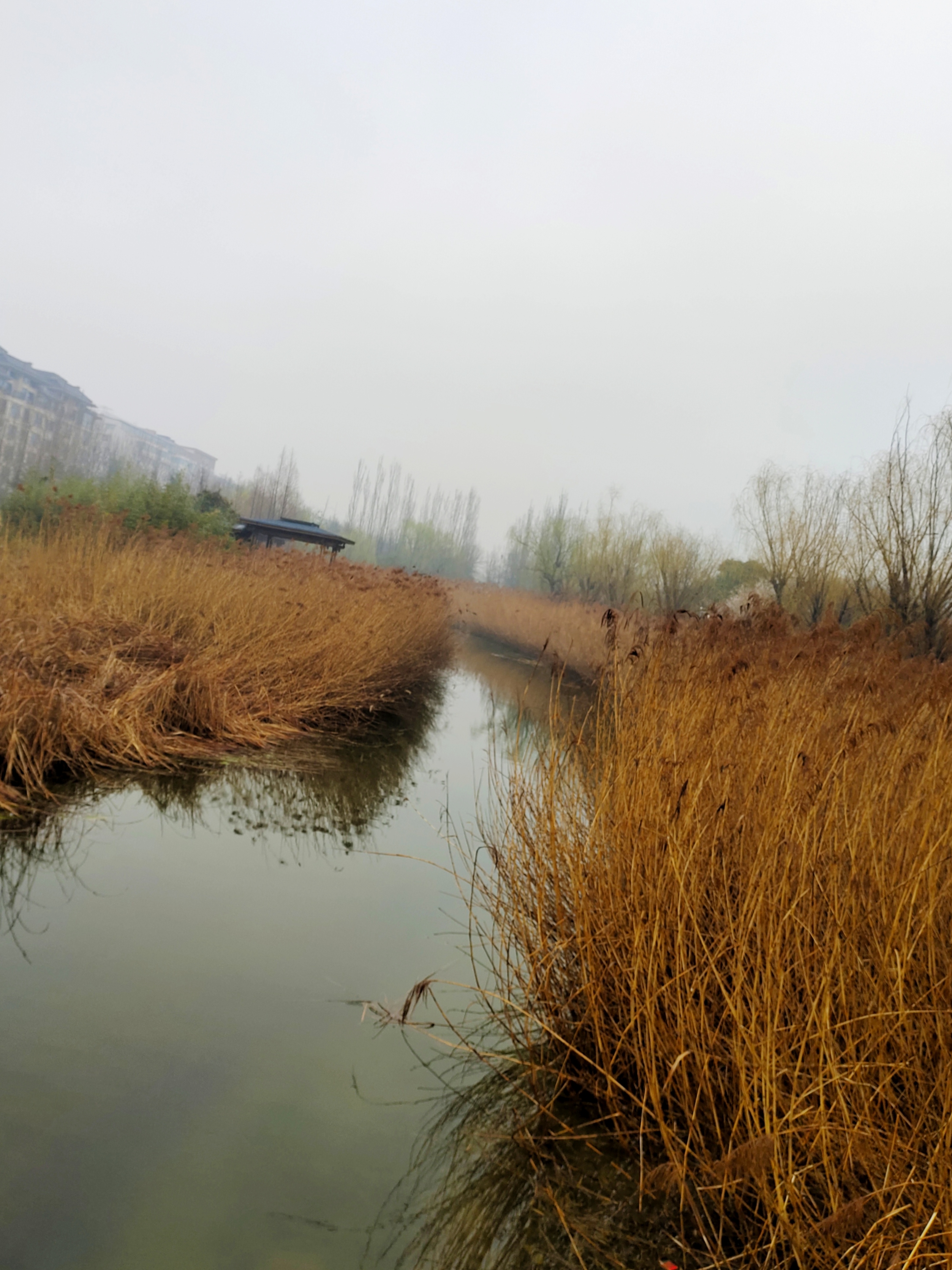 春日湿地静悄悄,芦苇摇曳水如镜,凉亭独坐看云卷云舒~