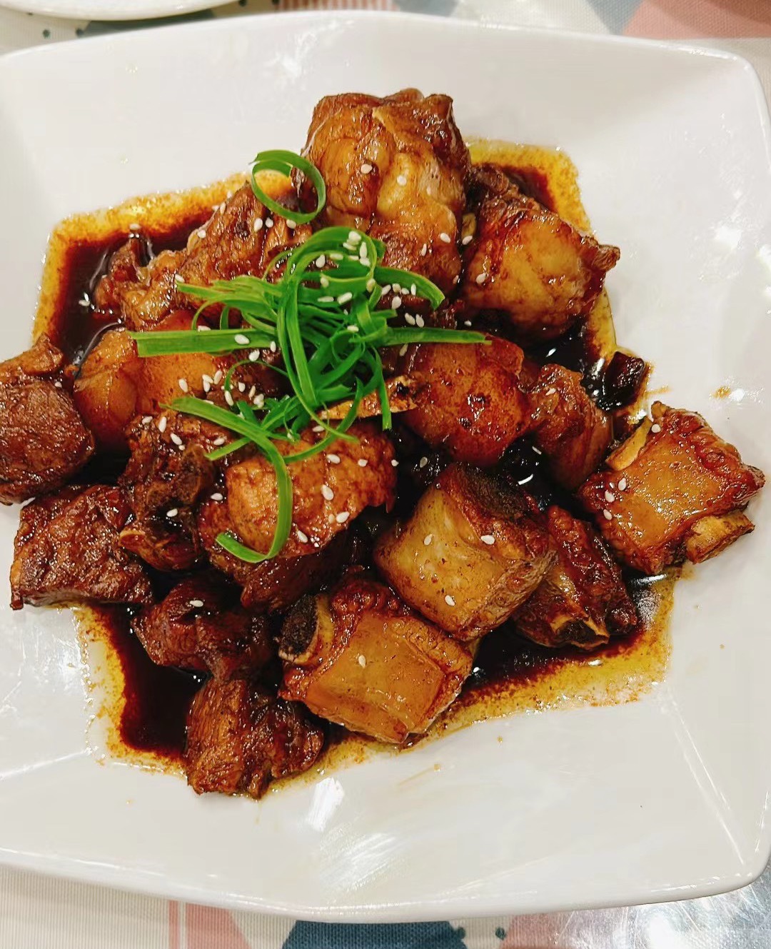 家常菜|红烧排骨做法分享 【食材】排骨2斤;葱姜蒜;冰糖、八角、桂皮、香叶;生抽、老抽、料酒、盐、鸡精 【做法】 1️⃣排骨用水洗一下,冷水下锅焯水,加入葱姜、4勺料酒,焯水后沥干 起锅烧油,加适量冰糖,小火超出糖色(不要炒过头,会发苦) 2️⃣倒入排骨翻炒上色,再加入葱姜蒜、八角、桂皮、香叶炒香 3️⃣再加入2勺生抽、半勺老抽、1勺耗油翻炒均匀 加入清水没过排骨,大火烧开(或者直接加开水),转中小火炖煮30-40分钟,至排骨软烂入味 4️⃣加1小勺盐和1小勺鸡精,大火收汁出锅开吃。