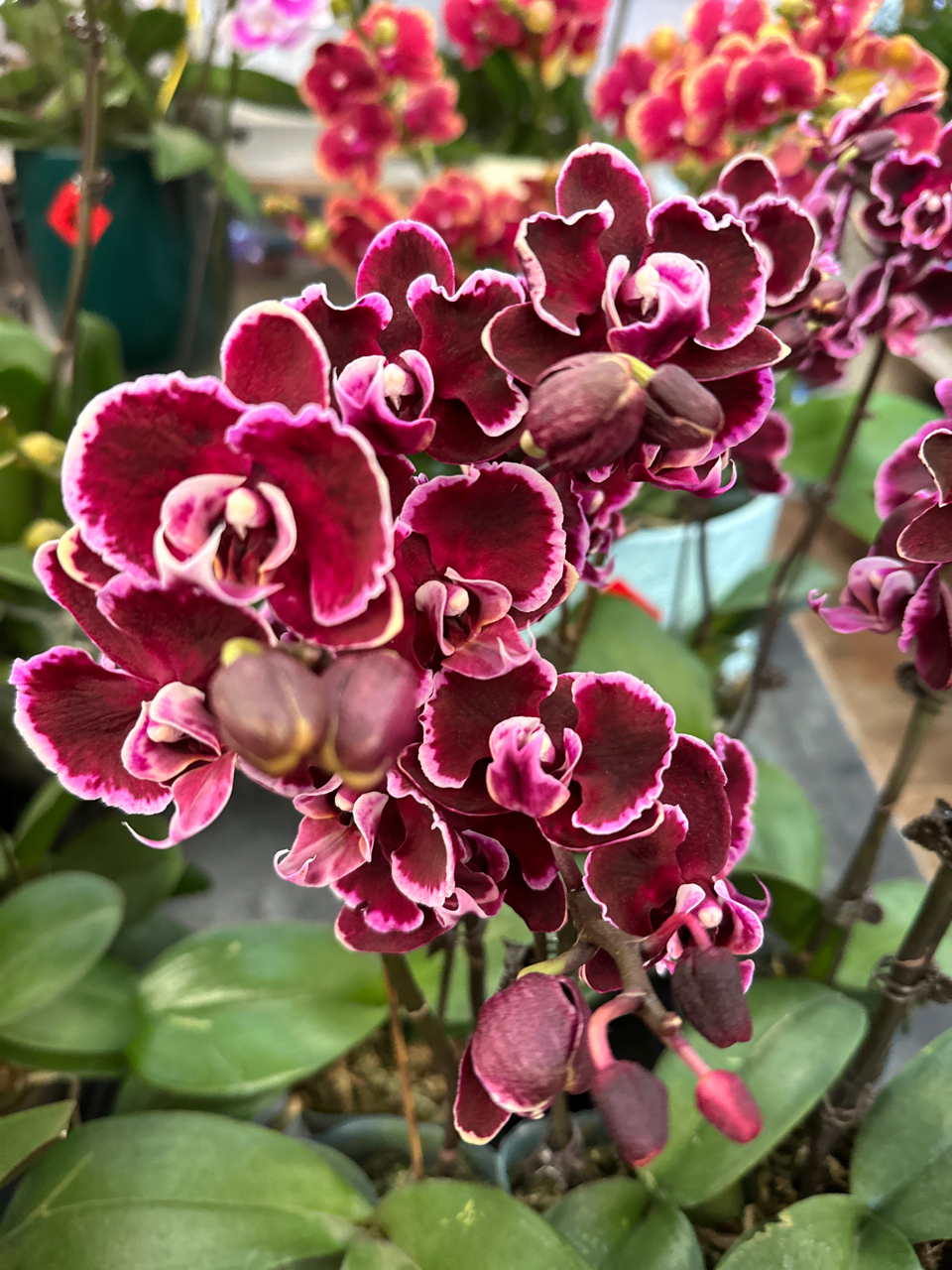 紫红蝴蝶兰,在植物园温室里悄然盛放。粉白花缘轻吻光晕,绿叶如幕衬托娇蕊。一簇簇繁花与青涩花苞共舞,自然光流淌其间,静谧而丰盈。镜头下,是生命最柔韧的绽放。