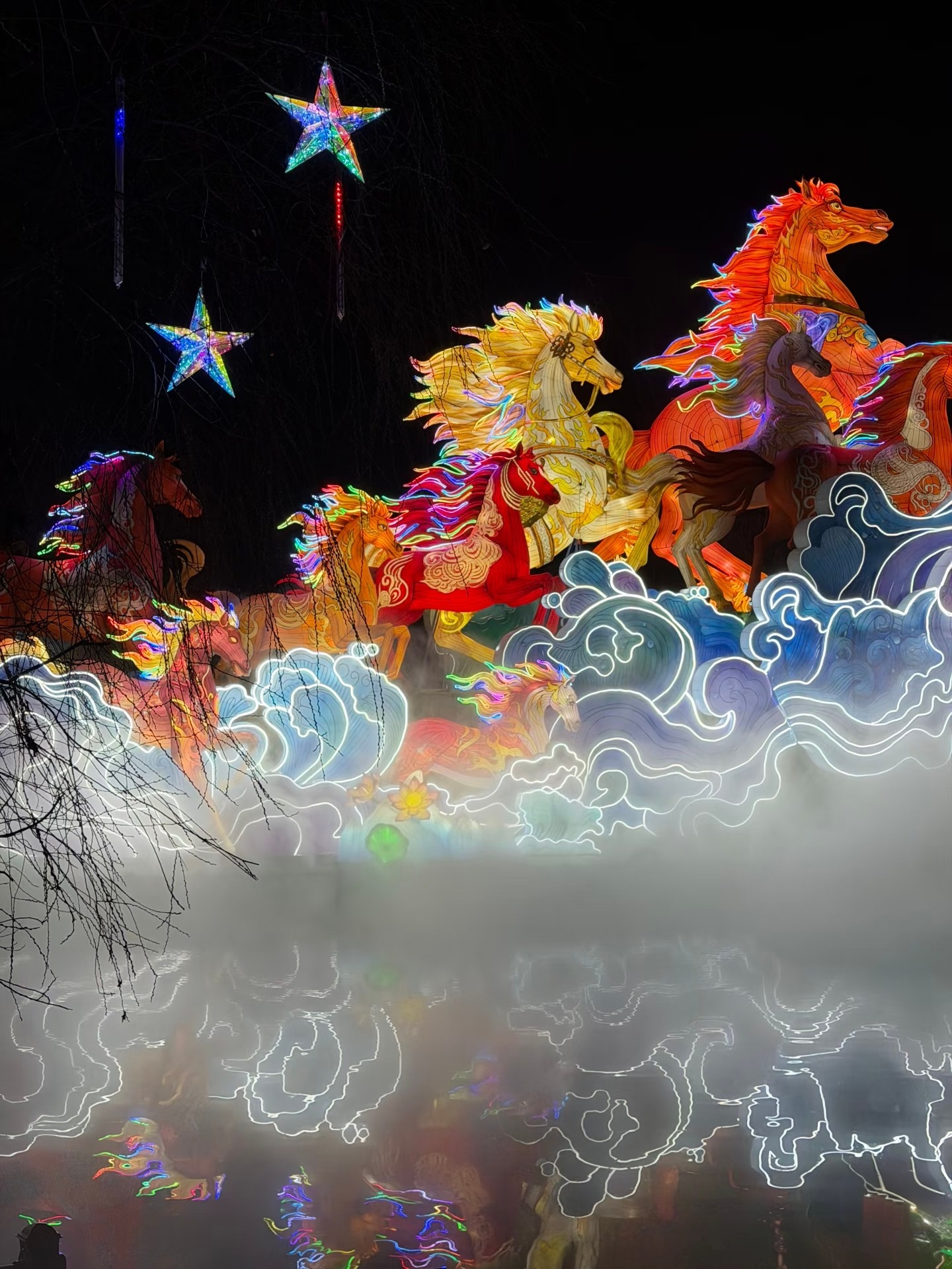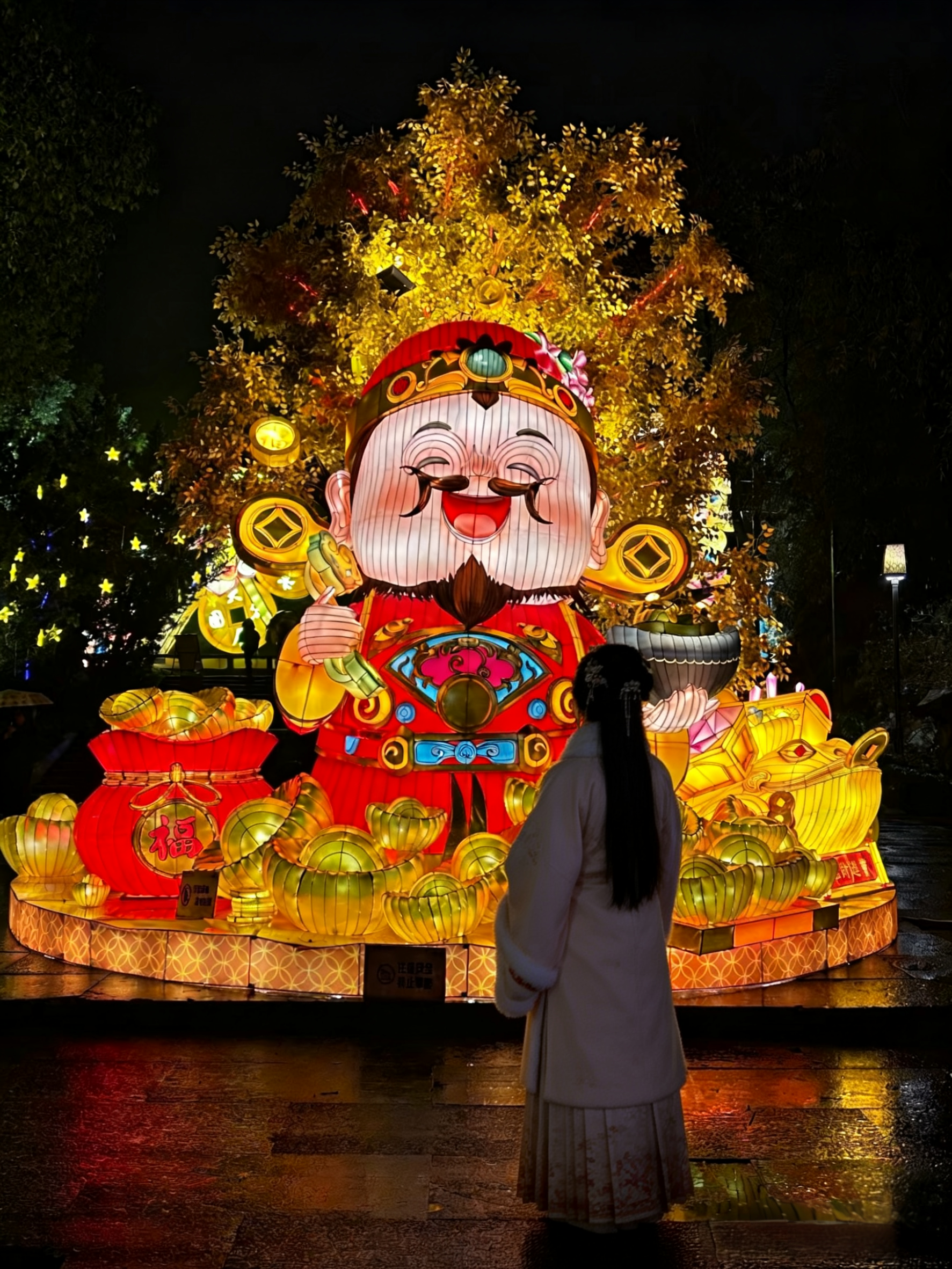 元宵将至,月将圆,赴一场新昌的灯火之约 车子停稳在接驳点的时候,天还没全黑。有人举着小旗子指引,说话带着新昌本地口音,软软的,像刚出锅的汤圆。上了免费接驳车,旁边坐着一家三口,孩子趴在窗户上数路灯,父母商量着待会儿先去哪个灯组打卡。忽然就觉得,这不就是过节的样子么——热热闹闹的,人挤着人,心挨着心。 刷证件免费入园的那一刻,我这个外乡人心里暖了一下。新昌的惠民政策说,在新昌交了社保,就被算作“自己人”了。这种被接纳的感觉,比省下的几十块钱更让人熨帖。 往里走,灯火渐渐亮起来。 最先撞进眼里的是那组“万马奔腾”。水雾从地面升起,灯做的骏马踏着云雾奔腾,气势磅礴得让人想后退两步,又忍不住往前凑。孩子们在底下钻来钻去,年轻的姑娘们举着手机找角度,大爷架着三脚架等风停。我站在那儿看了好久,忽然想起小时候外婆说的话:“正月十五的灯,是点给老天爷看的,求一年风调雨顺。”如今老天爷看不看不知道,但这一盏盏灯,确实把人心照亮了。 白云湖畔,《瑶池飞天》正要开始。 水面上搭了台,舞者衣袂飘飘,真的像从壁画里飞下来的。灯光打在水雾上,氤氲出一片仙境。有人小声说:“这不是敦煌么?”旁边的人接话:“比敦煌还近,就在眼前呢。”我忽然想起辛弃疾那首《青玉案·元夕》:“凤箫声动,玉壶光转,一夜鱼龙舞。”词里写的是南宋的元宵,可此时此刻,新昌的夜空下,那些词句忽然活了过来。千百年来,中国人对光的迷恋、对美的追逐,从未变过。 古戏台那边传来锣鼓声。挤进去一看,是皮影戏。 幕布上,小人儿腾挪跳跃,幕布后,老师傅的手指翻飞如蝶。旁边的小姑娘问妈妈:“这是什么呀?”妈妈说:“这是姥姥小时候看的动画片。”我站在那儿看了两出,忽然觉得眼眶有点热。这些老手艺,能传到今天,靠的就是这一代代人,在每一个元宵节,把它摆在灯火最亮的地方。 国风巡游的队伍过来了。有游客被拉去对诗,赢了得一张书签。我也凑热闹写了个福字,歪歪扭扭的。来自吉林的杨硕大哥举着刚赢的书签说:“边逛边玩,年味一下就活了!”他留在新昌过年,本以为会冷清,没想到在这灯火里找到了家的感觉。 走着走着,忽然懂了元宵节的意义。 它是全民同乐的狂欢:不论你是本地人还是外来务工的,不论你是老人还是孩子,这一夜,灯火为人人点亮,人人都在灯火里。 它更是传统文化的活态传承:那些花灯扎制的手艺,那些皮影戏的唱腔,那些汉服巡游的礼仪,都在这一夜,被看见、被记住、被传递。 夜深了,该回去了。 回头望,大佛寺的灯火依然亮着,像一座不夜城。活动要持续到3月20日,还有国风巡游、街头剧场、木偶秀等着来玩的人。我在心里默默许了个愿——愿这灯火,能照亮每一个赶路的人;愿每一个来新昌的人,都能在灯火里,找到属于自己的那份温暖。 借元宵提前祝大家节日快乐。愿这一年,日子如灯火般明亮,生活如汤圆般甜糯。若有缘,不妨来新昌走走,赴一场千年的灯火之约。#20同城#新昌大佛寺元宵灯会