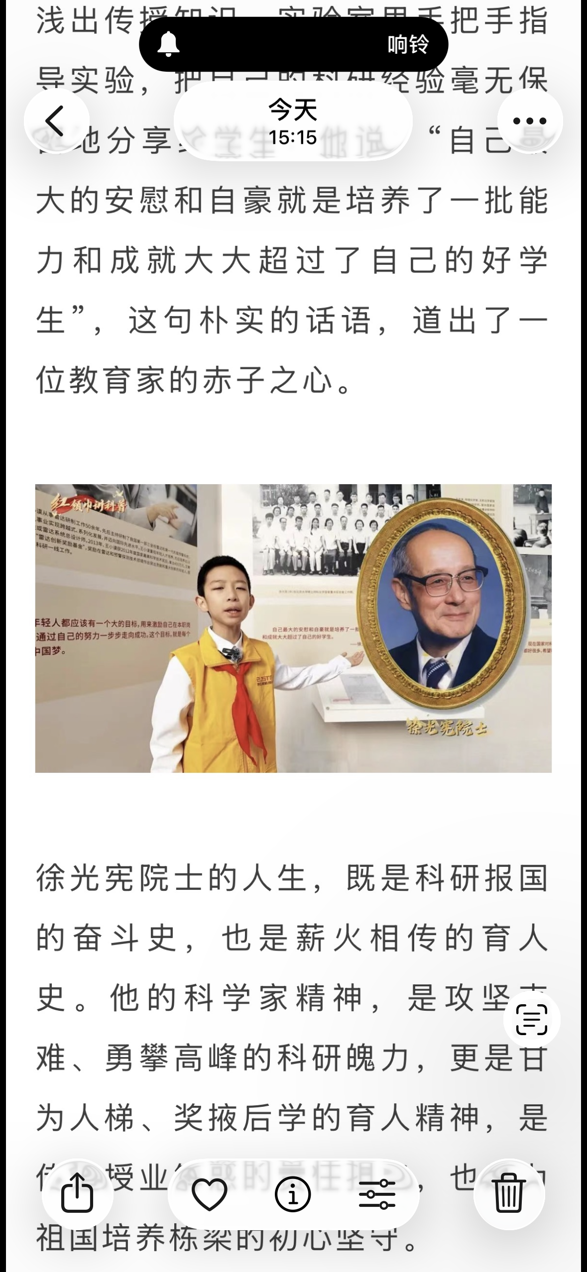 少年有声,科普有光!浙江省科技馆与杭州市红领巾志愿服务队共同打造“红领巾讲科普”系列栏目。 我作为红领巾志愿者的一员,化身小小讲解员,带大家走近徐光宪院士。