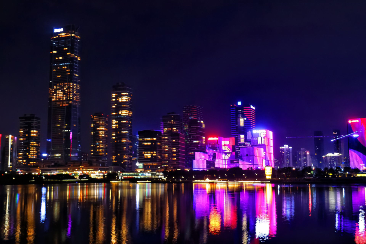 #年味淡了吗?# 夜色渐浓,人才公园的湖面如镜,倒映着深圳湾畔的璀璨星河。春笋拔地而起,华润大厦静默矗立,平安金融中心在远处勾勒天际线。灯光秀悄然启幕,水波轻摇,楼宇轮廓在蓝白冷光里浮沉——这不是繁华的堆砌,是城市呼吸的韵律,是滨海之夜写给现代文明的一封长信。
