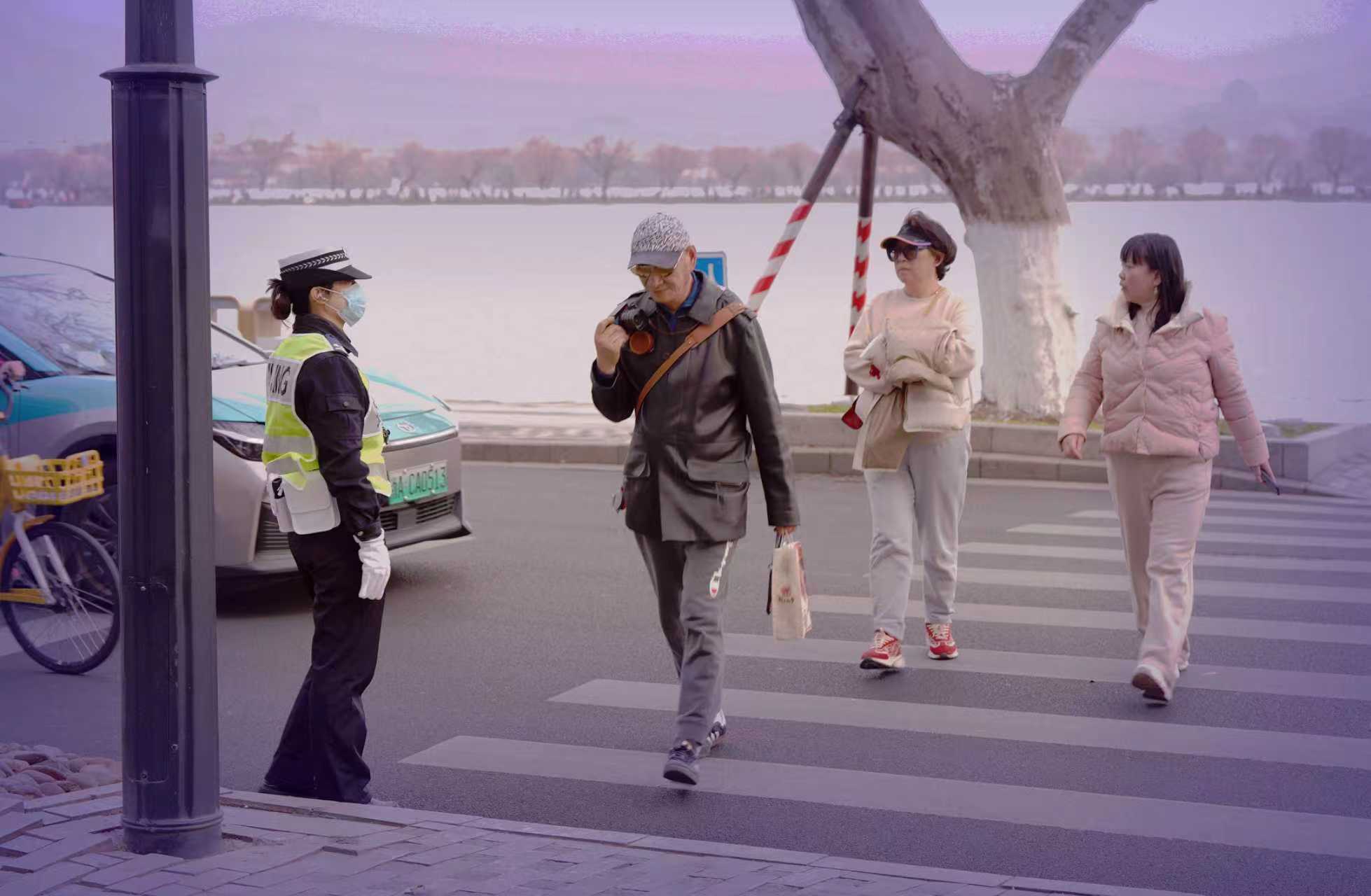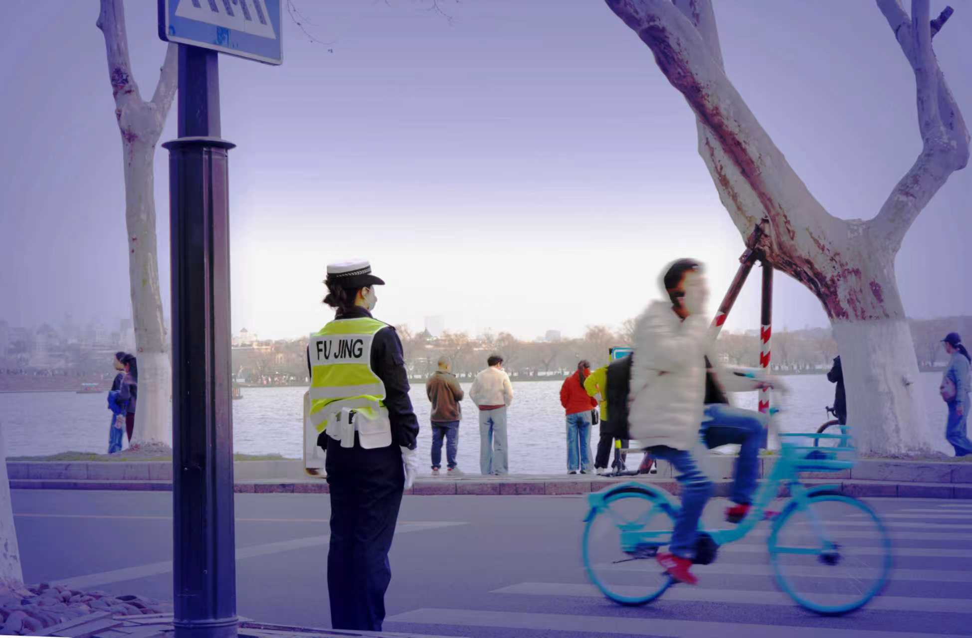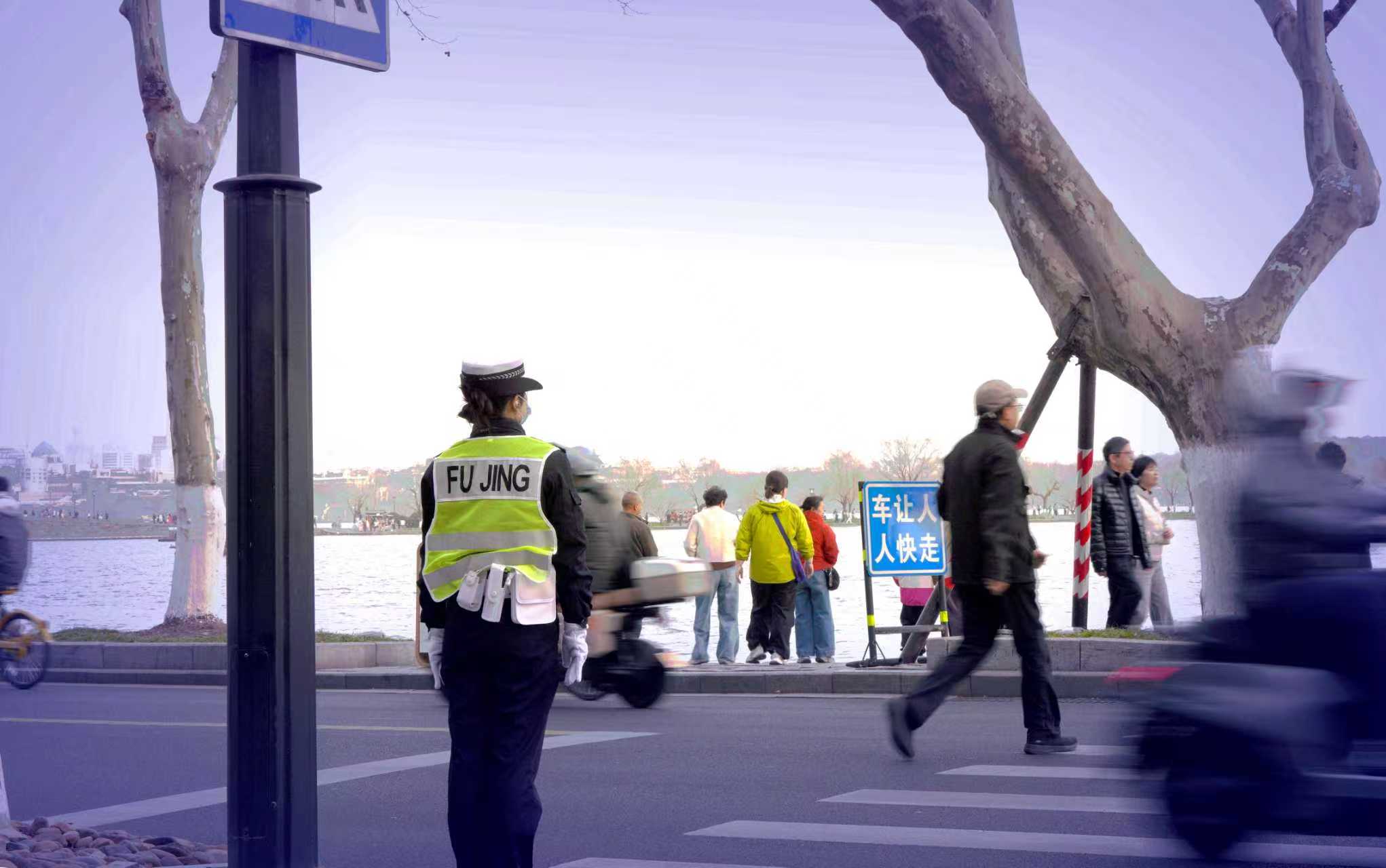 杭州交警专题之七:近年在北山街西湖断桥口的交道路上~每逢双休或节假日清晨,常见新增交警出勤场景。 前曾拍摄记录过在新年假期中,西湖景区杨公堤北山街路口好几位女交警(了解有杭州交警支队车辆管理所等)参于执勤服务,形成一道靓丽风景线。 今年马年春节在西湖断桥北山街,又见杭州车辆管理所女交警假日出勤让道路畅通无阻。 杭州是热门旅游城市,也常见游客问路于交警,交警在节假日出发挥良好作用,让景区交通畅通有保障。(2026.2.23拍摄)