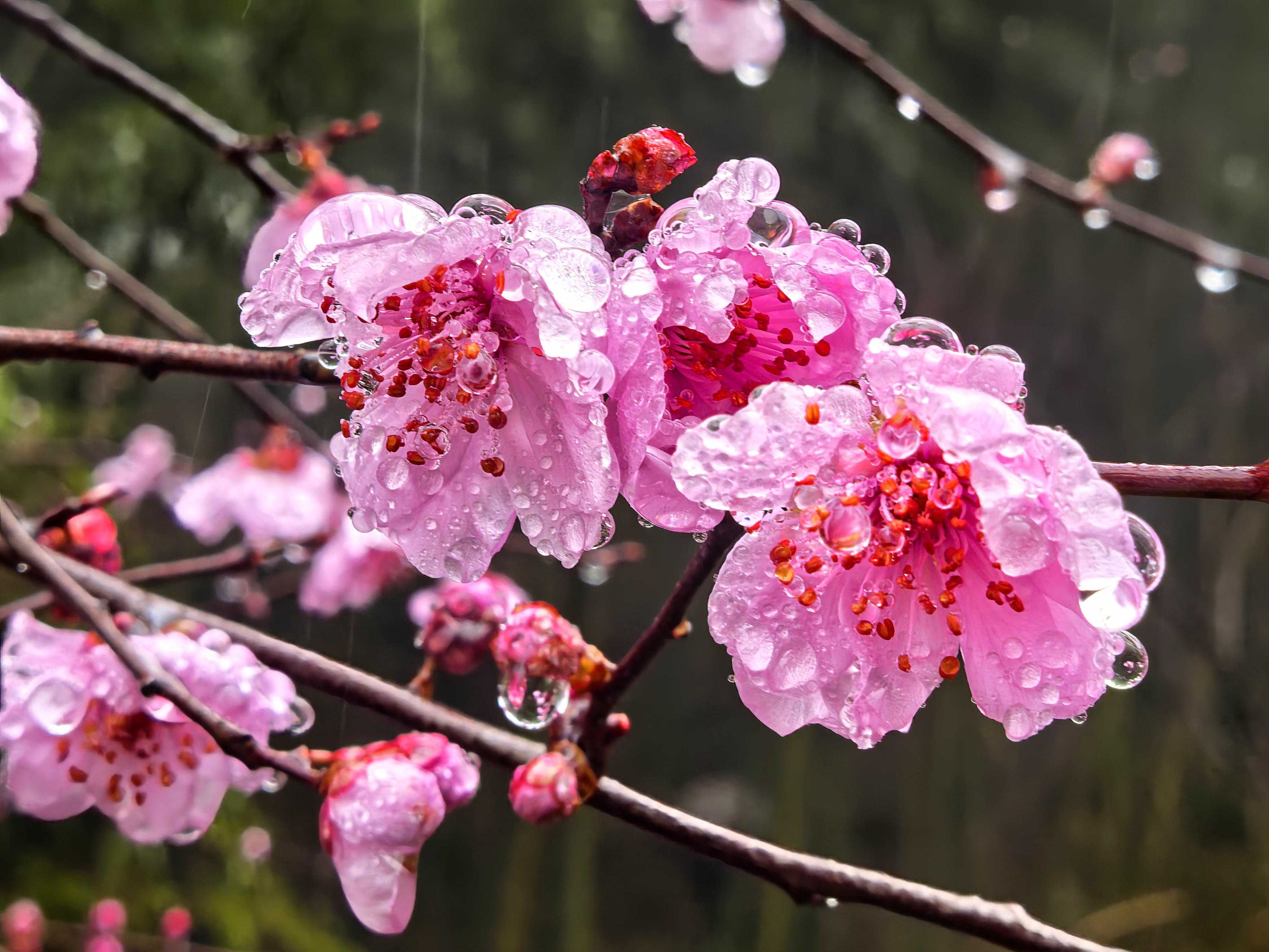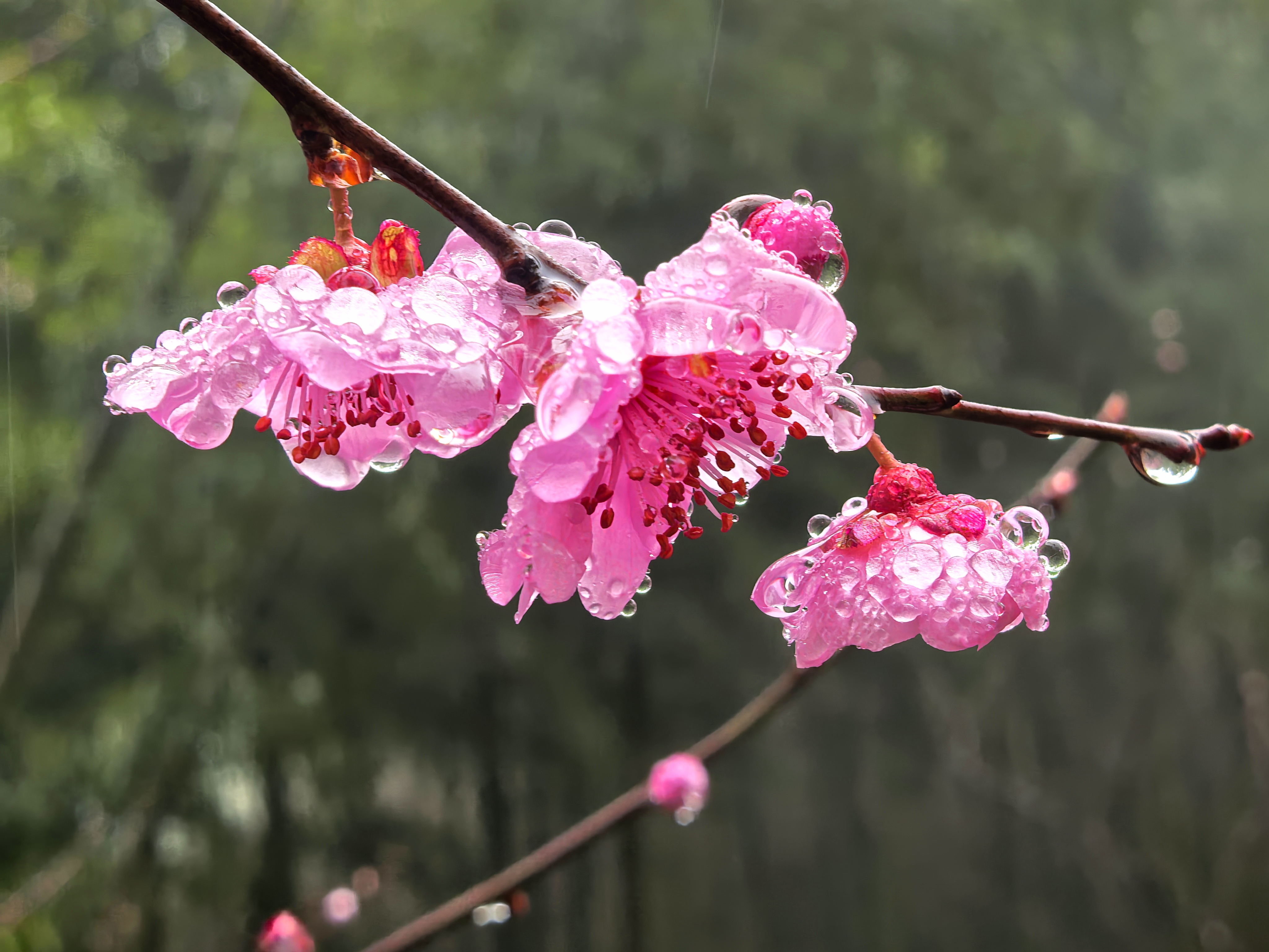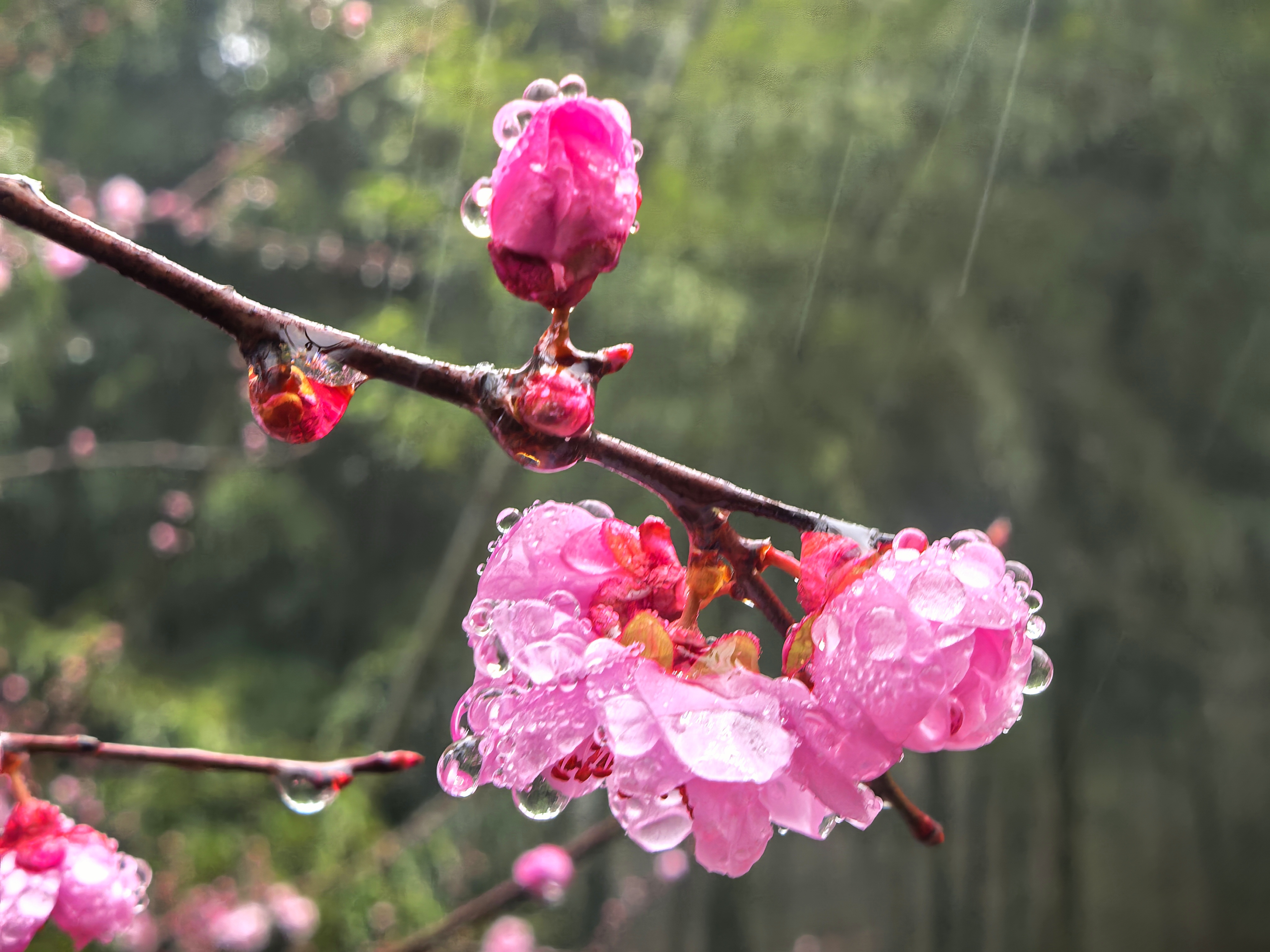 红蕊沾雨娇,山风携香绕,赴一场七里梅园的春日之约。