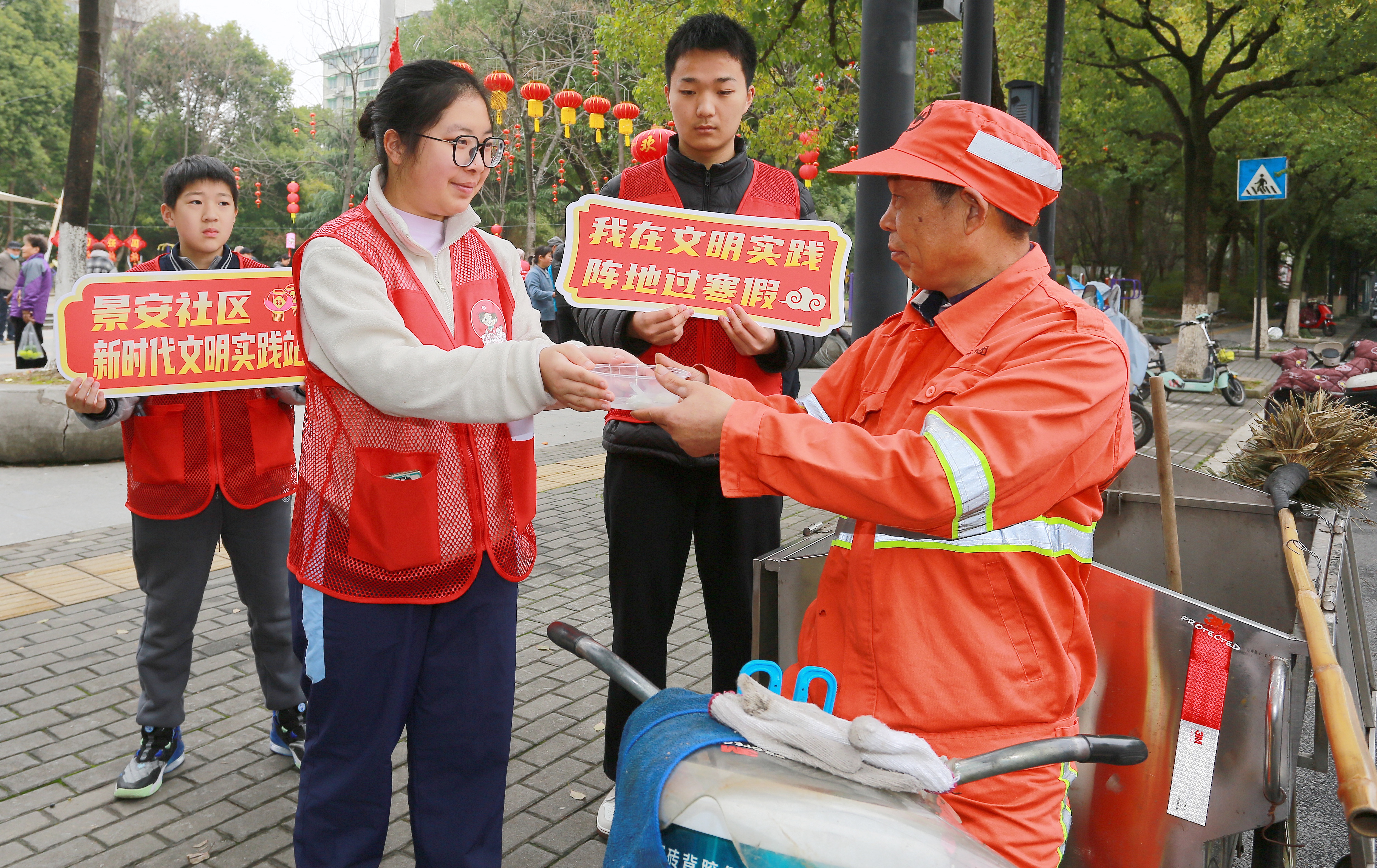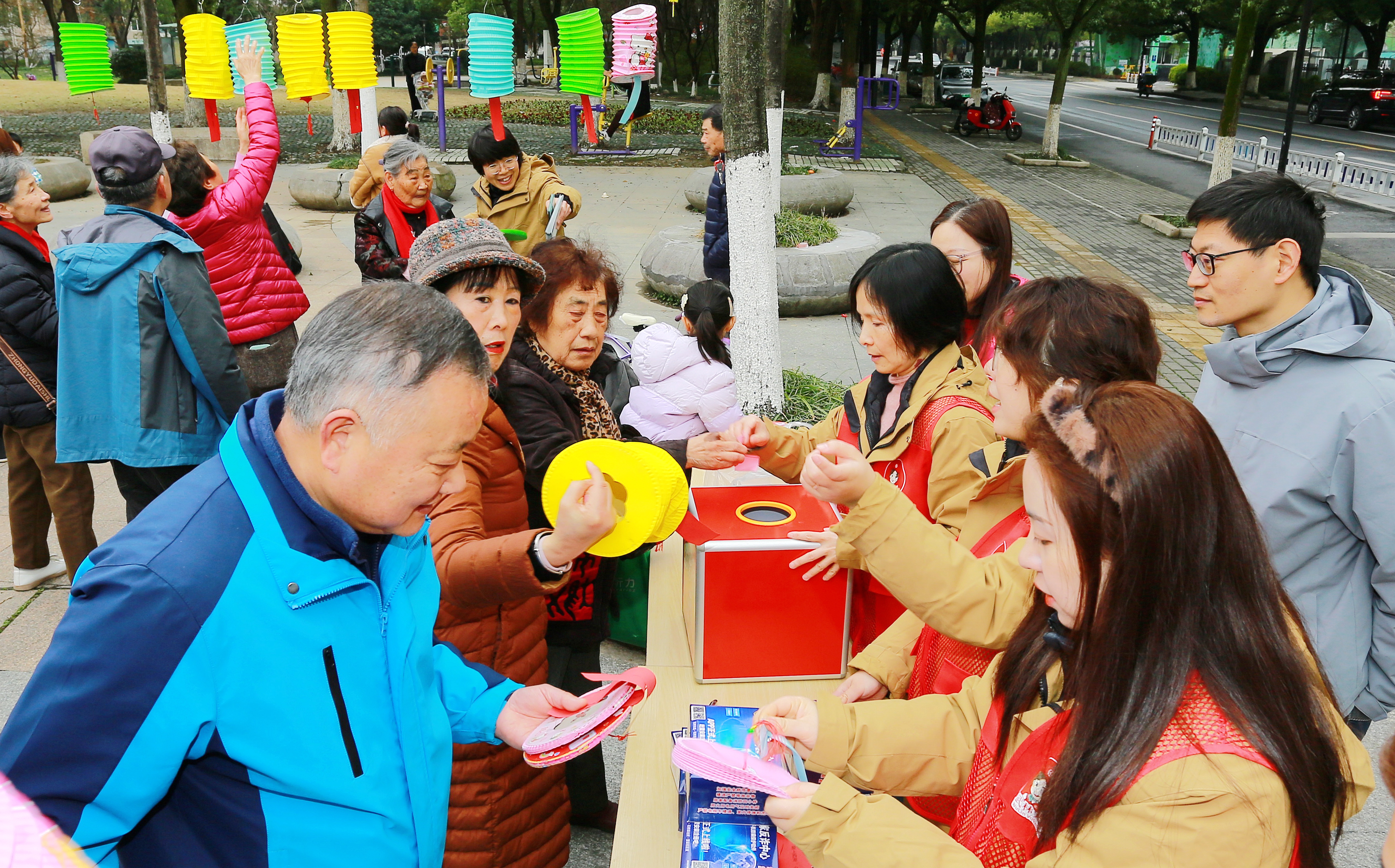 七彩灯谜闹元宵 景安社区乐融融 杭州市拱墅区石桥街道景安社区在莲趣花广场开展“庆元宵·猜灯谜”主题活动,喜迎元宵佳节。现场张灯结彩,红灯笼挂满谜面,清廉、法治、趣味生活三类谜题兼具知识性与趣味性。居民踊跃猜谜,猜中即可领取汤圆、抽纸等礼品,欢声笑语不断。志愿者设发放点,为居民、环卫工人和快递小哥送上热乎汤圆。此次活动以民俗为载体,融入清廉与法治宣传,丰富居民文化生活,拉近邻里距离,营造出欢乐祥和的社区氛围。