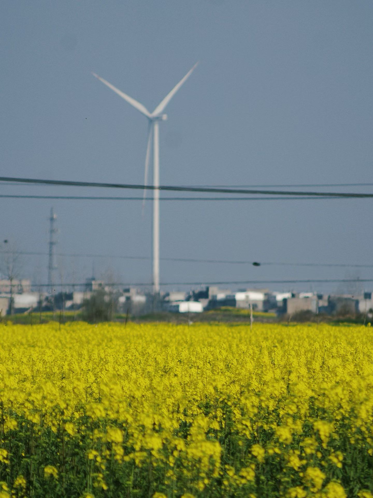 油菜花田里蜜蜂忙,风车悠悠转,农舍静静立,春日田园,随手一拍都是壁纸~